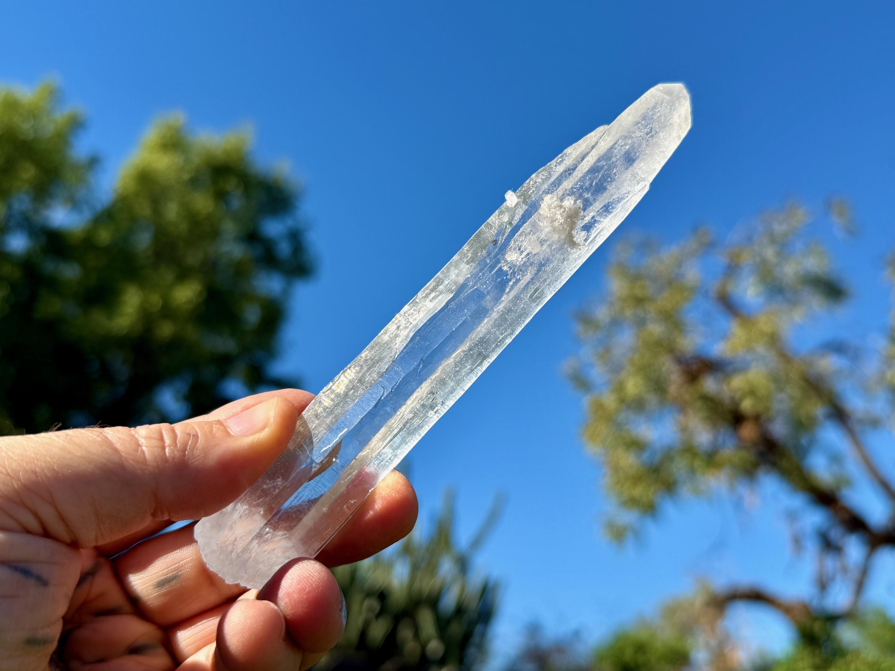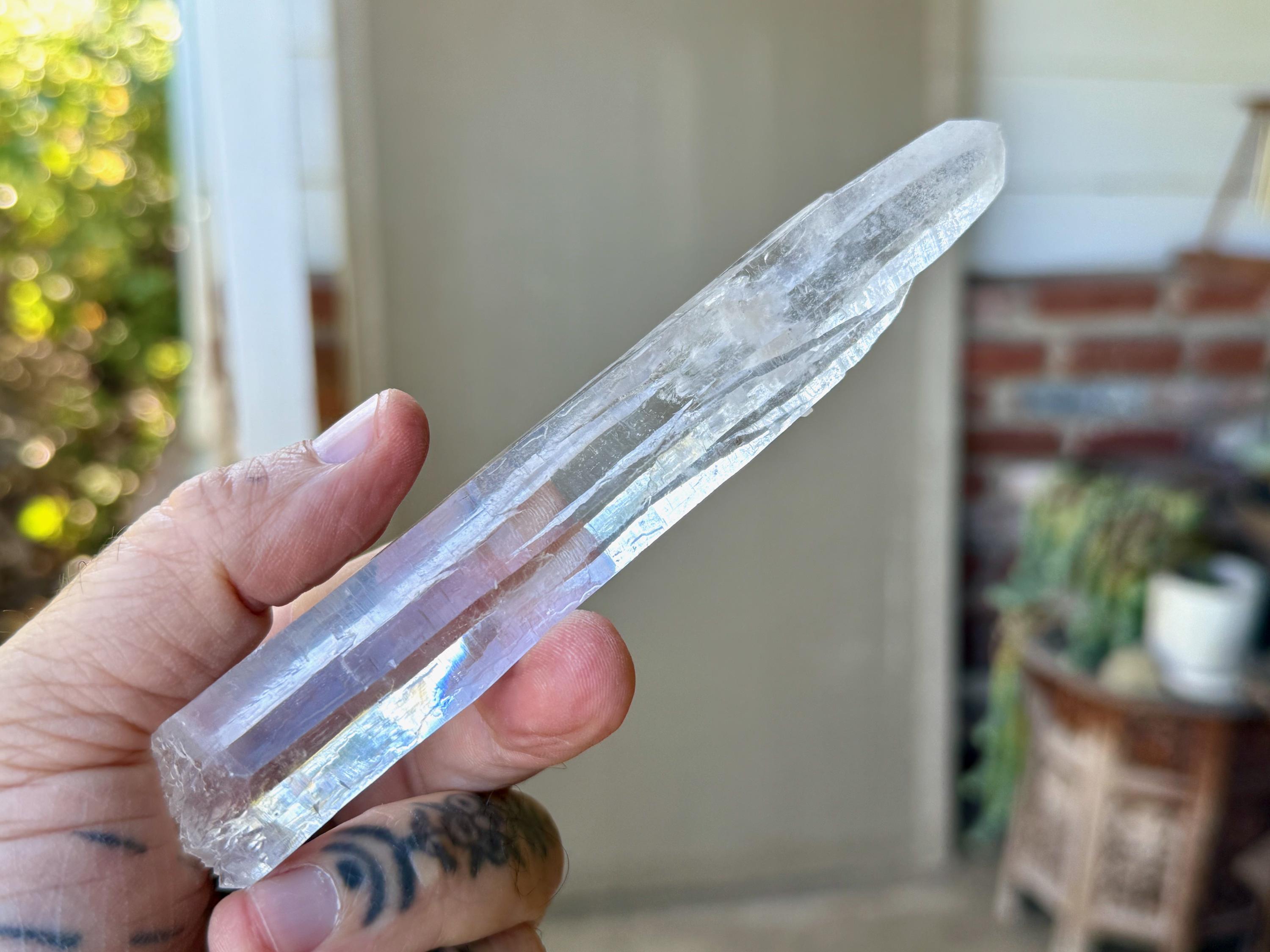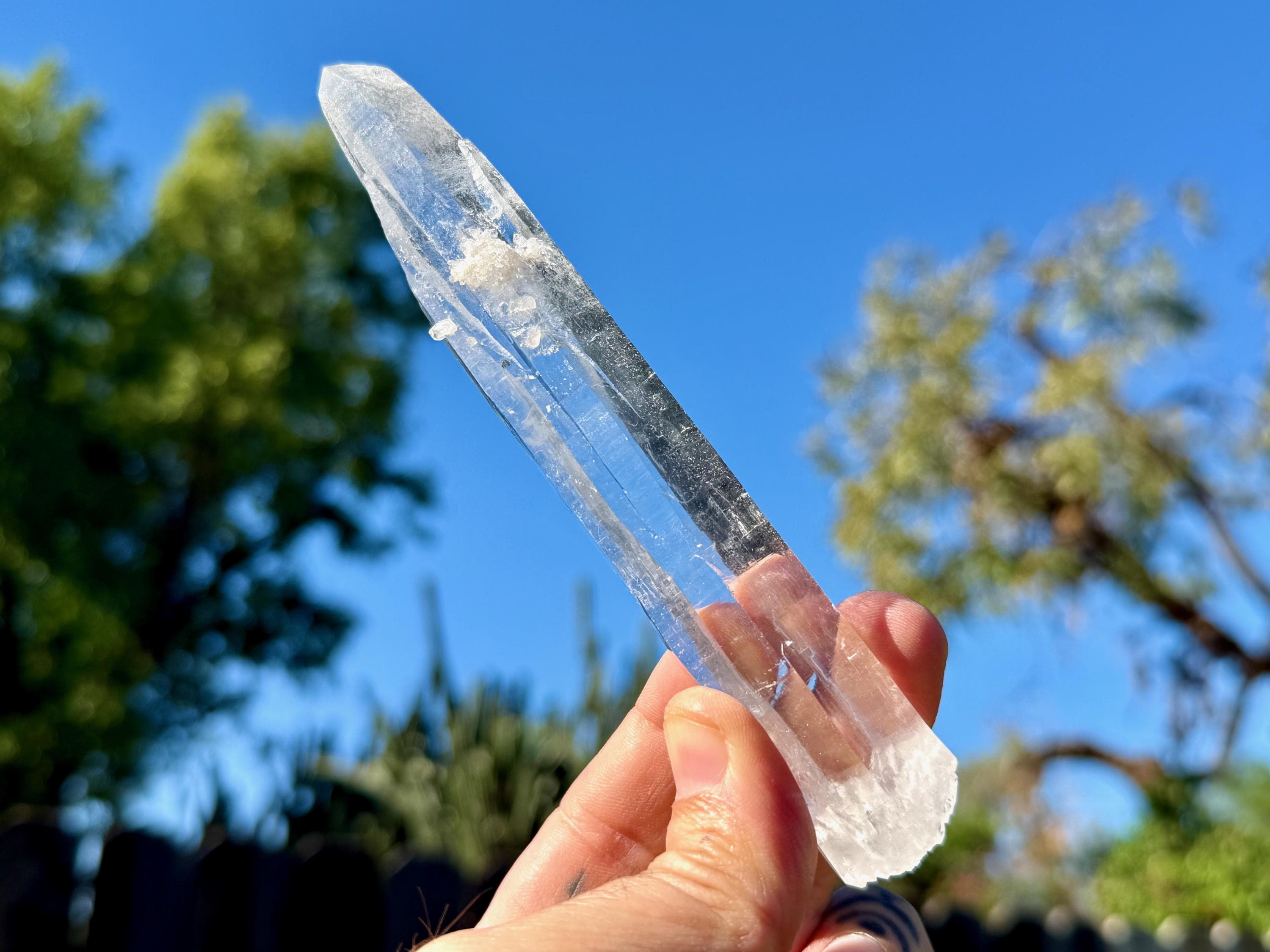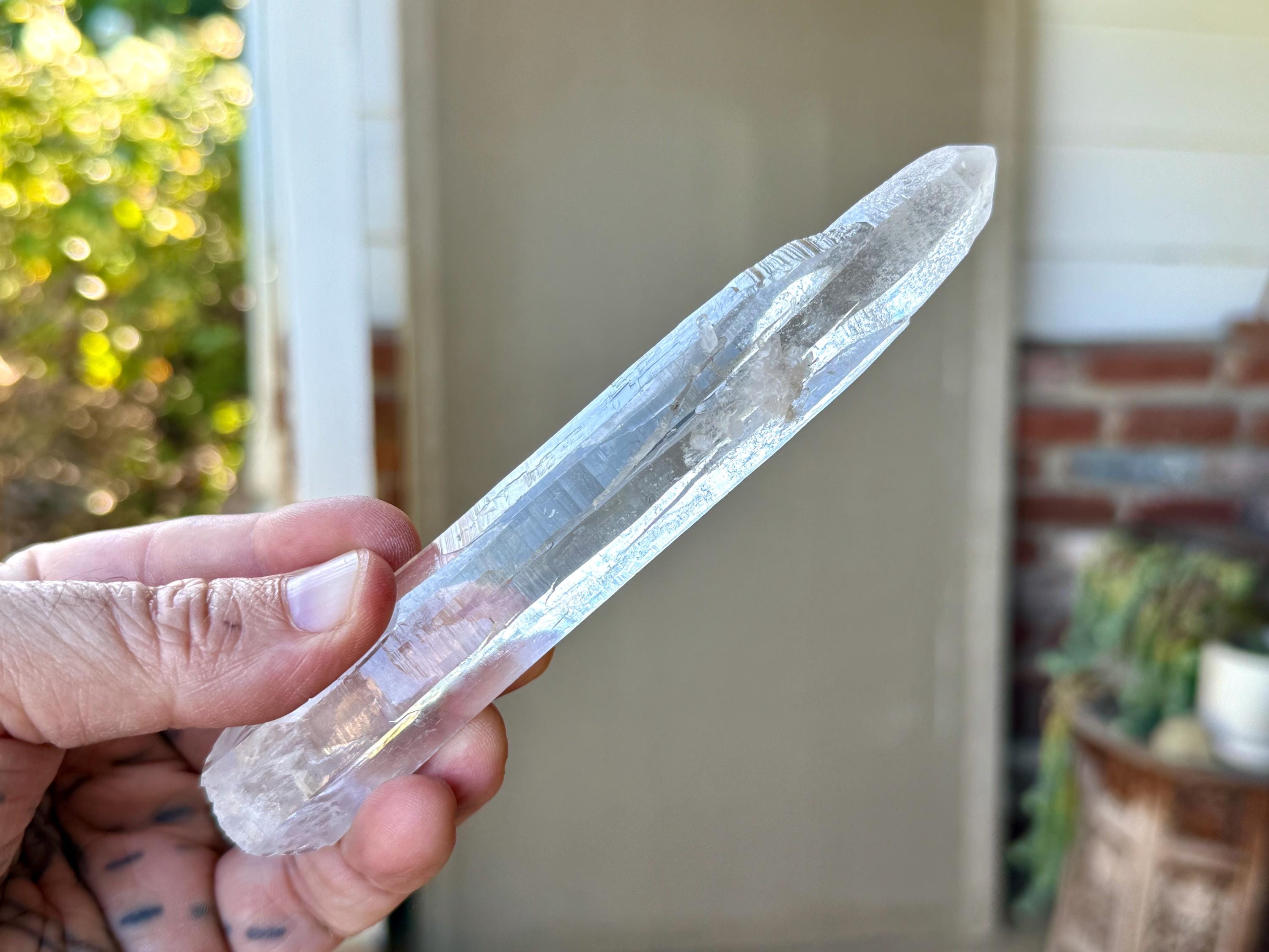 Laser Quartz is a term referring to a type of Quartz formation that is often elongated and tapered toward the top. These crystals are considered to be useful allies in energetic healing, specifically for concentrating energy at a particular point. This can be useful in personal healing work to alleviate chronic pain, etc. Laser Quartz are also useful tools in clearing physical areas of heavy energies.