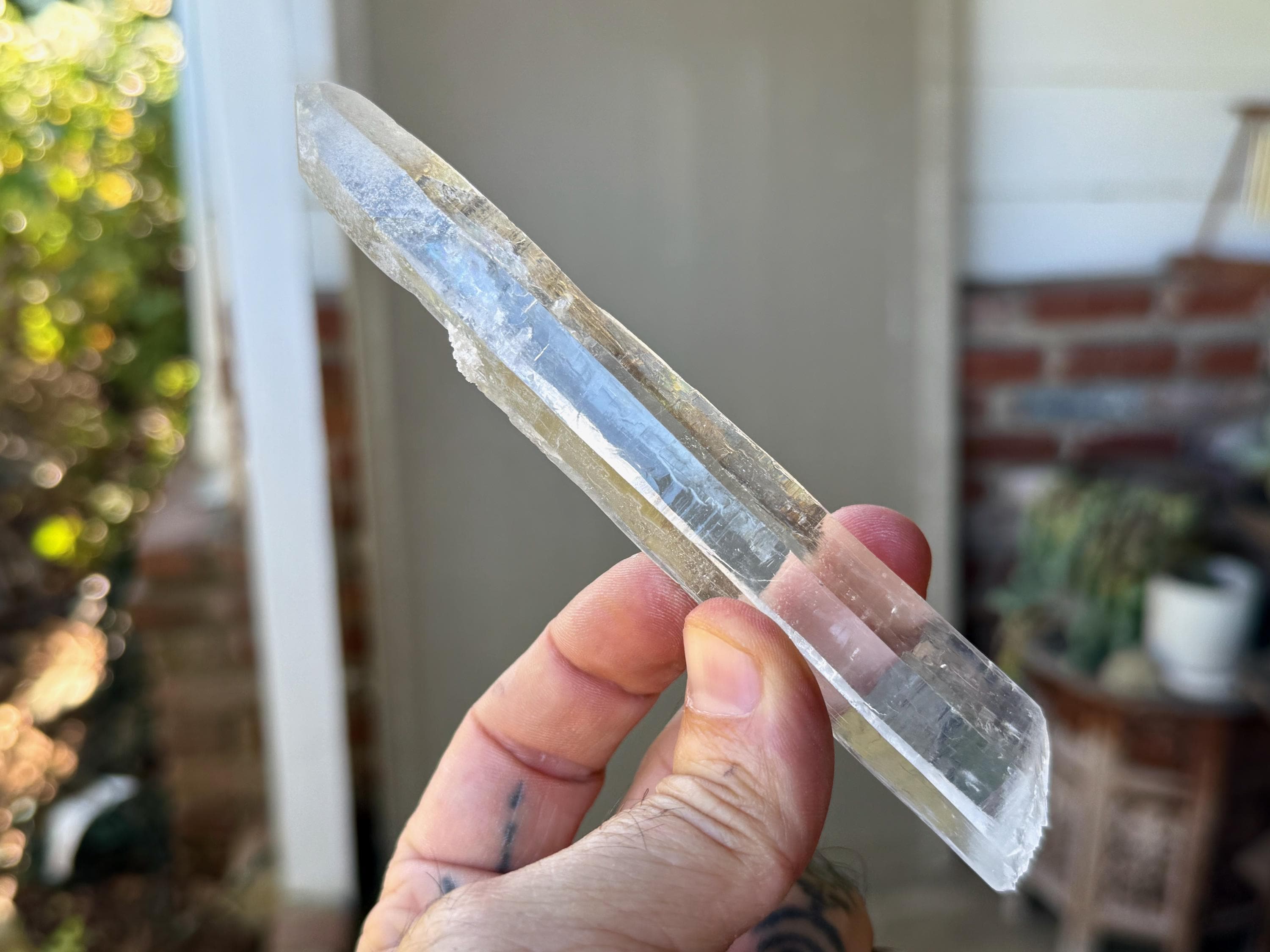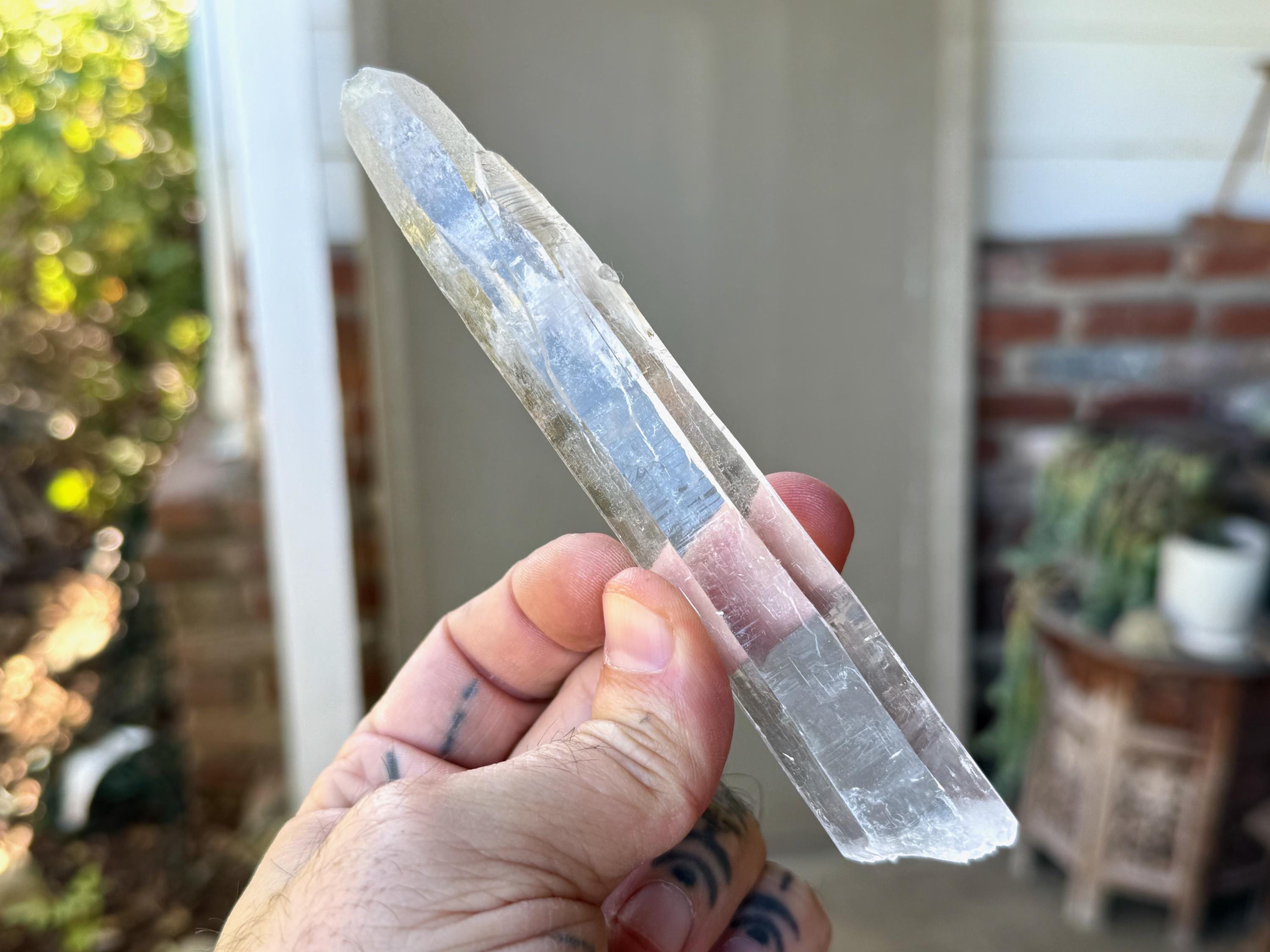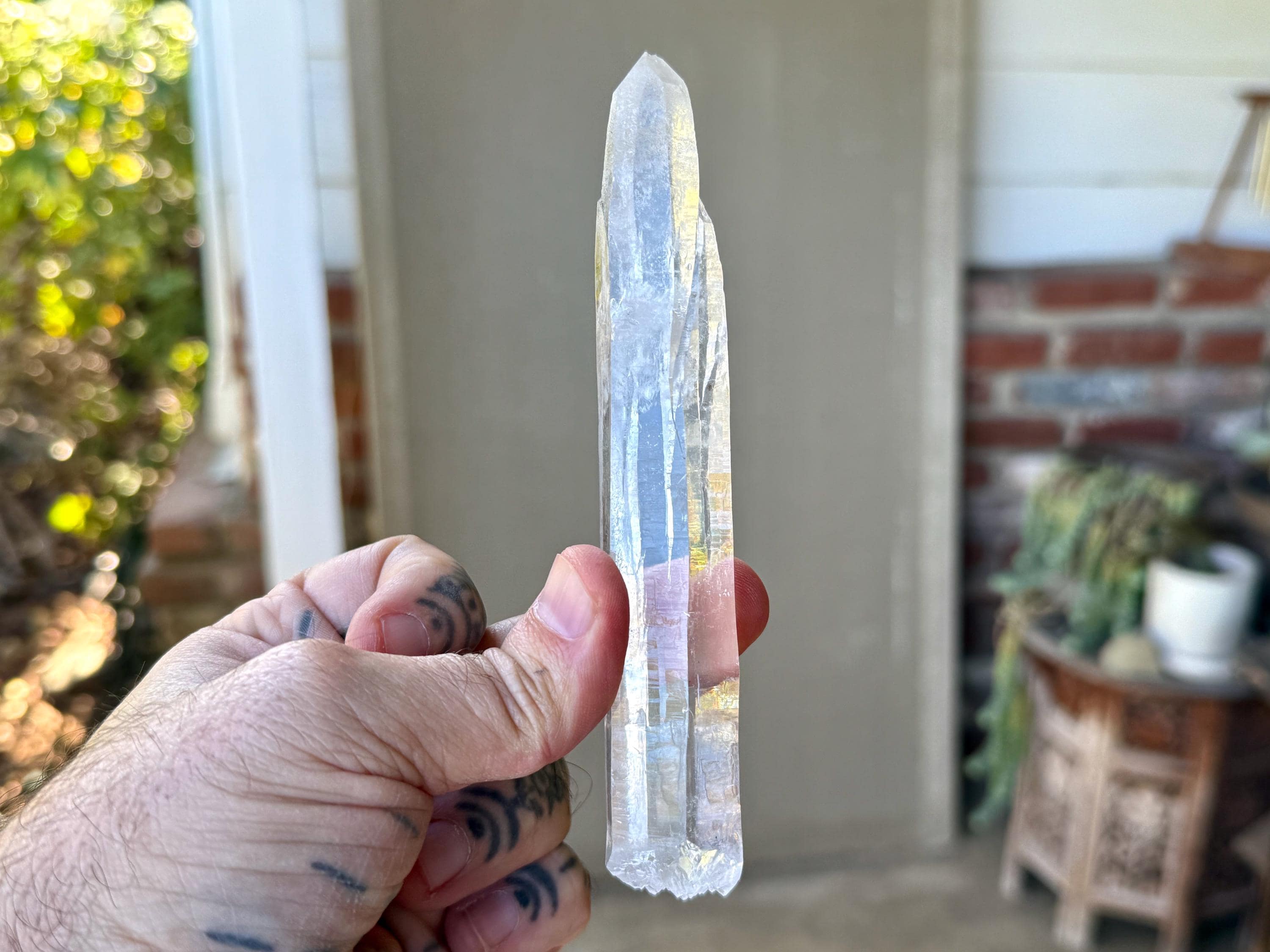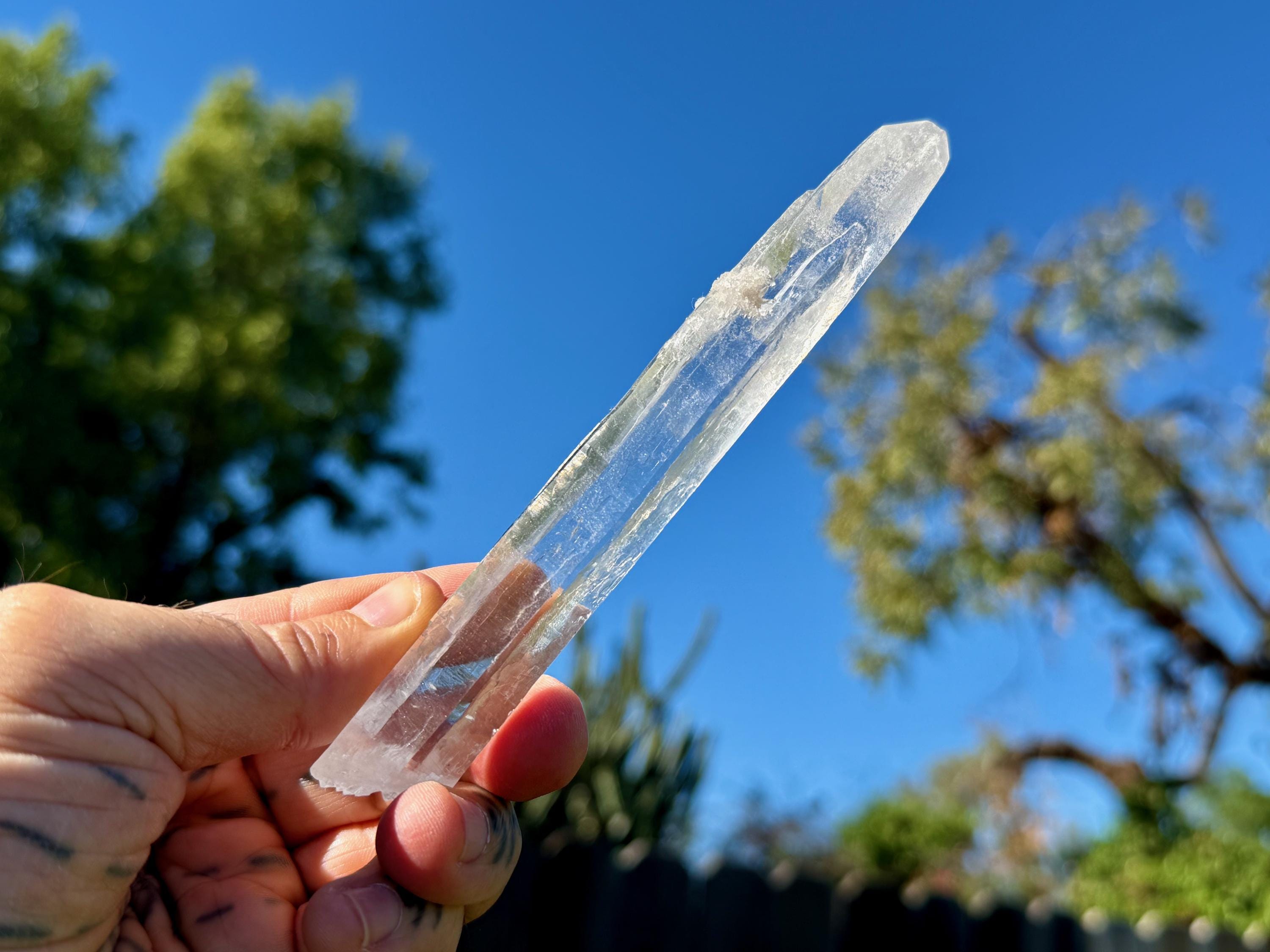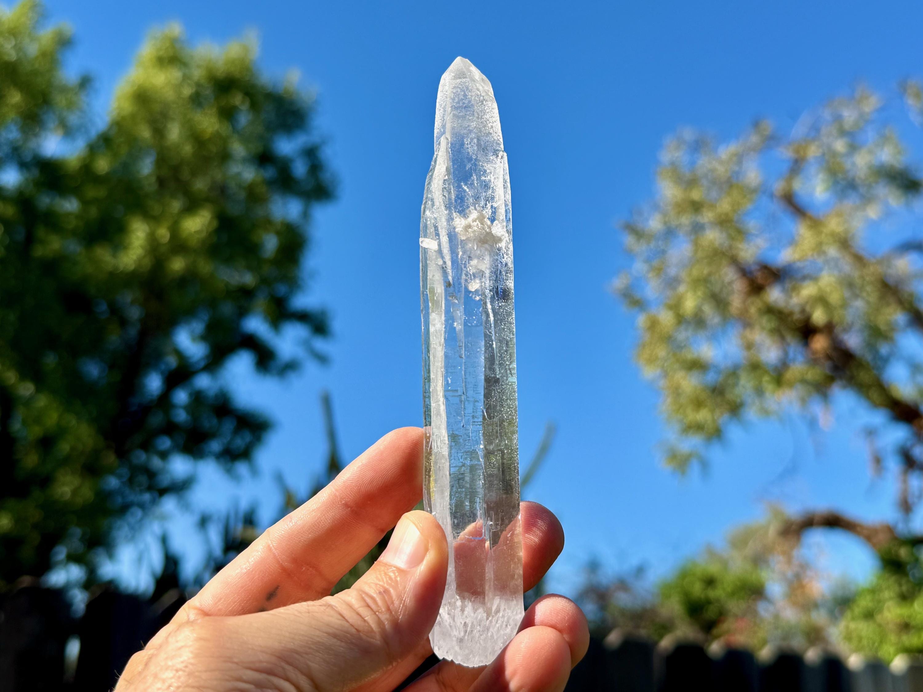 Laser Quartz is a term referring to a type of Quartz formation that is often elongated and tapered toward the top. These crystals are considered to be useful allies in energetic healing, specifically for concentrating energy at a particular point. This can be useful in personal healing work to alleviate chronic pain, etc. Laser Quartz are also useful tools in clearing physical areas of heavy energies.