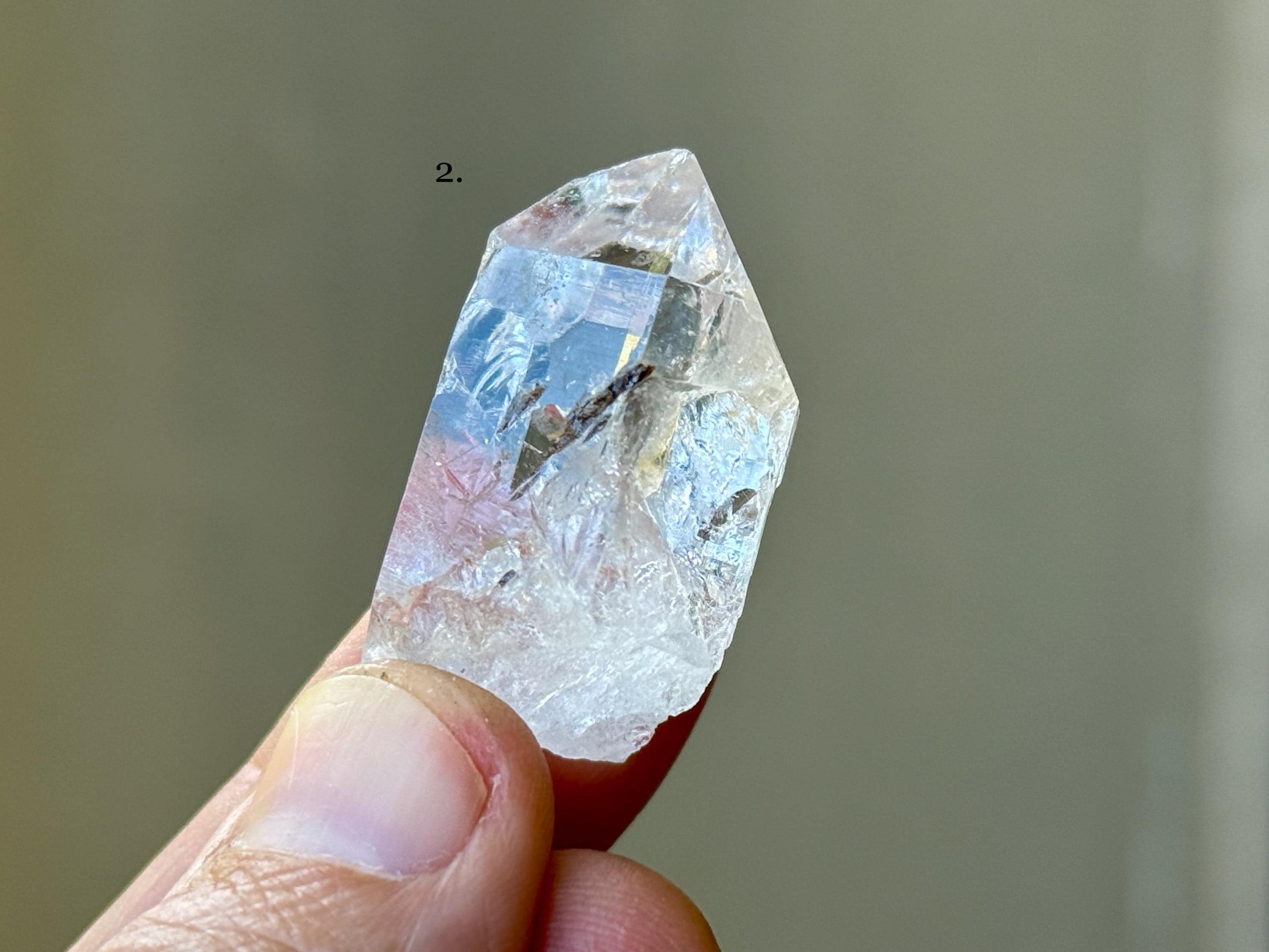 Each crystal is between 1.25" - 2" (3 cm - 5 cm) tall and weighs between 12g - 22g.