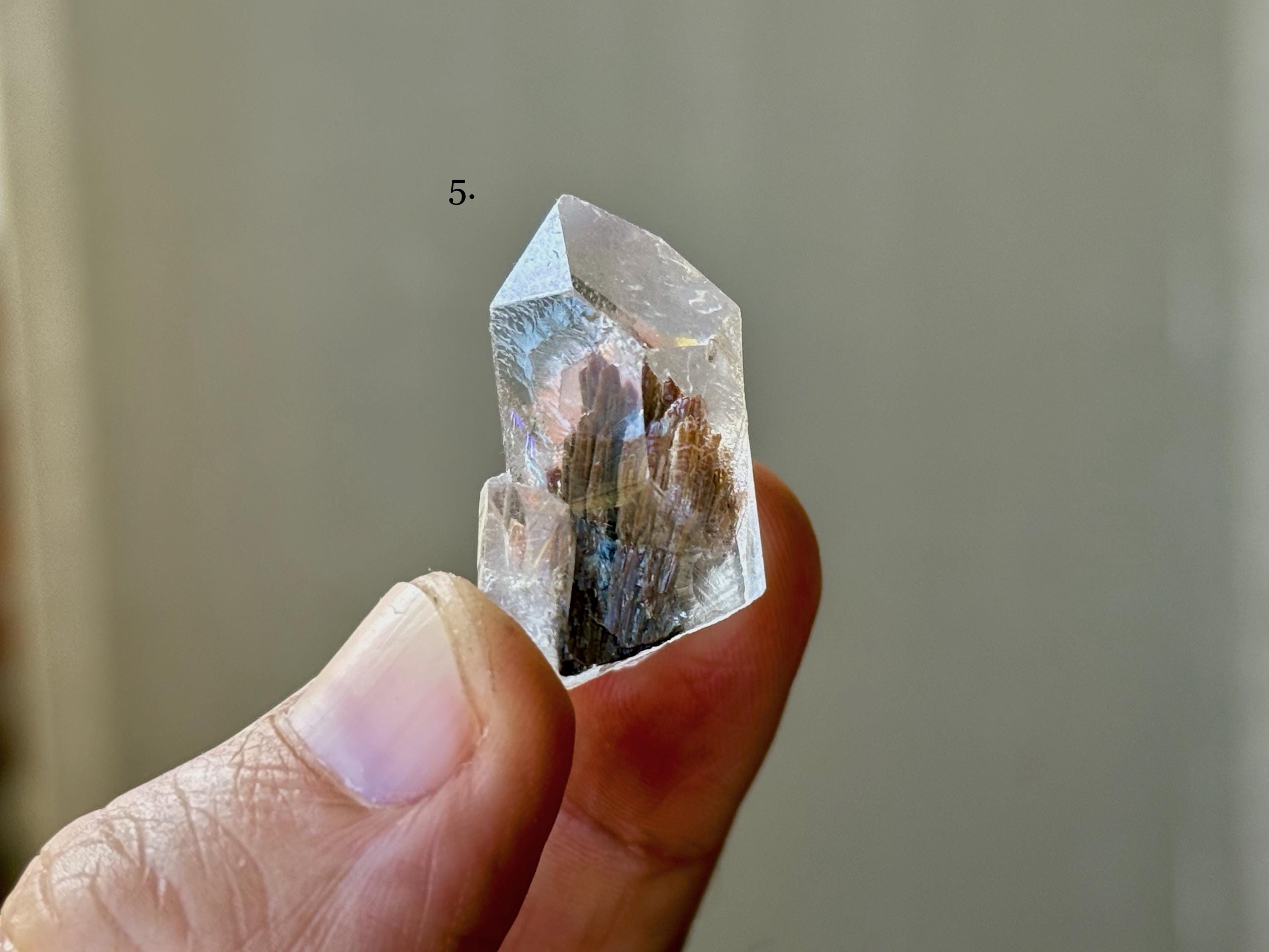 Brookite is a titanium derivative mineral that is quite unusual to find included in Quartz. It is considered to be one of the most highly vibrational minerals and a powerful facilitator of expanding spiritual awareness and helping one on their journey of spiritual awakening.