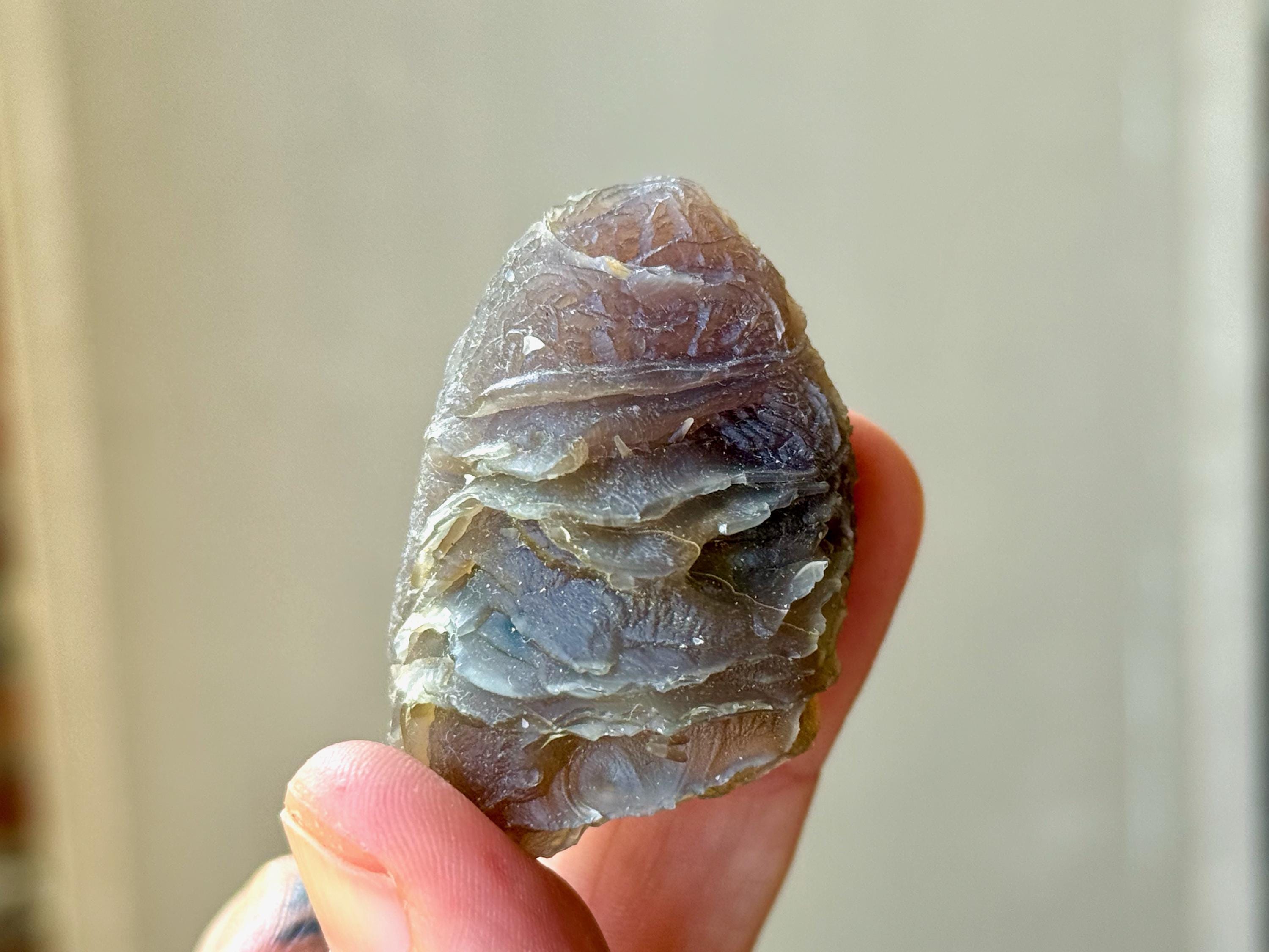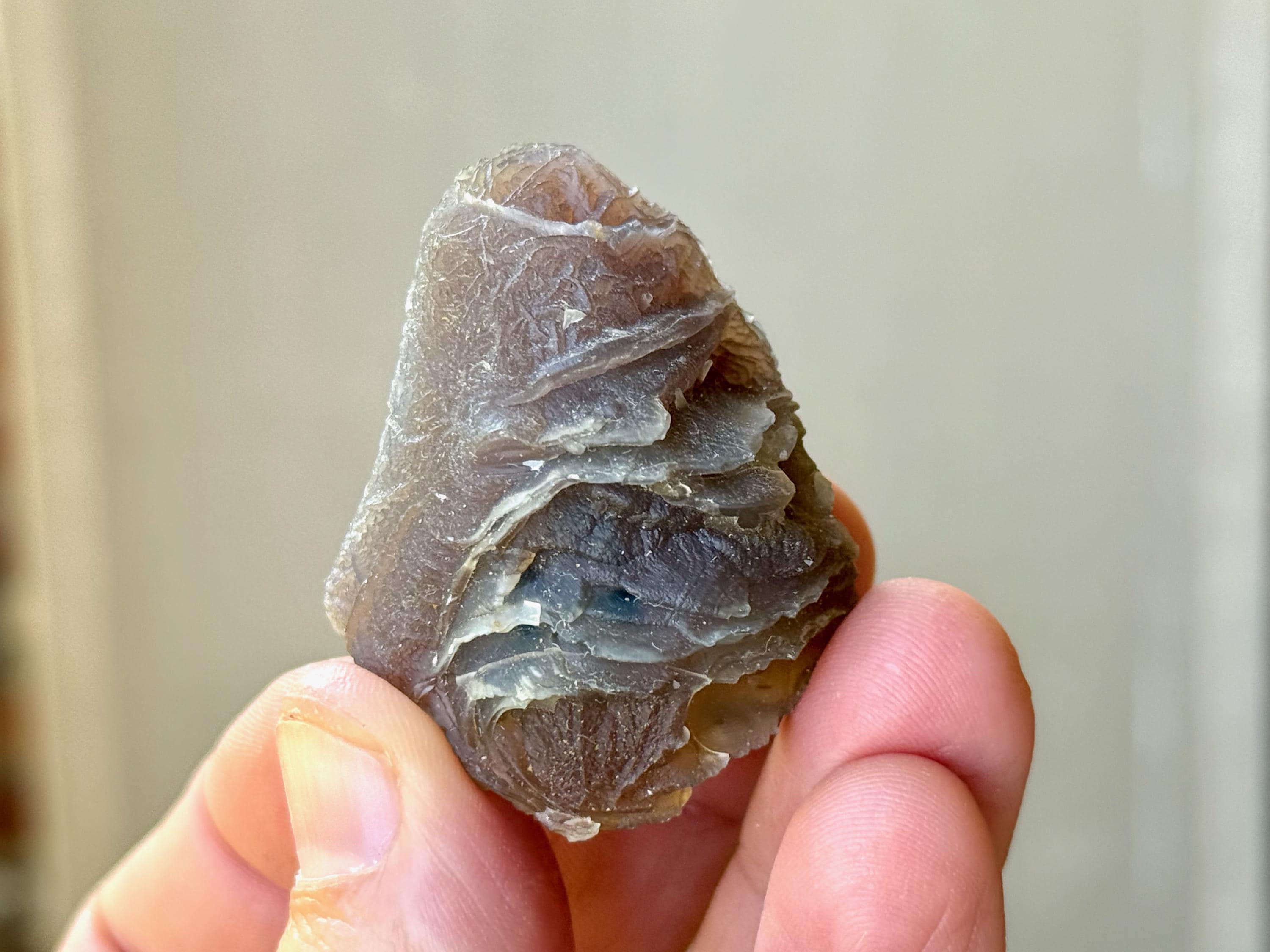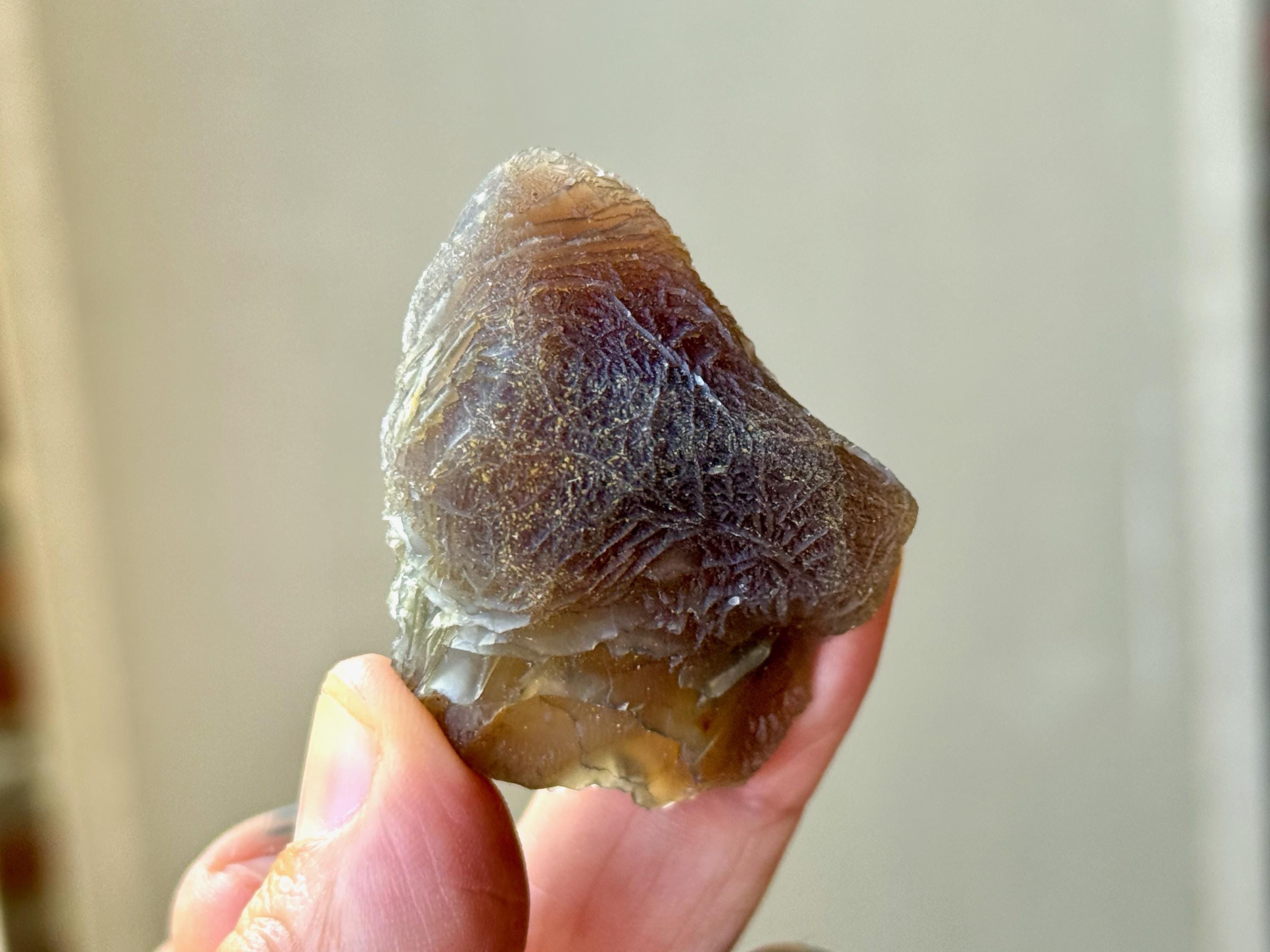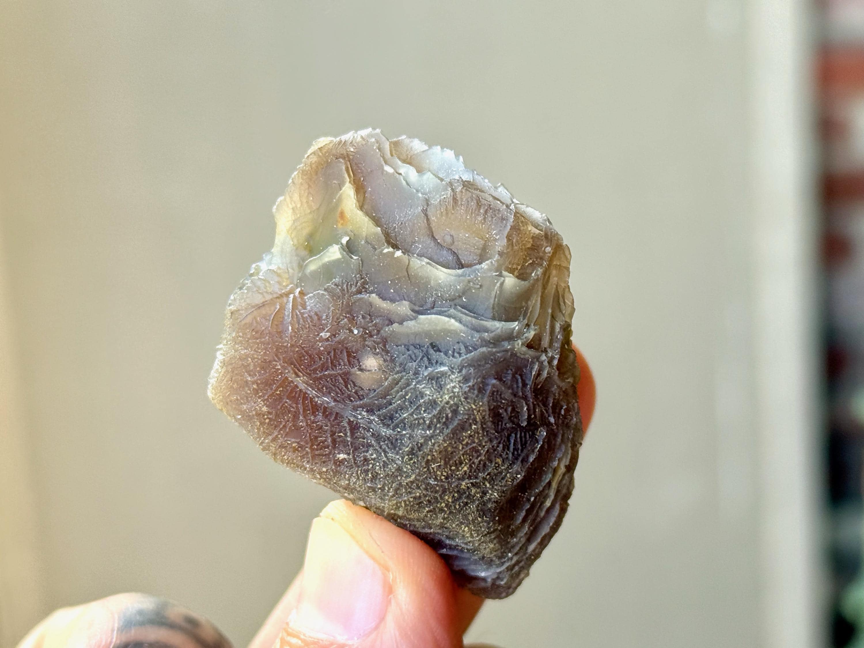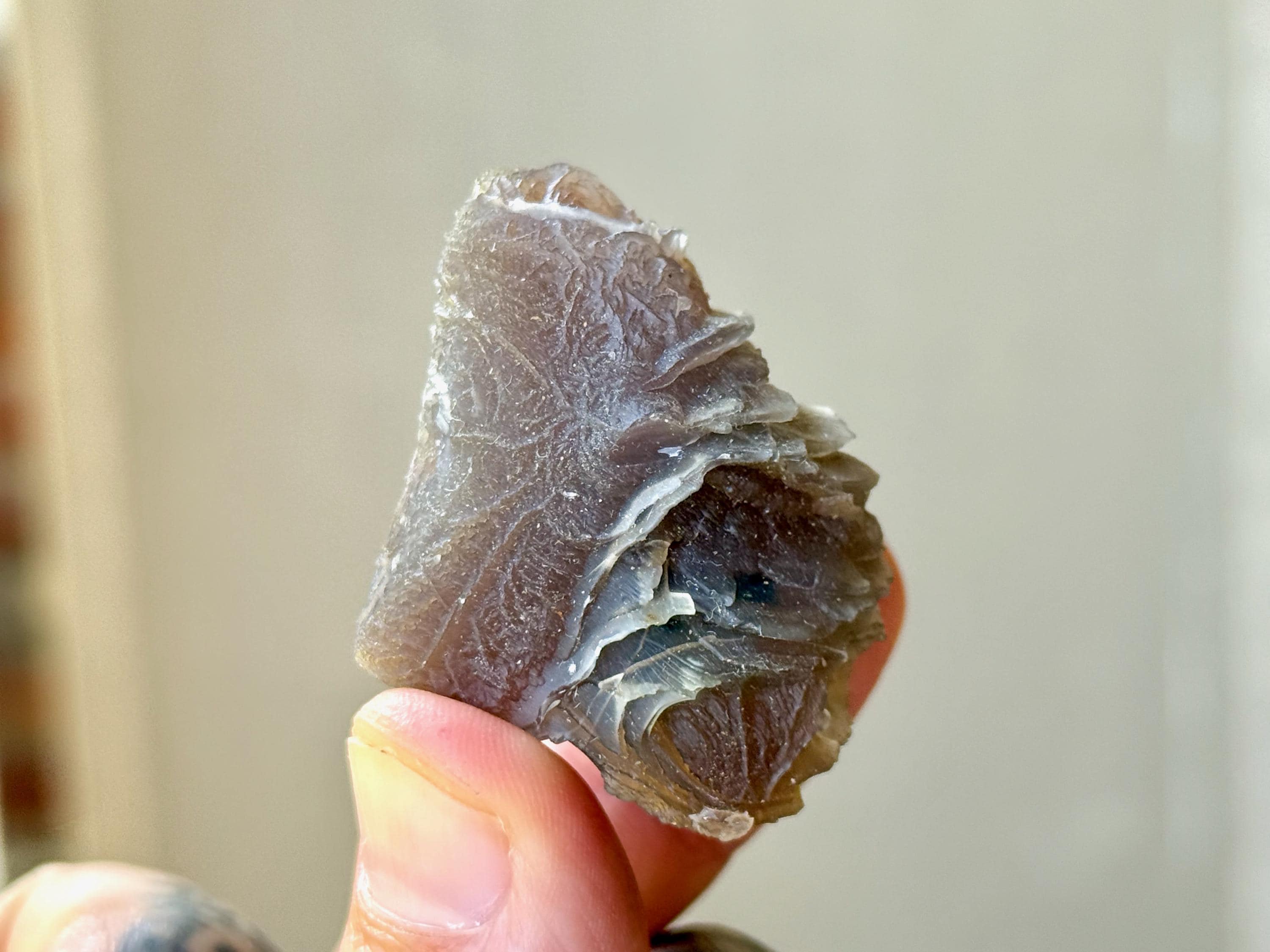 Layers upon layers of unique textures to this unusual Black Mountain Gobi Agate! In natural light, this stone has a grayish-black color with intricate patterning throughout. When backlit, this stone lights up brilliantly! (Photos 3-5). A very unique and beautiful stone from this rare locale.