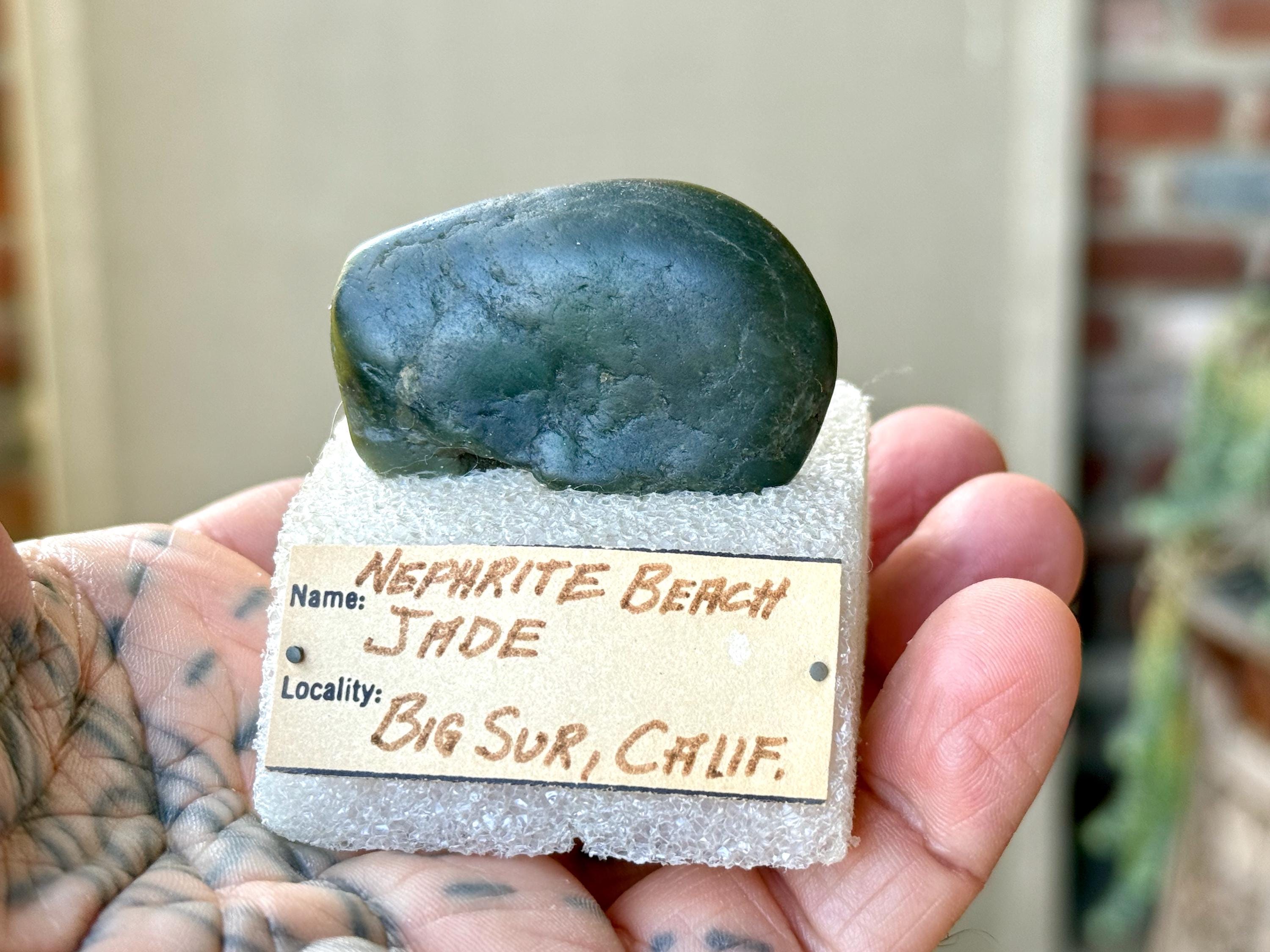 This Big Sur Jade comes from an old find in the famed Nephrite Beach area of Big Sur, California. It had been part of the private collection of beloved California rockhound and collector Robert Fitzpatrick. We had the privilege of picking a few pieces from his collection and this is one of them.
