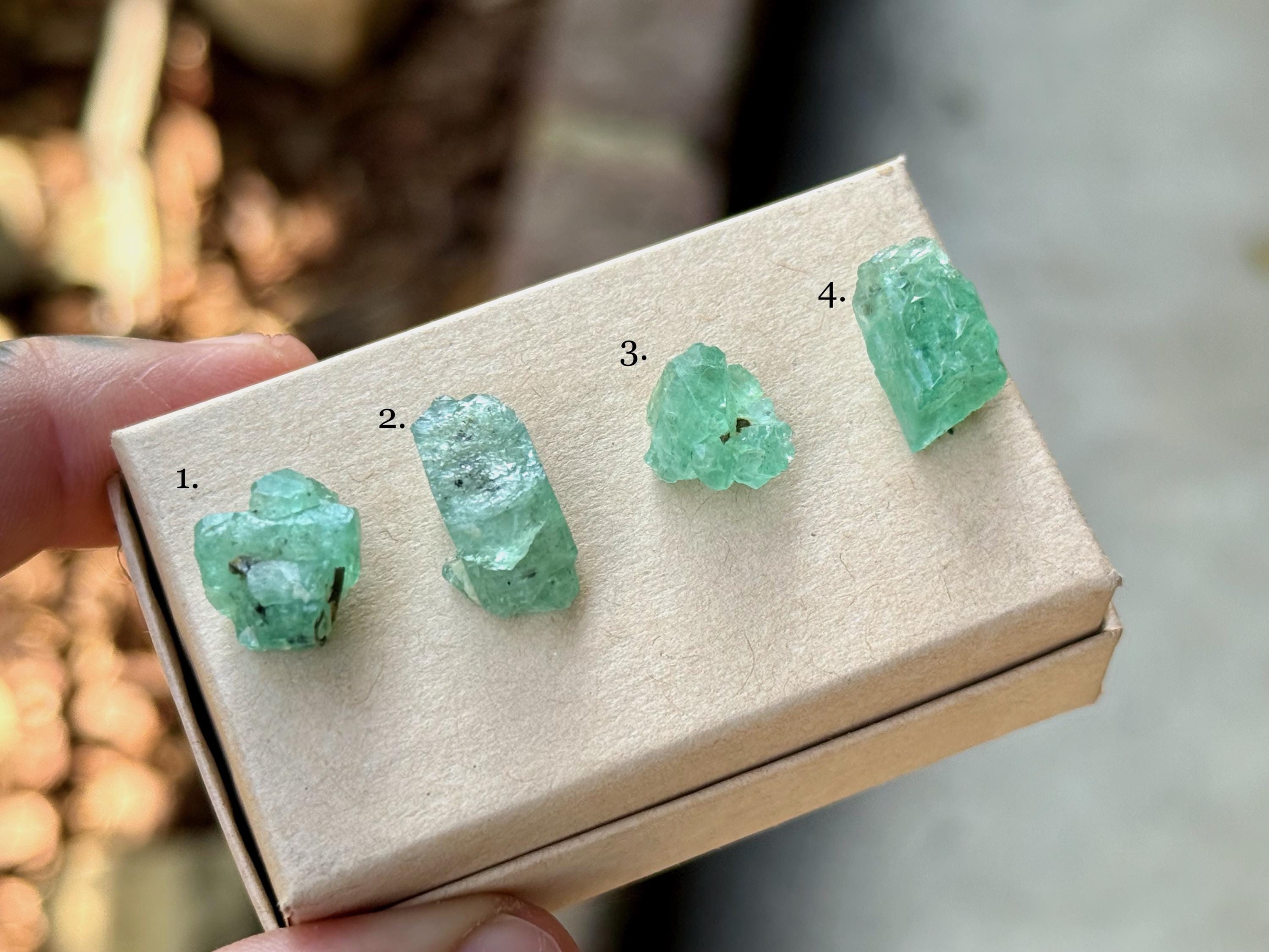 These exquisite, natural Emerald crystals come from Tanzania. Each selection is numbered, simply select your preference(s) from the dropdown menu.