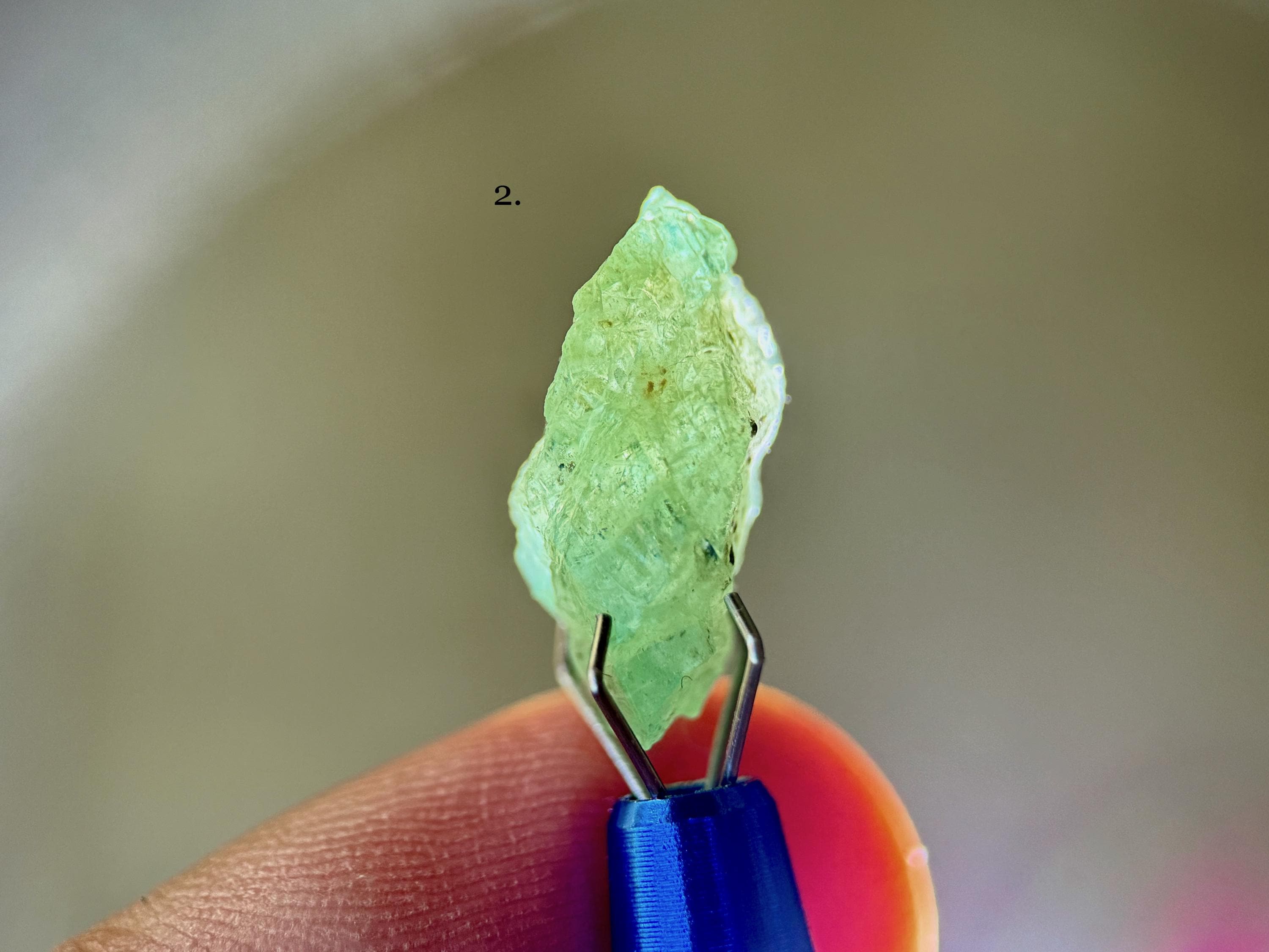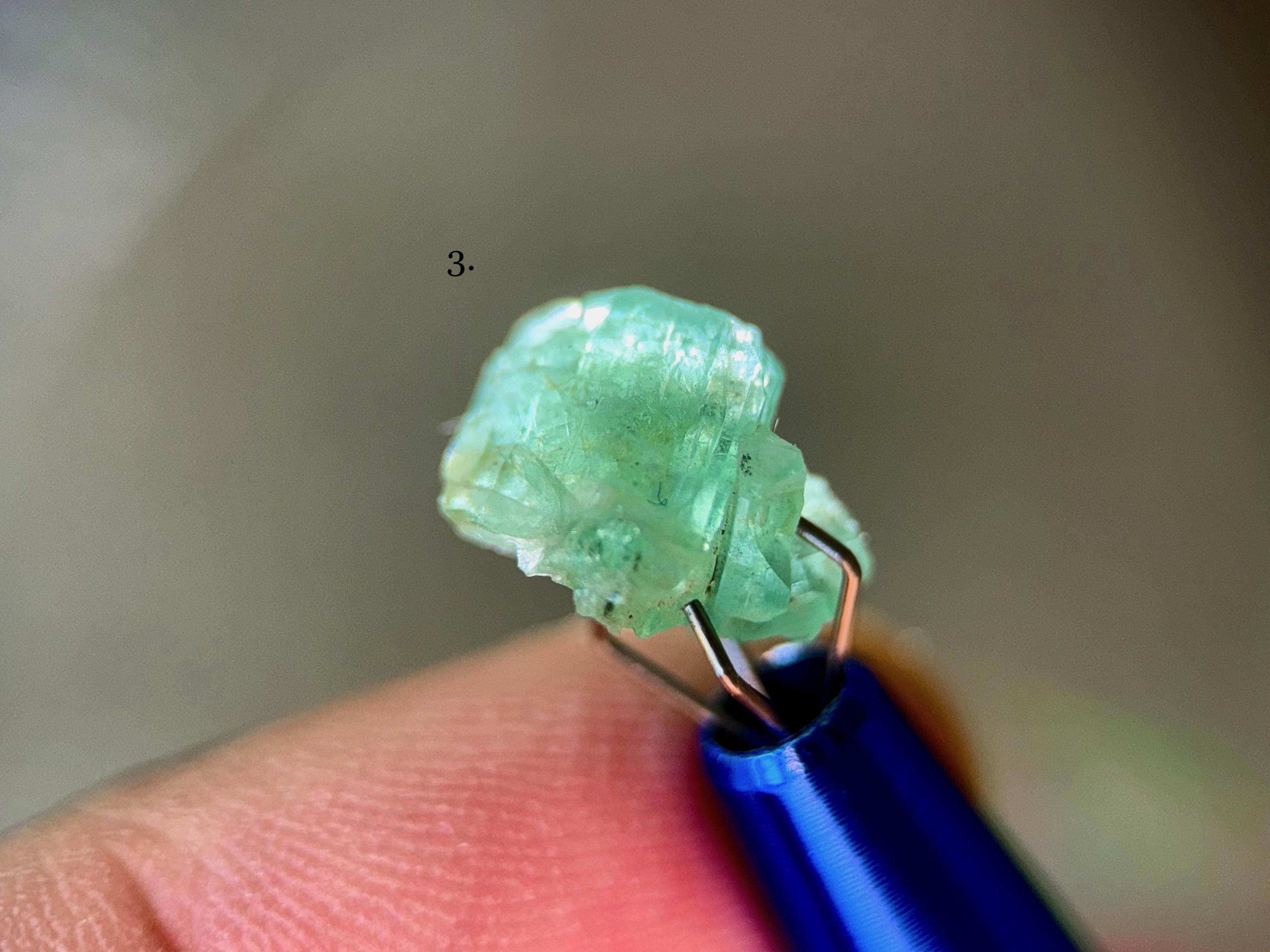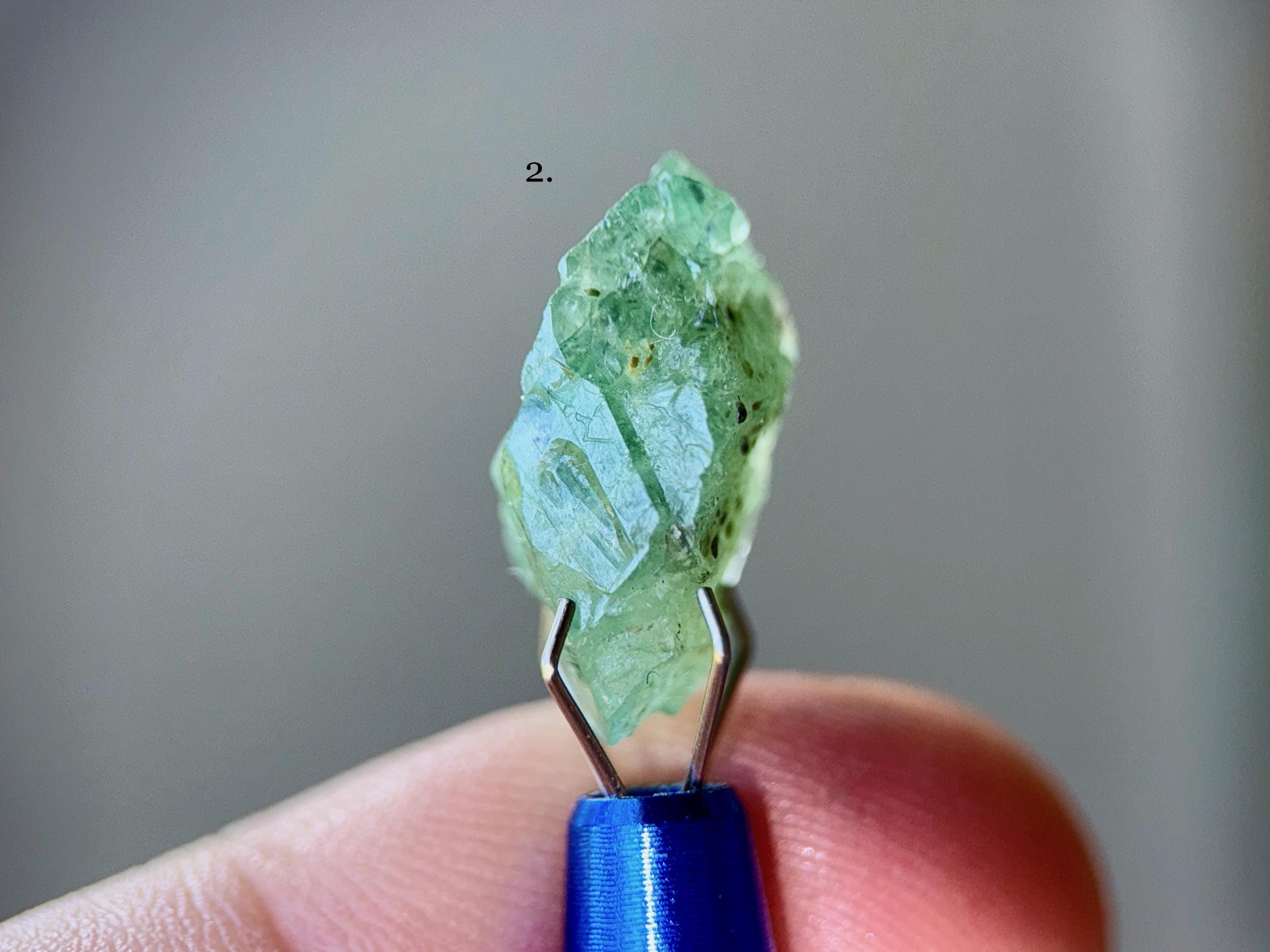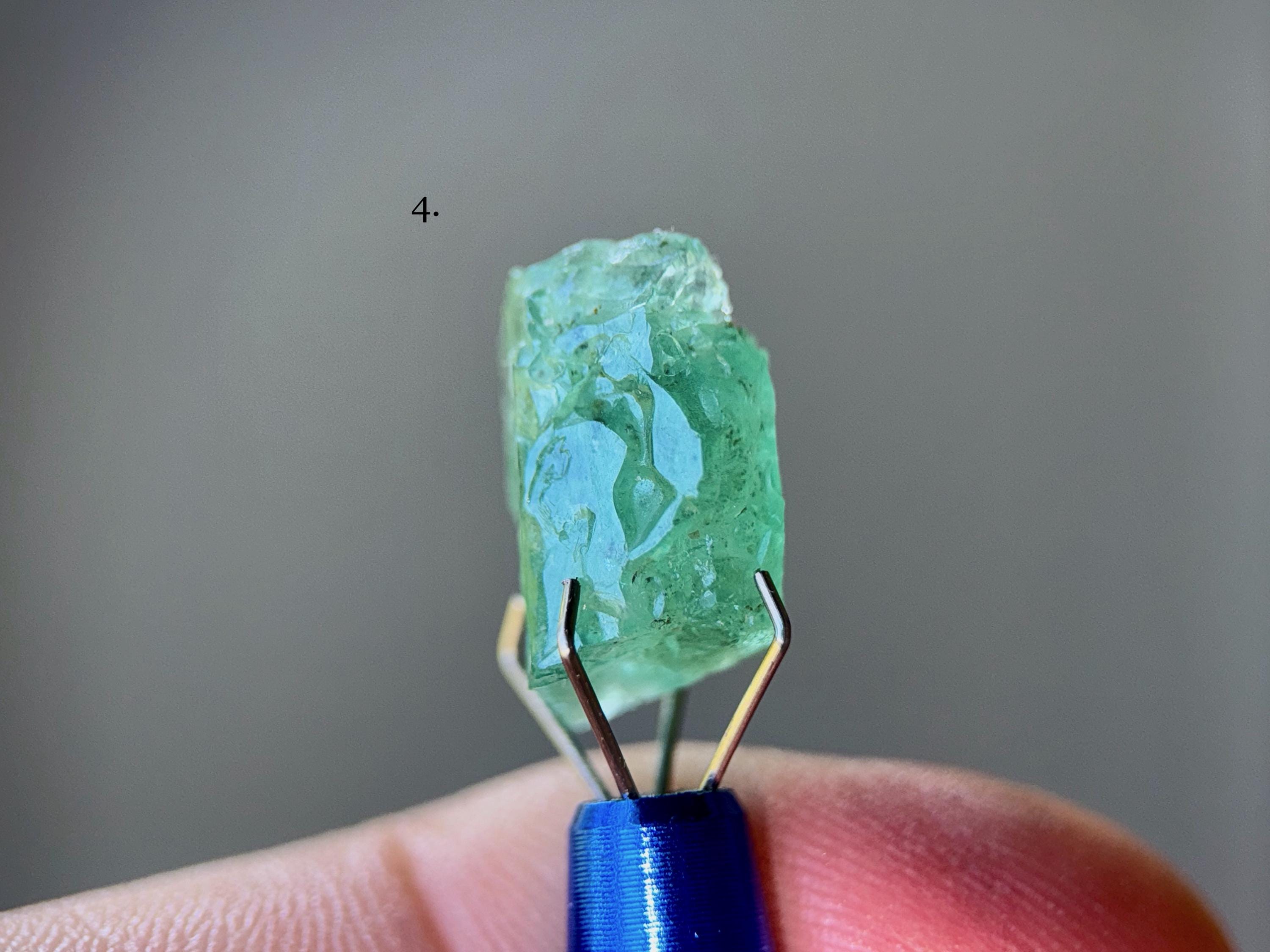 Vibrant blue-green hues and superb luster to these natural, gem Emerald crystals! These are raw Emeralds in their natural formations. Each has some natural terminations (true or self-healed). We've included photos in natural light and backlit. Please note that these crystals are small and we used a macro lens to photograph them.