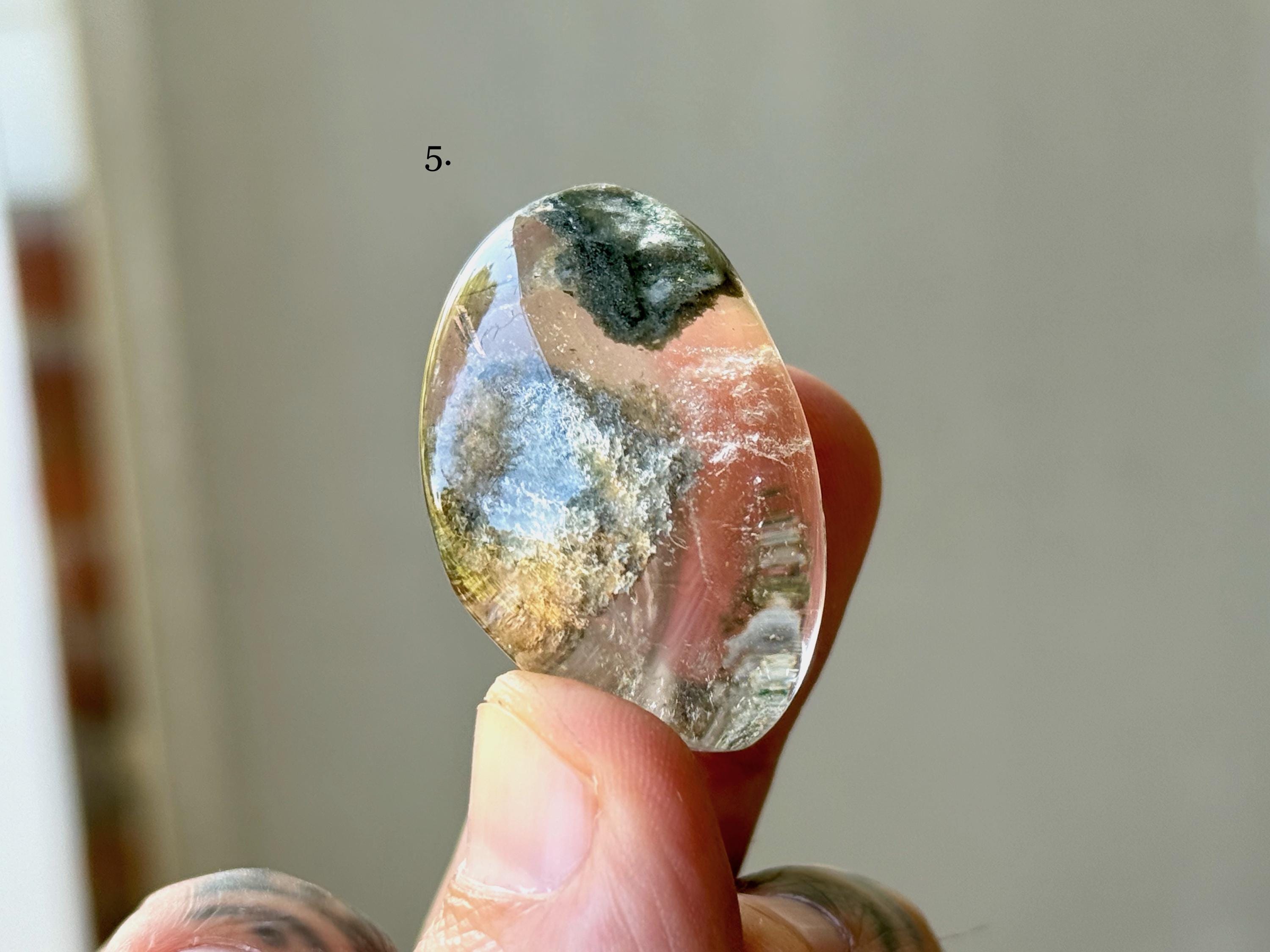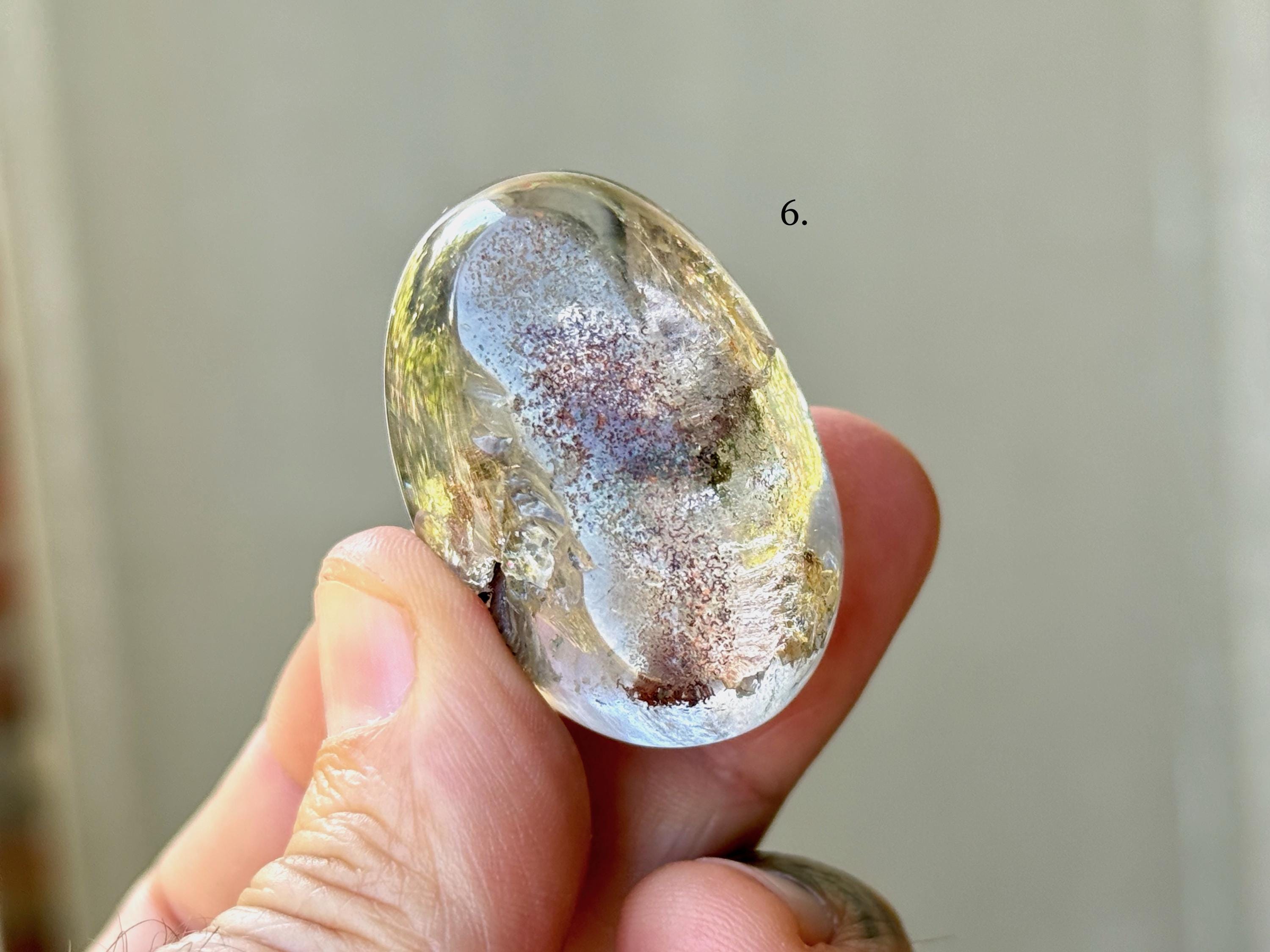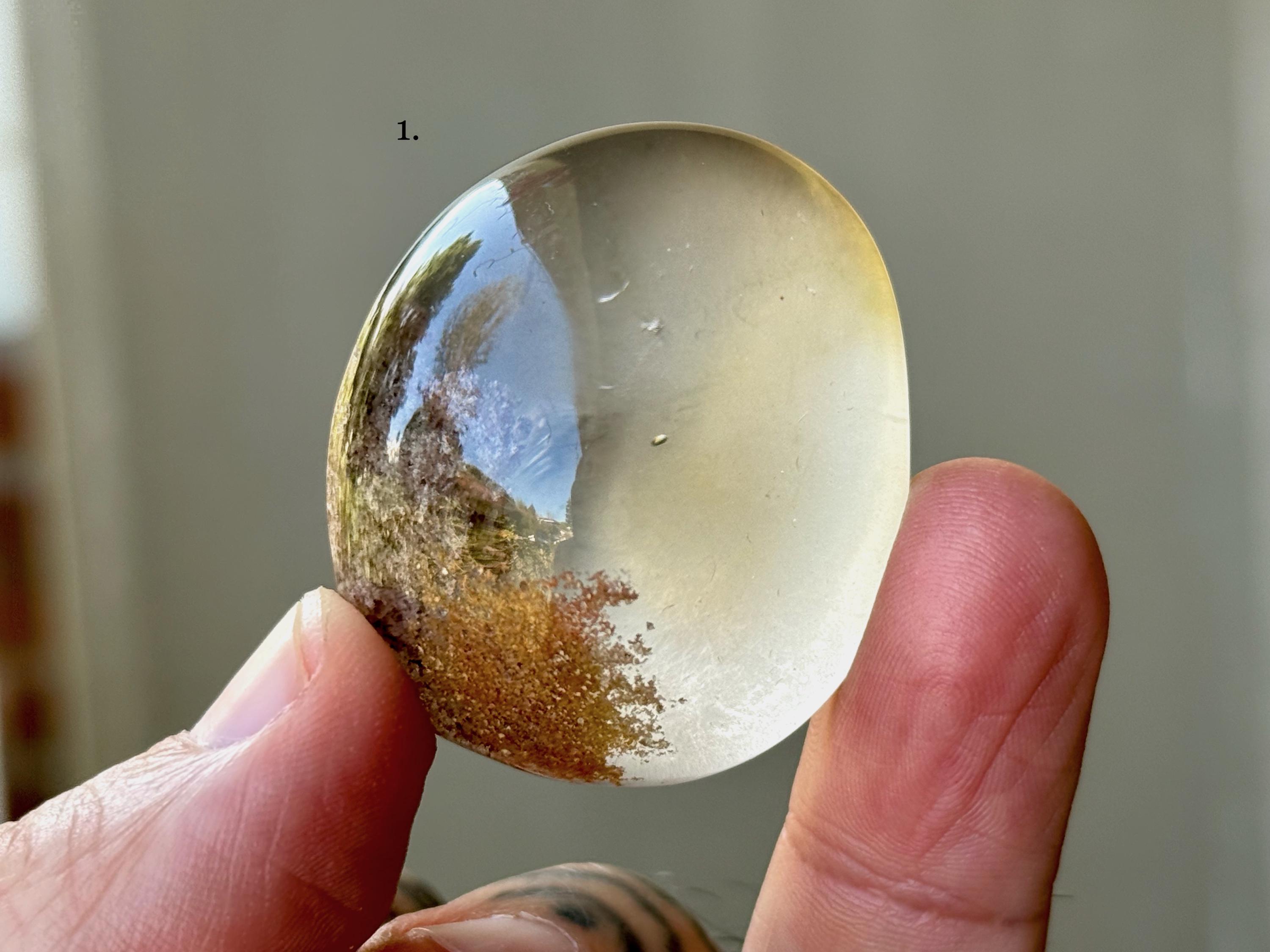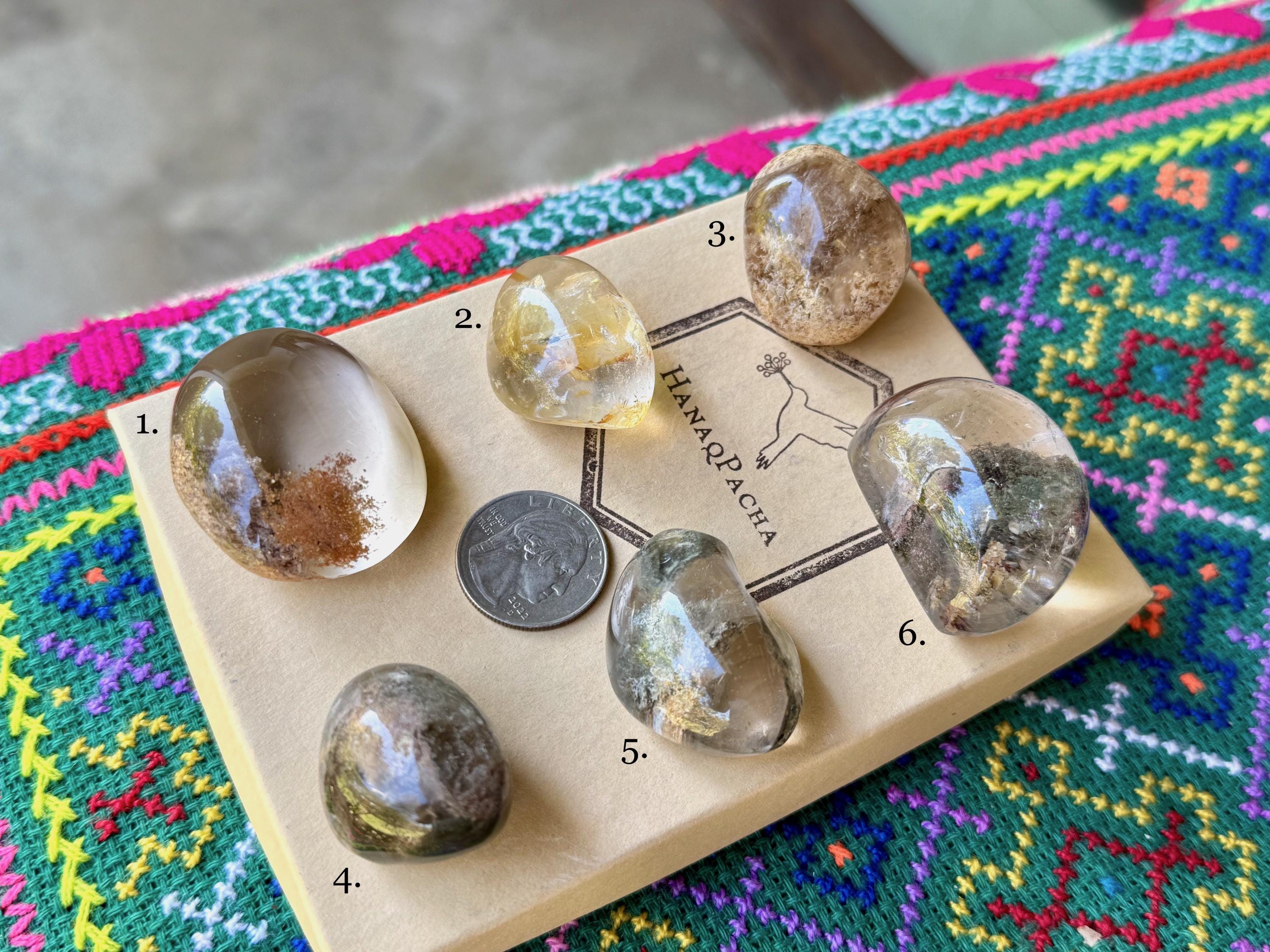 These Lodolite Garden Quartz crystals come from a recent find in Corinto, Minas Gerais, Brazil. Each crystal has been expertly cut and polished to accentuate the colorful, mossy inclusions within, as the "domed" formations really act as lenses to magnify the inclusions. Each selection is numbered, simply select the one(s) you'd like from the dropdown.