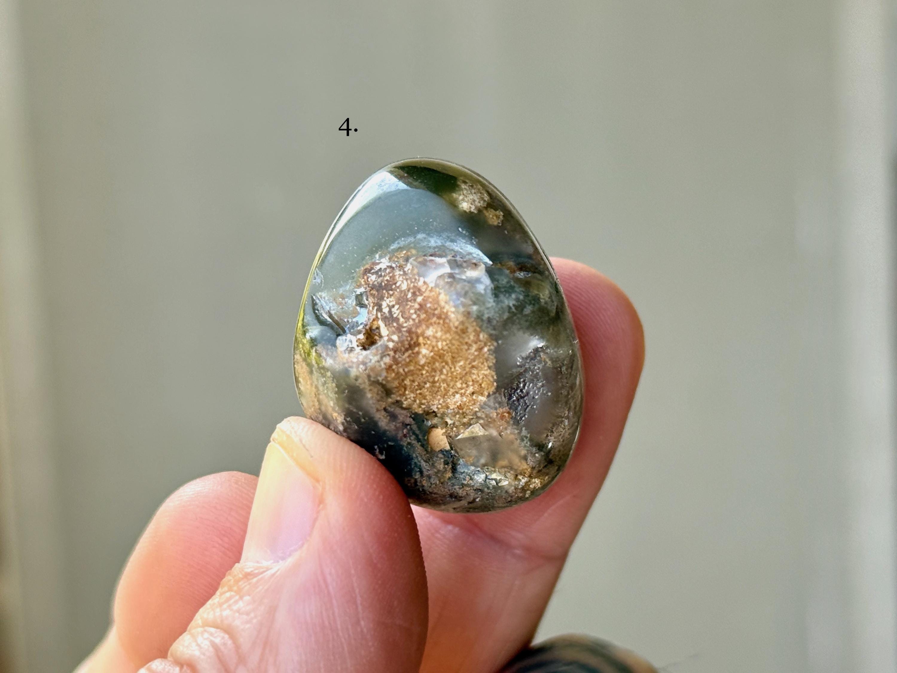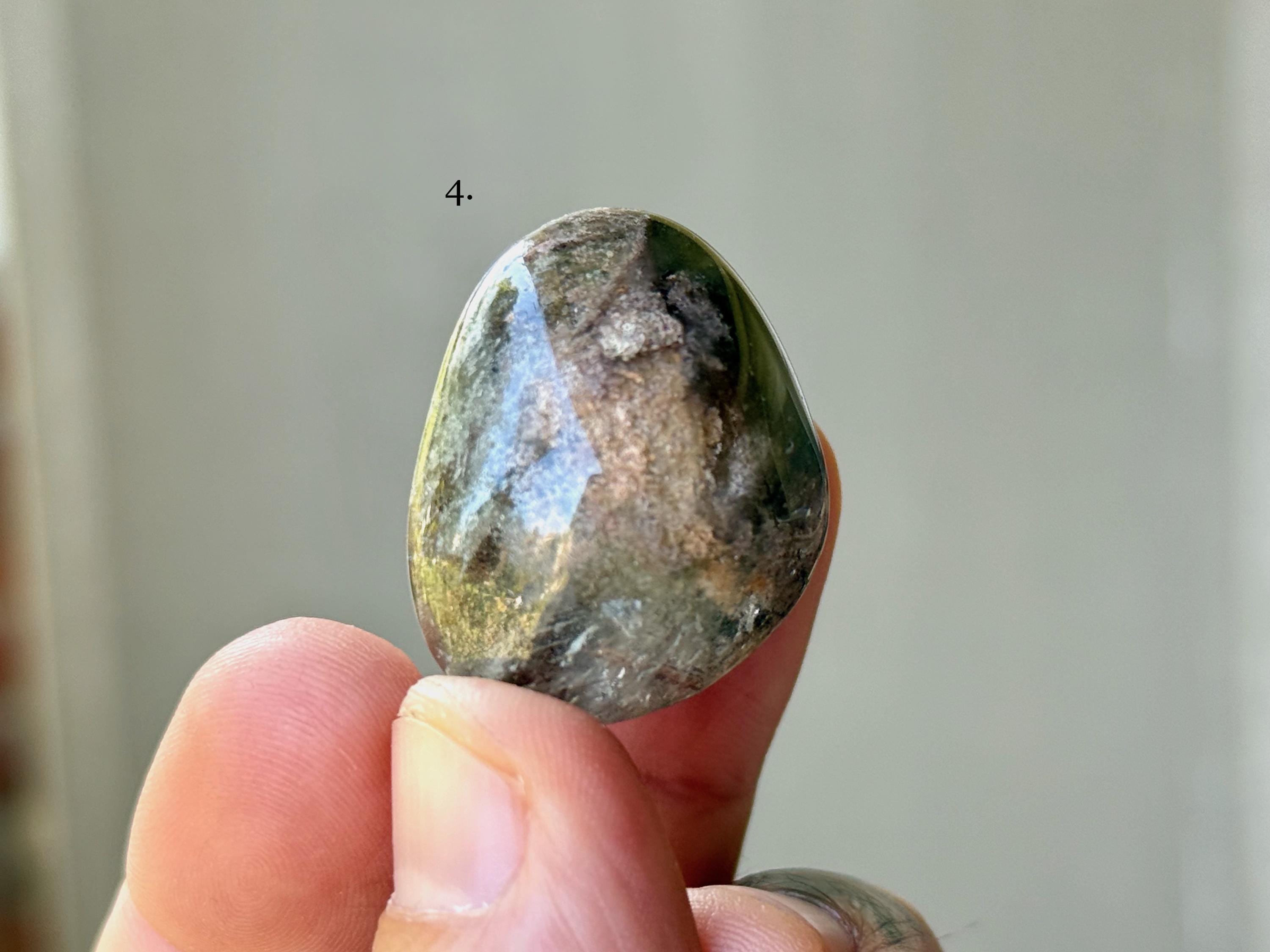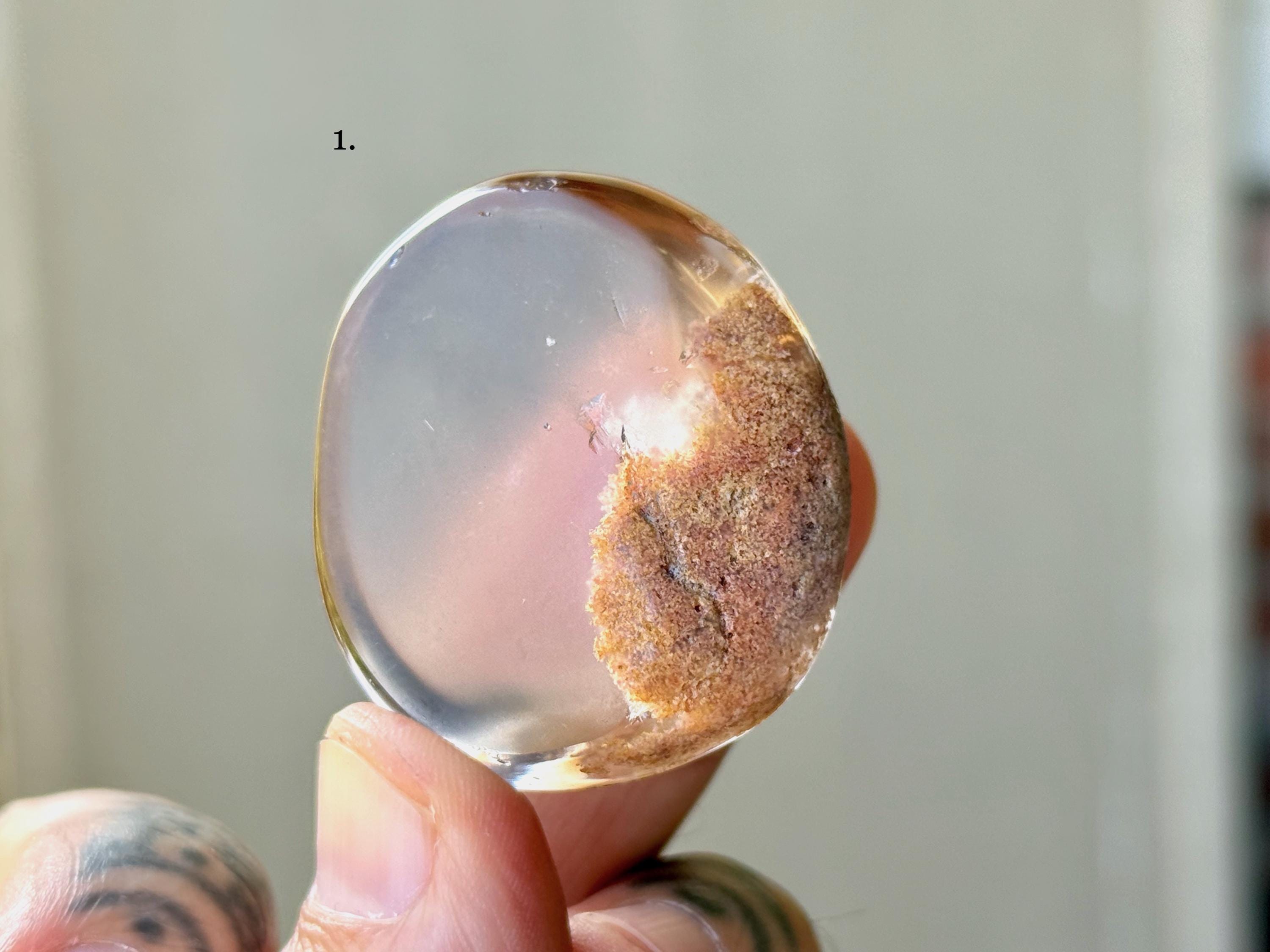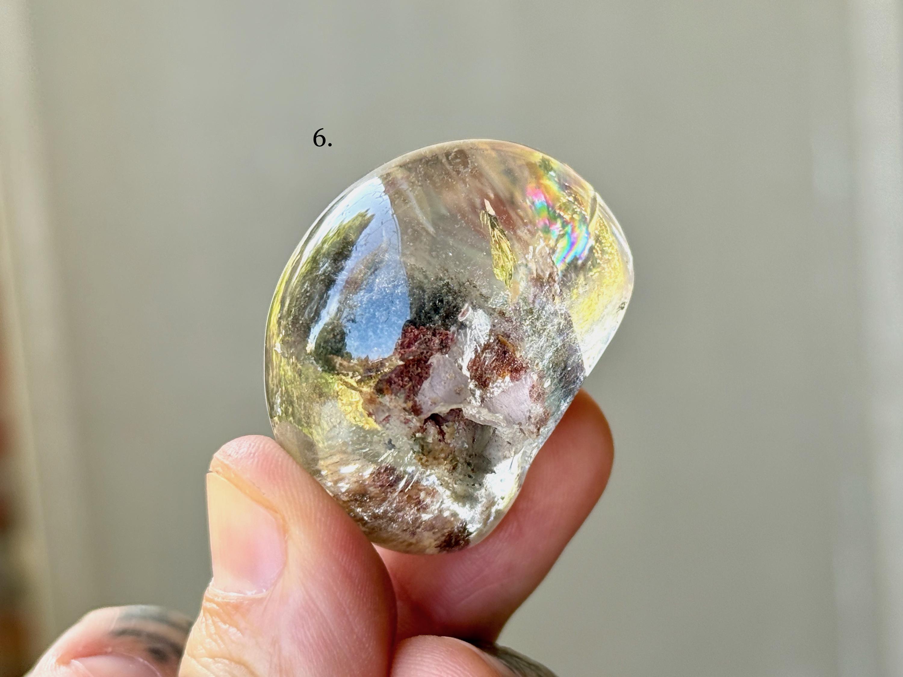 These Lodolite Garden Quartz crystals come from a recent find in Corinto, Minas Gerais, Brazil. Each crystal has been expertly cut and polished to accentuate the colorful, mossy inclusions within, as the "domed" formations really act as lenses to magnify the inclusions. Each selection is numbered, simply select the one(s) you'd like from the dropdown.