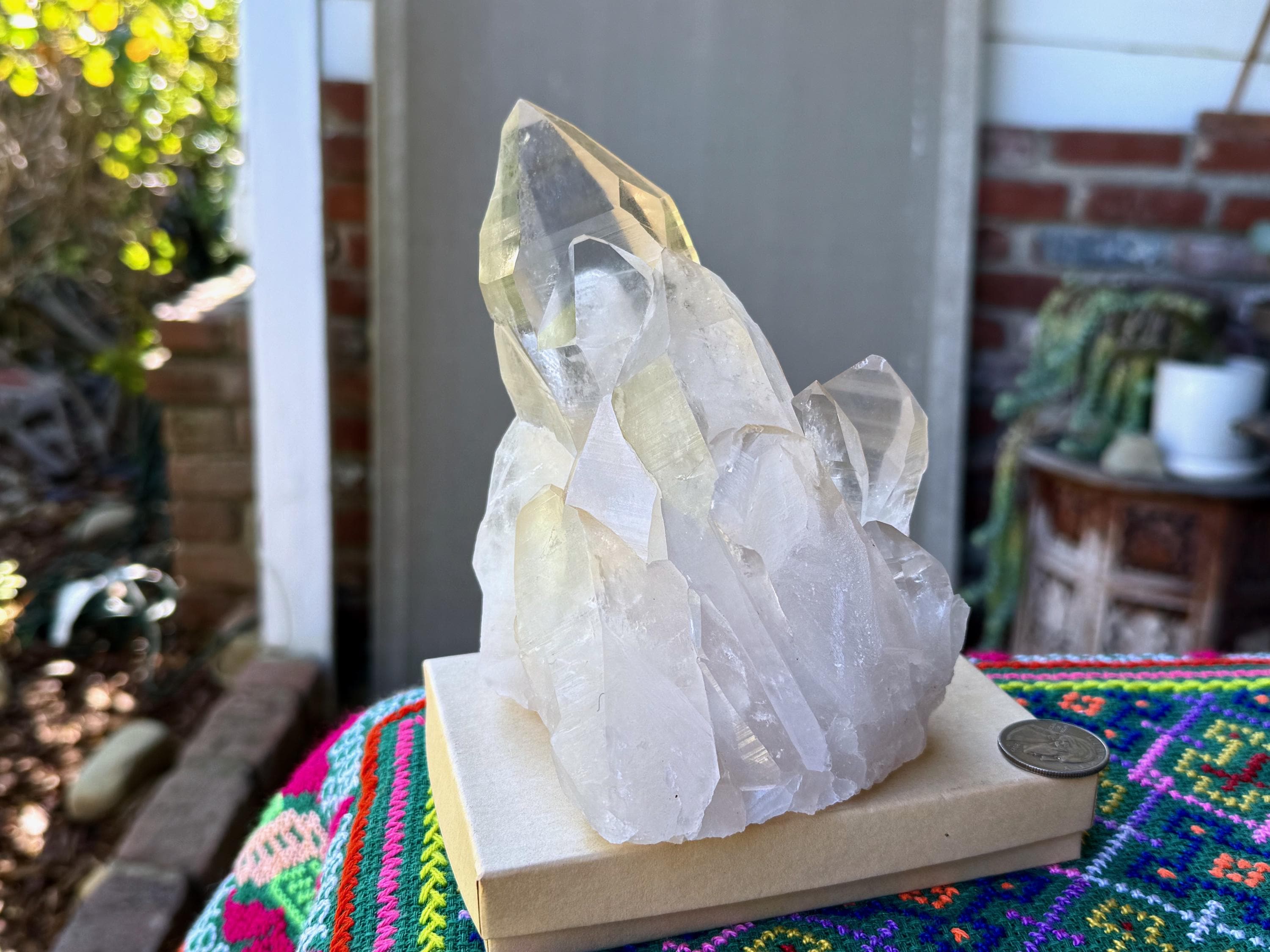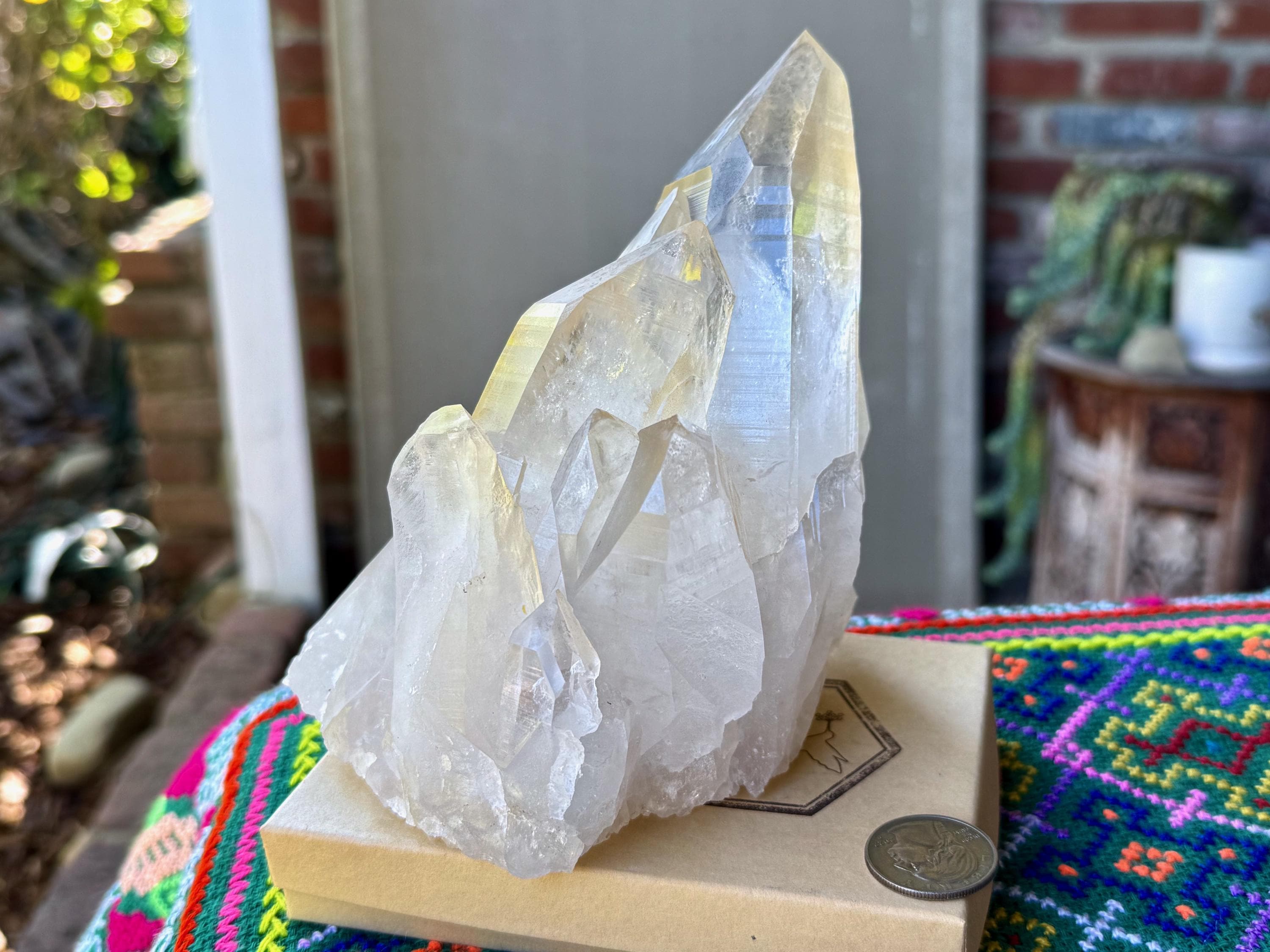 This spectacular Golden Healer Lemurian Quartz crystal comes from a 2022 find in Bahia, Brazil.