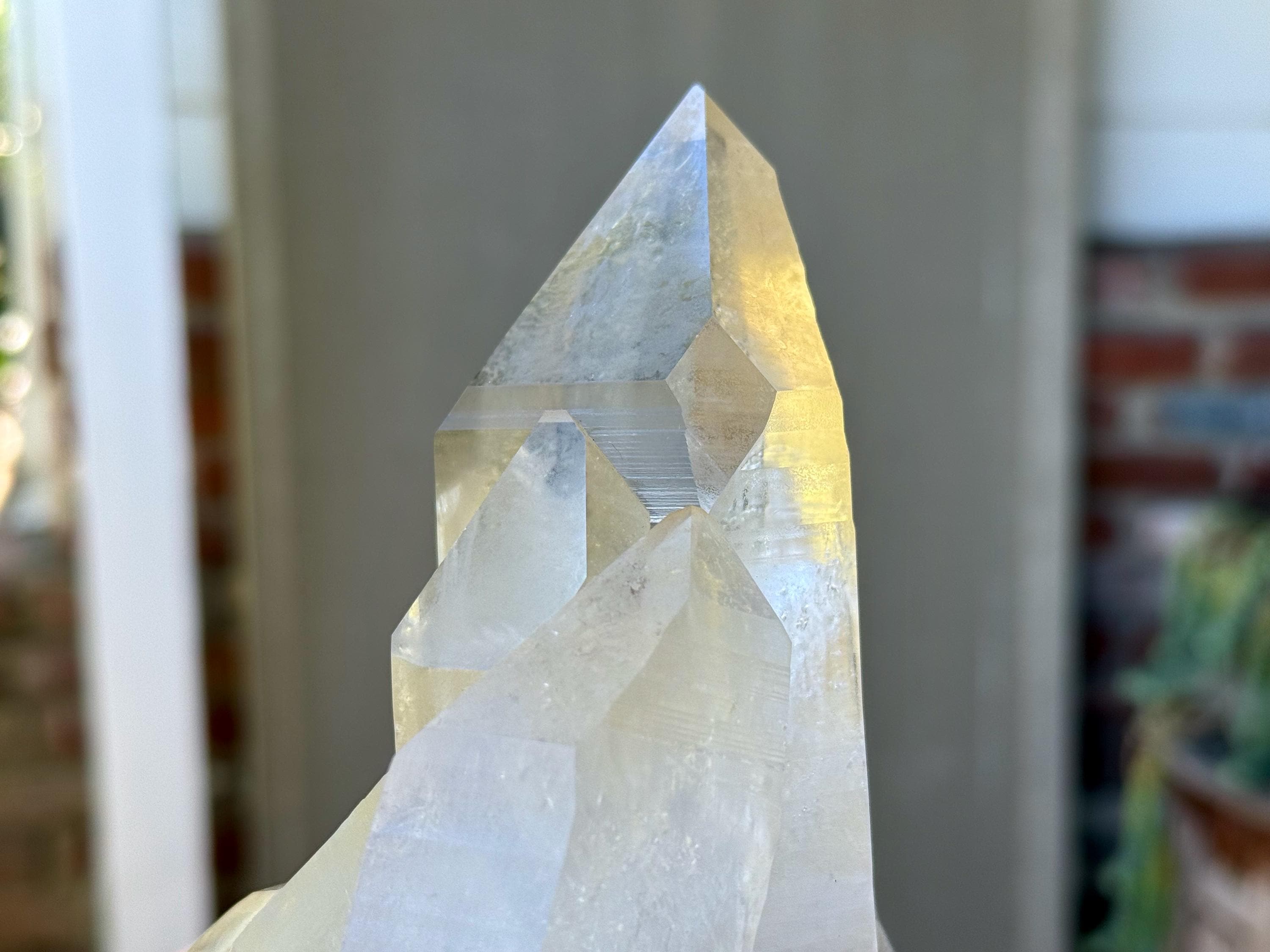 The primary crystal, which sits in back and towers above the others, is particularly beautiful and has a diamond-shaped "window" facet to the lower right of the main face (Photos 6-7, see more on this below). The termination to the primary, and each of the secondary crystals, is excellent. This would make such a stunning piece for display in any home, living space, yoga studio or meditation area.
