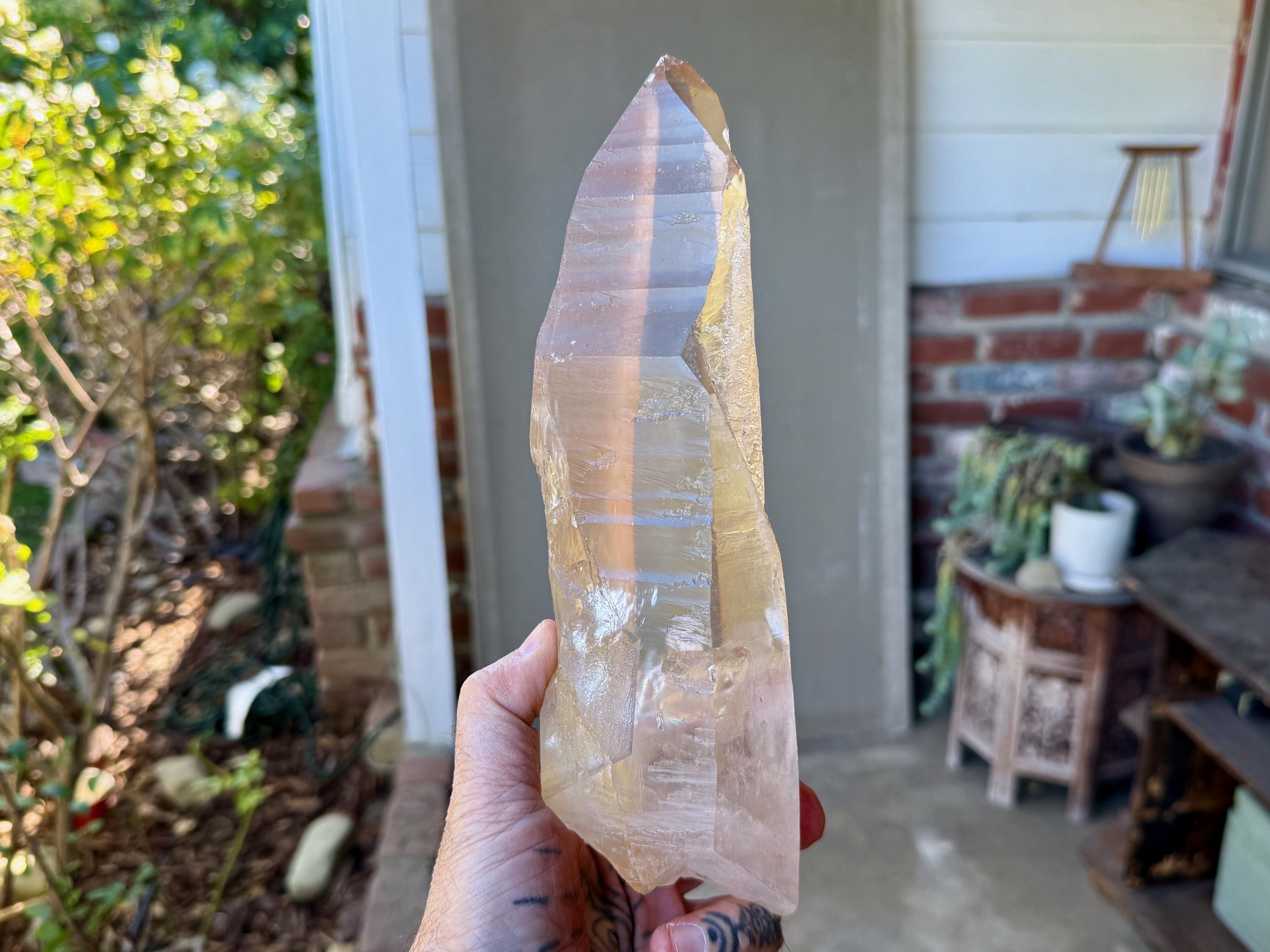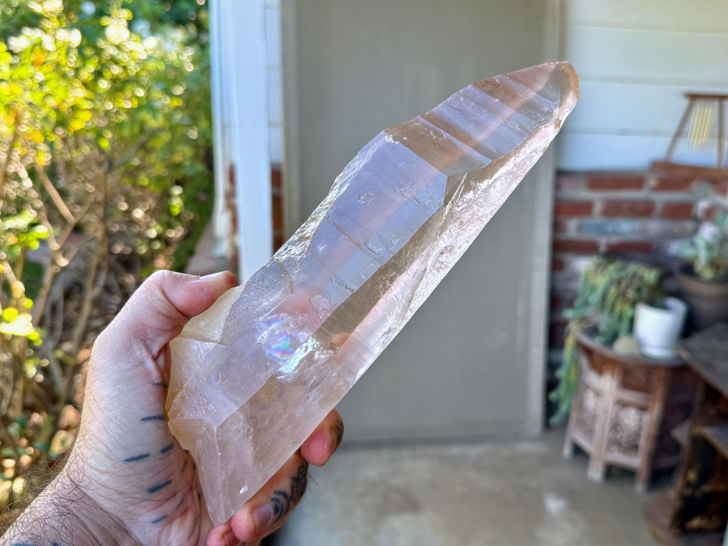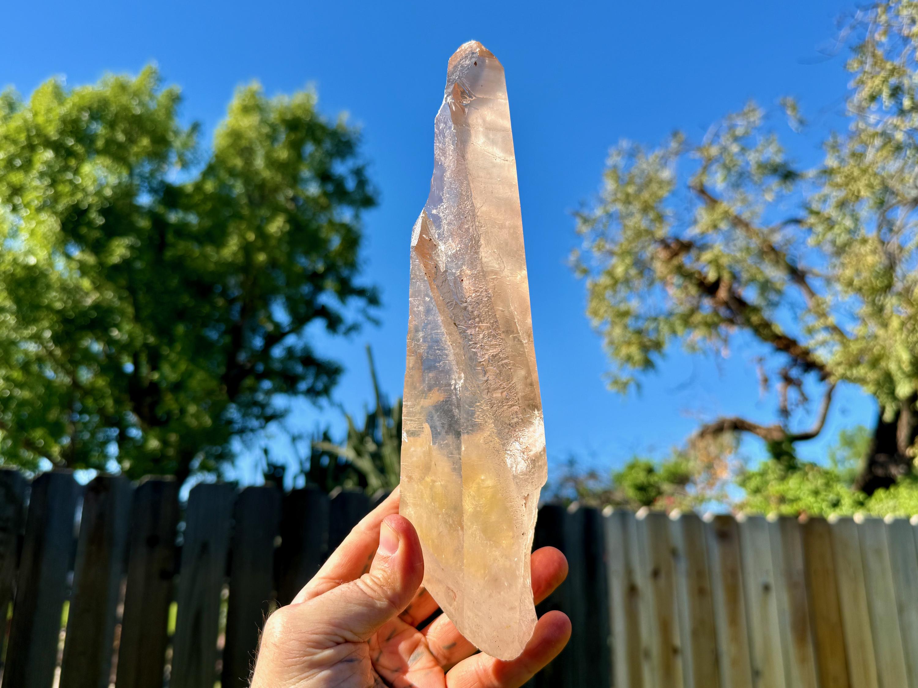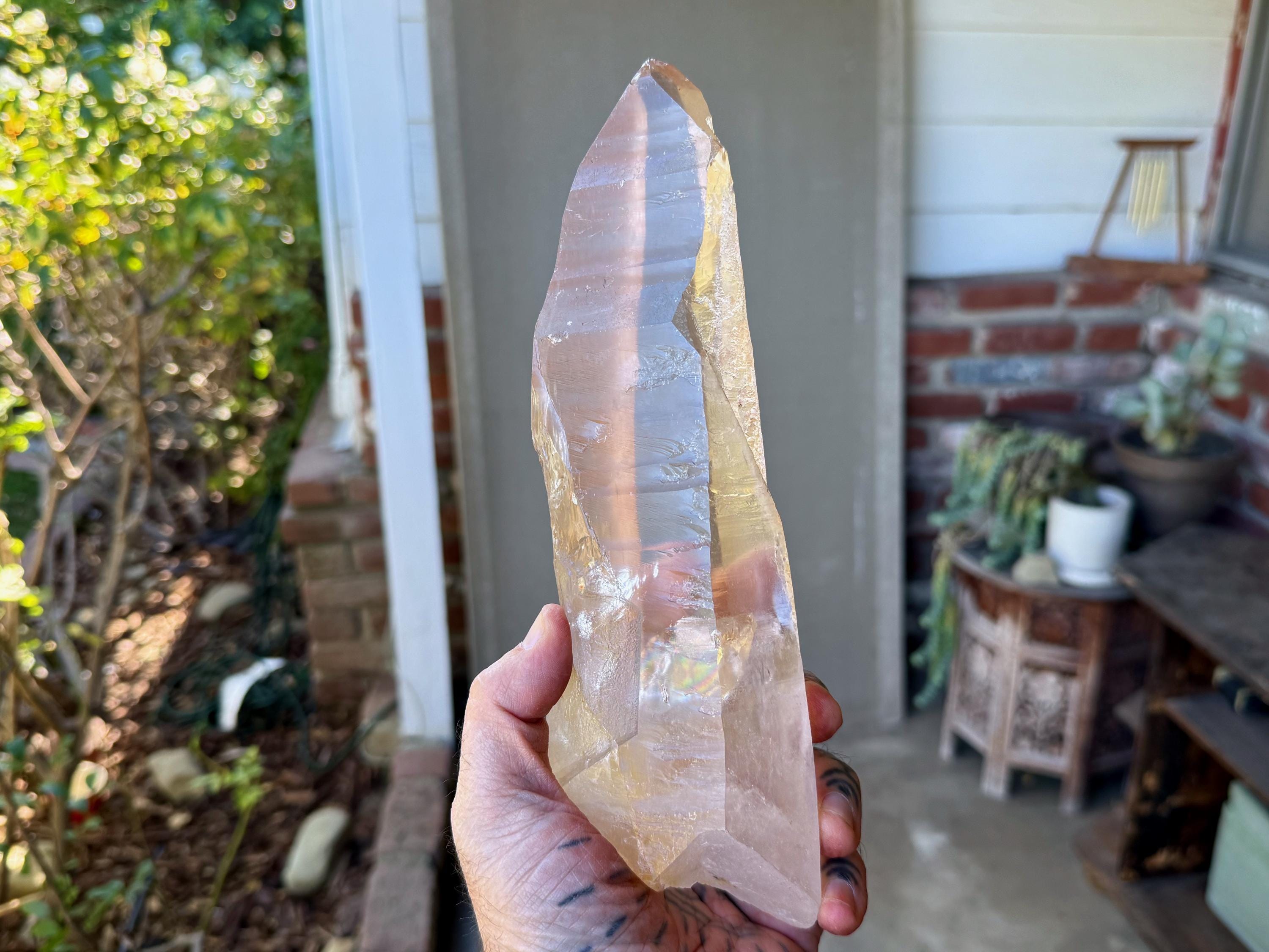 One of the very best pieces from this collection! This Pink Golden Healer Lemurian stands an imposing 10" (25 cm) tall, and weighs over 3 pounds (1.4 Kilogram), in a superb elongated formation.
