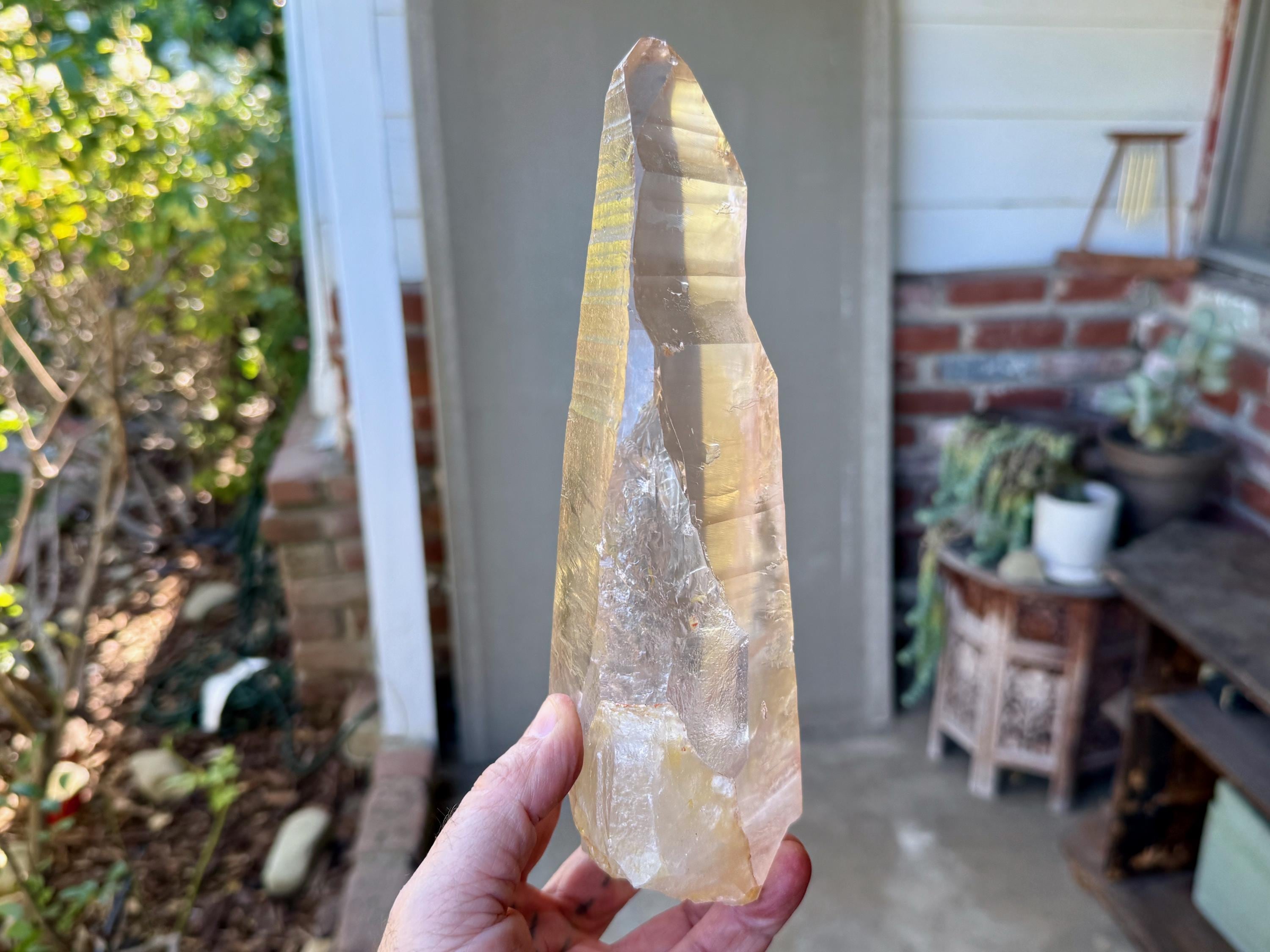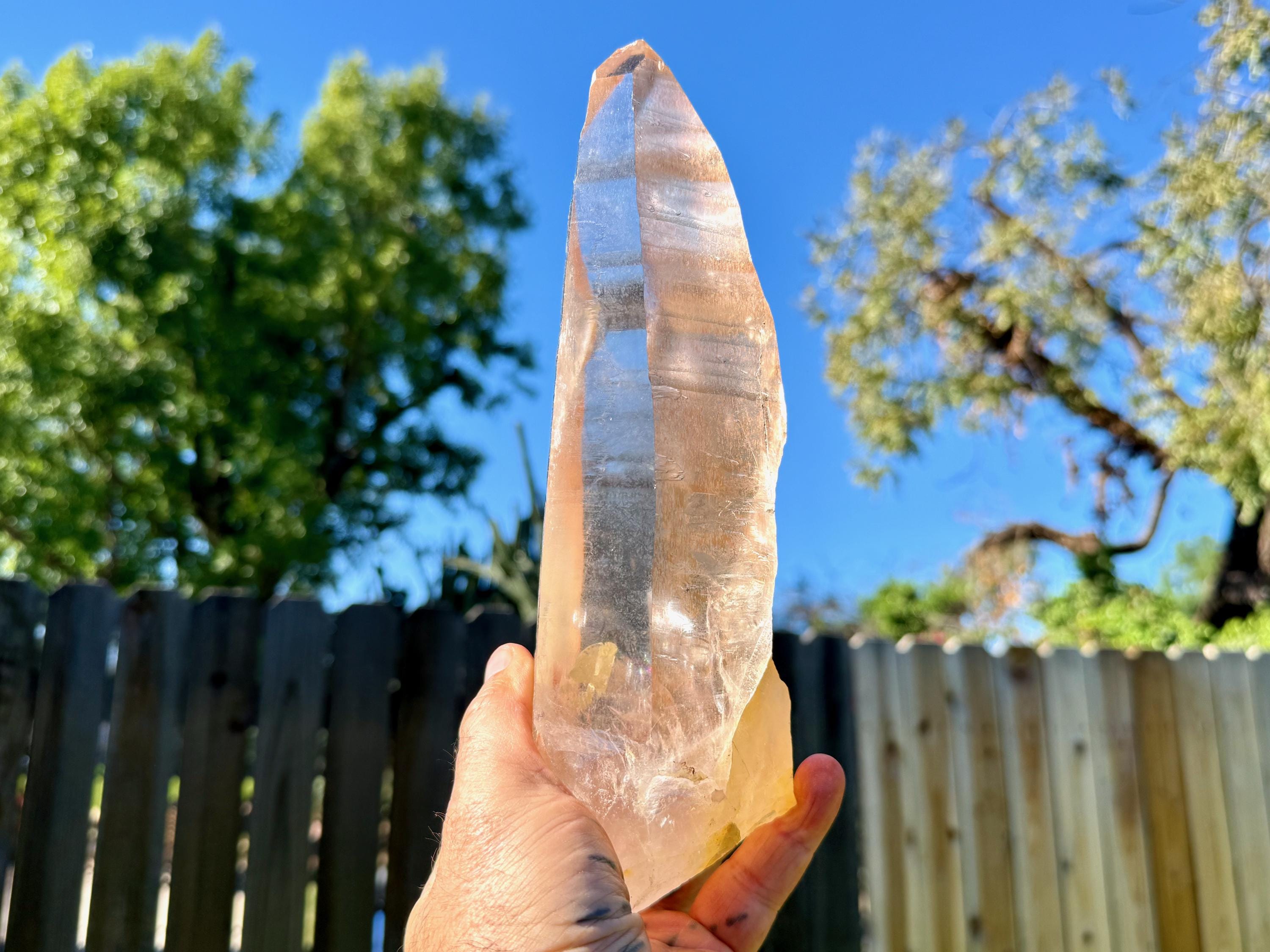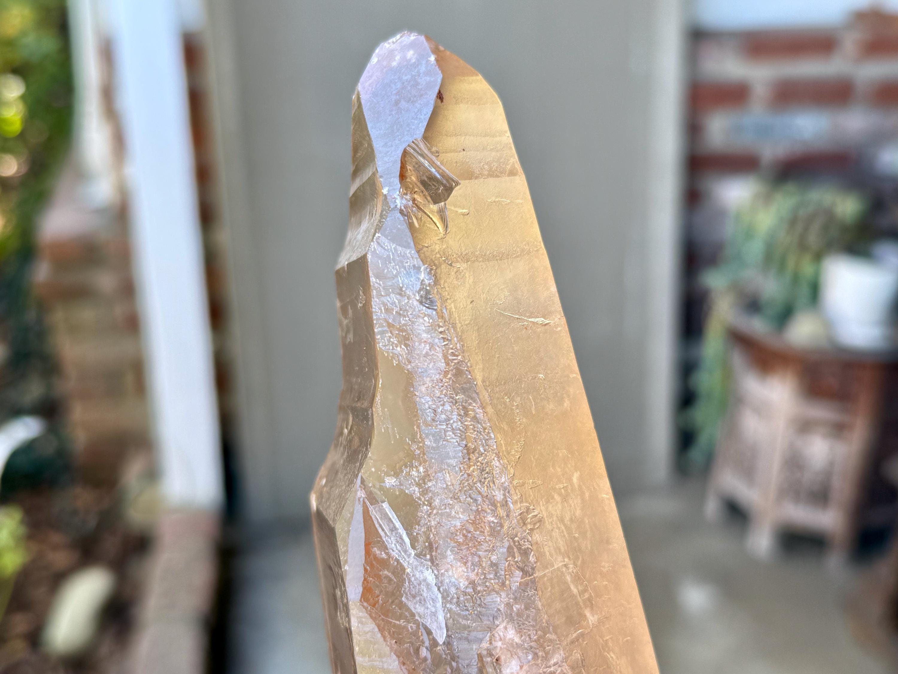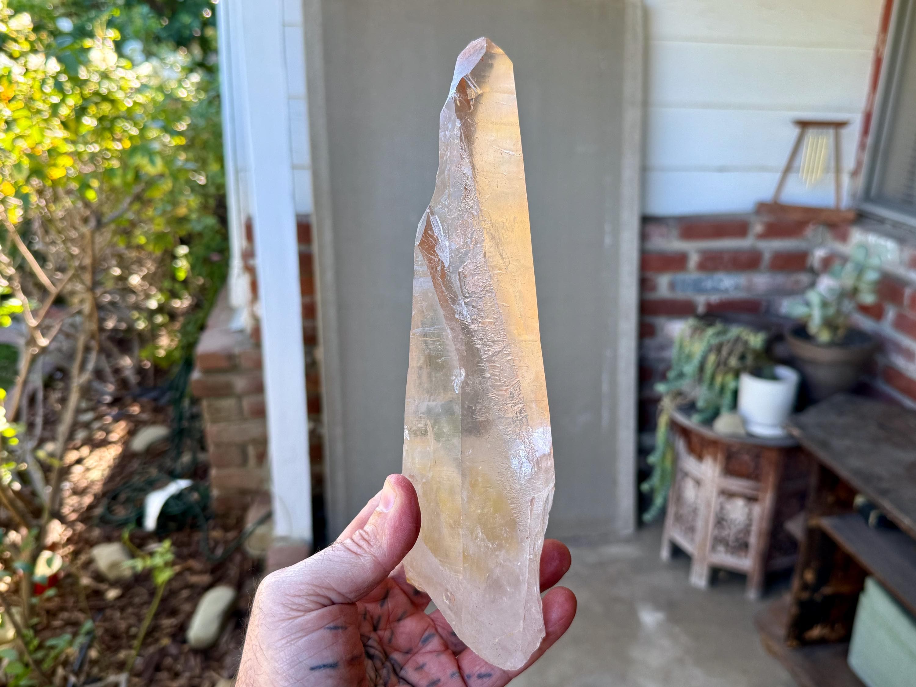 One of the very best pieces from this collection! This Pink Golden Healer Lemurian stands an imposing 10" (25 cm) tall, and weighs over 3 pounds (1.4 Kilogram), in a superb elongated formation.