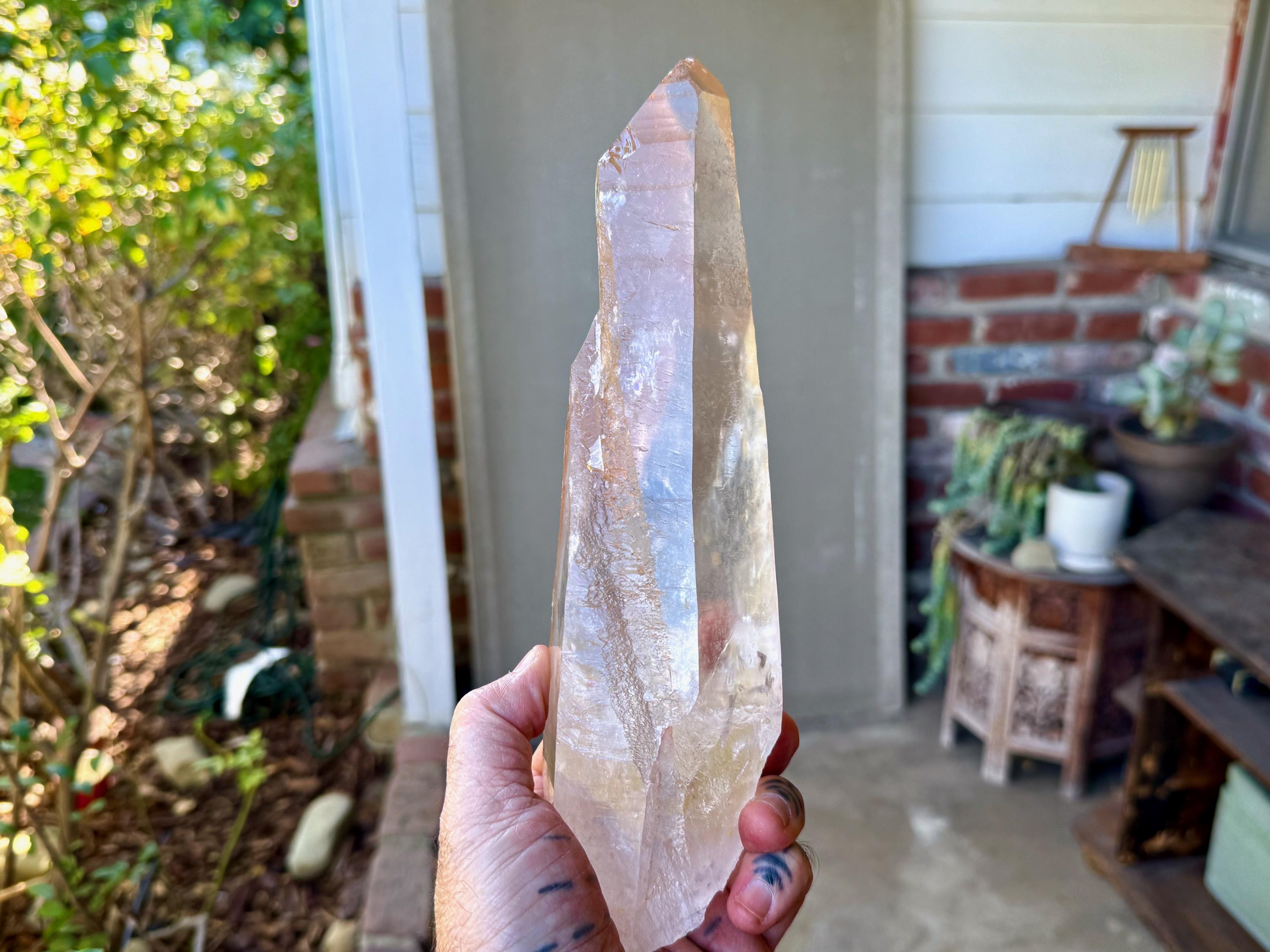 What we really love about this piece is the wide Lemurian ridges on its sides that are also slightly rounded, reminiscent of the original Golden Healer / Pink Lemurian find in the Serra do Cabral Mountains many years ago. You'll also find an array of Starbrary-esque markings on its sides, which are also characteristic of the crystals from this new find.