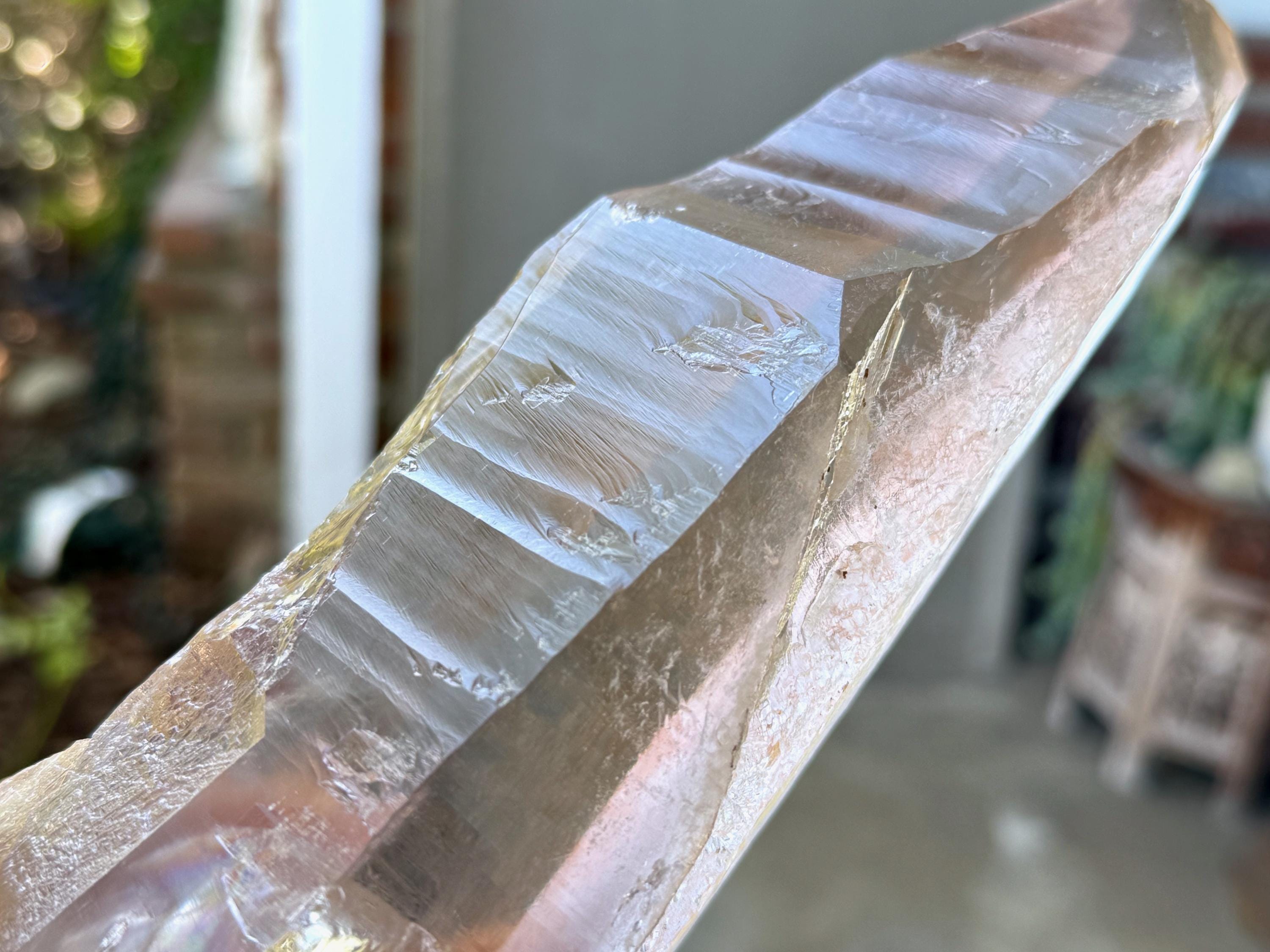 This exceptional Pink Golden Healer Lemurian comes from a recent find in Cristalina, Goiás, Brazil.