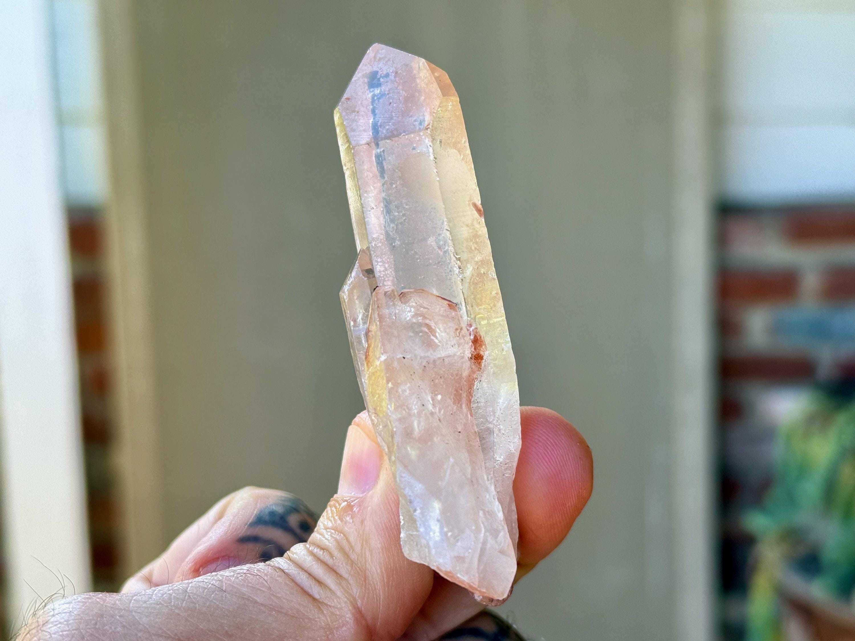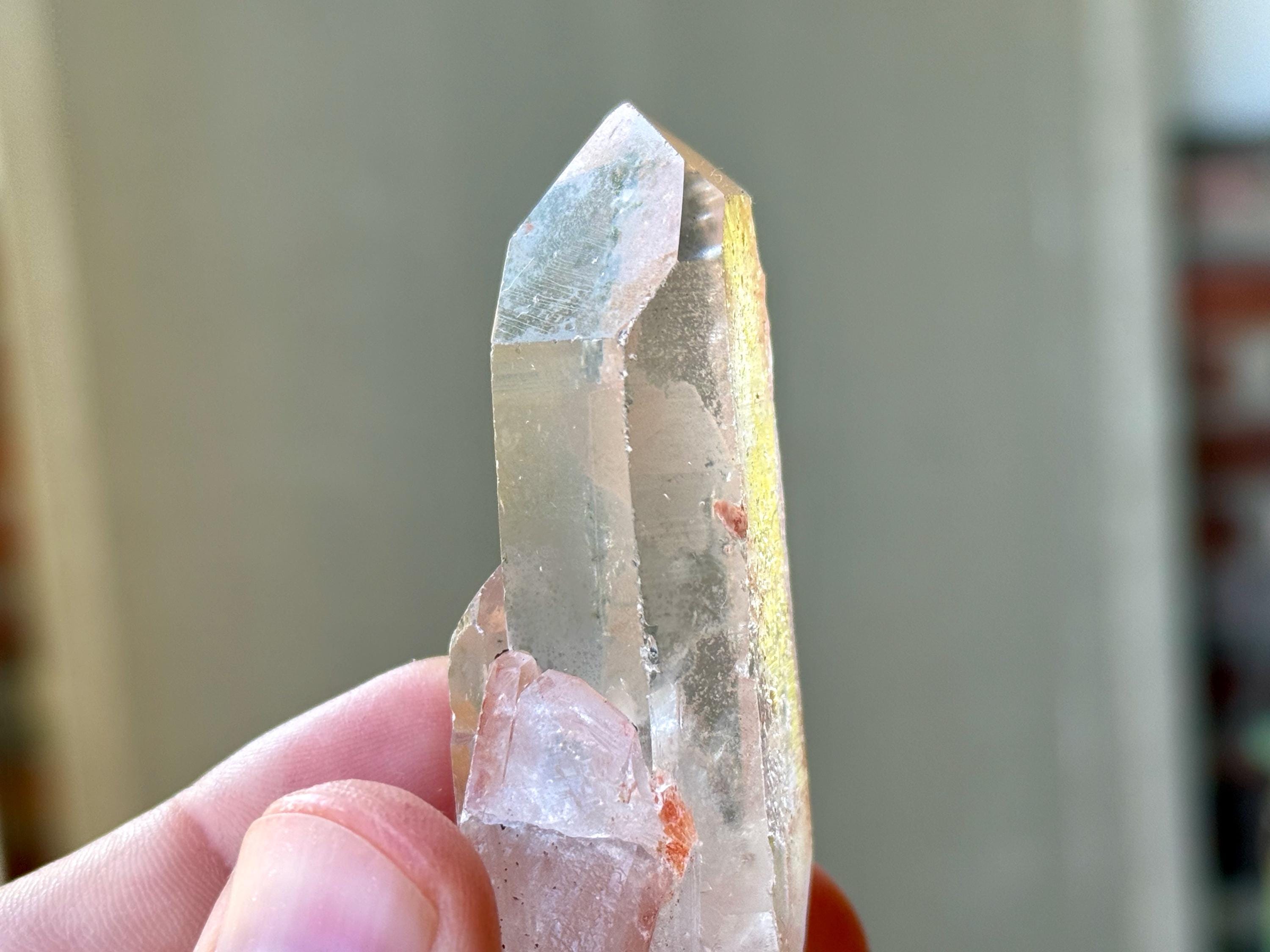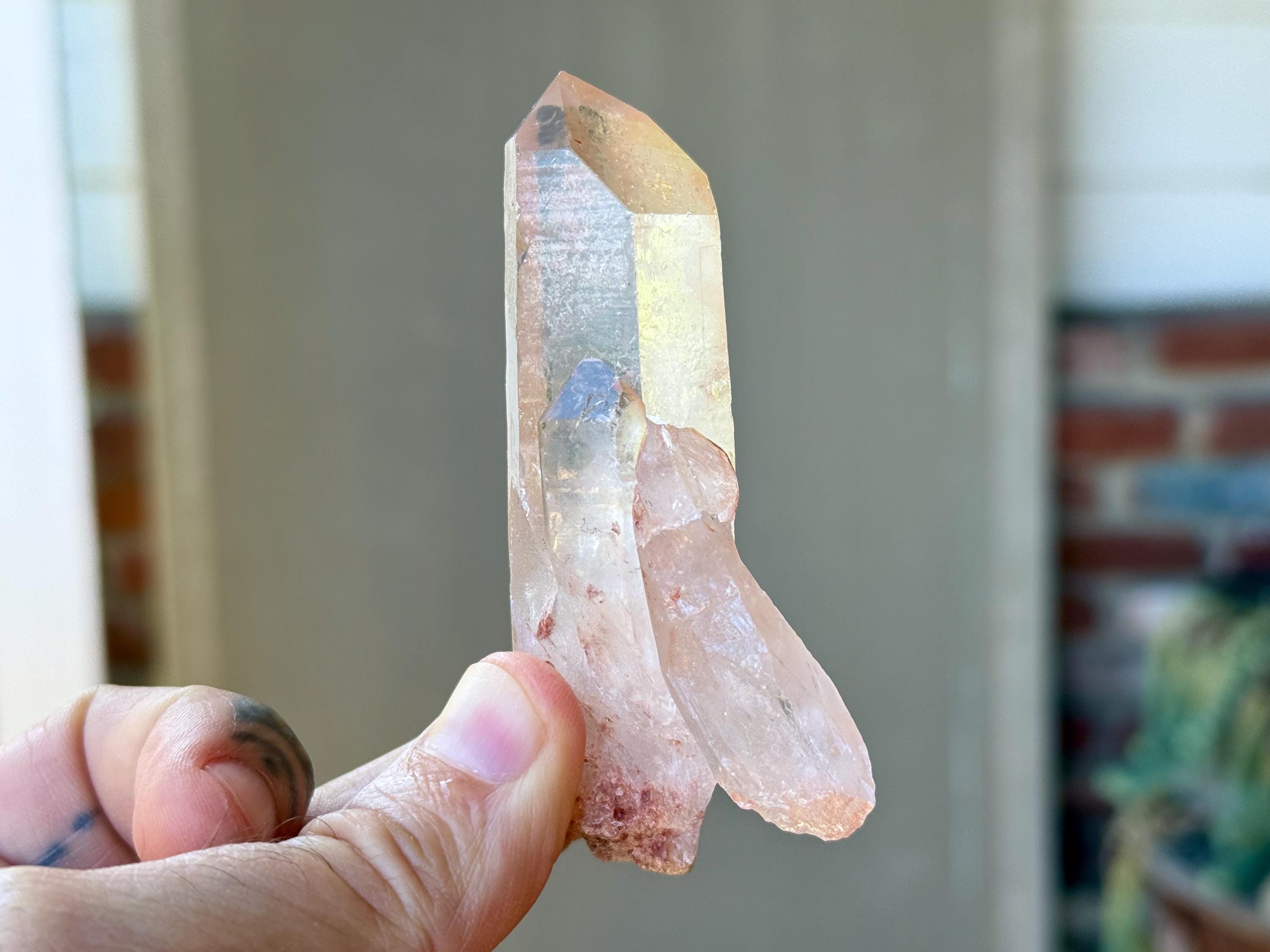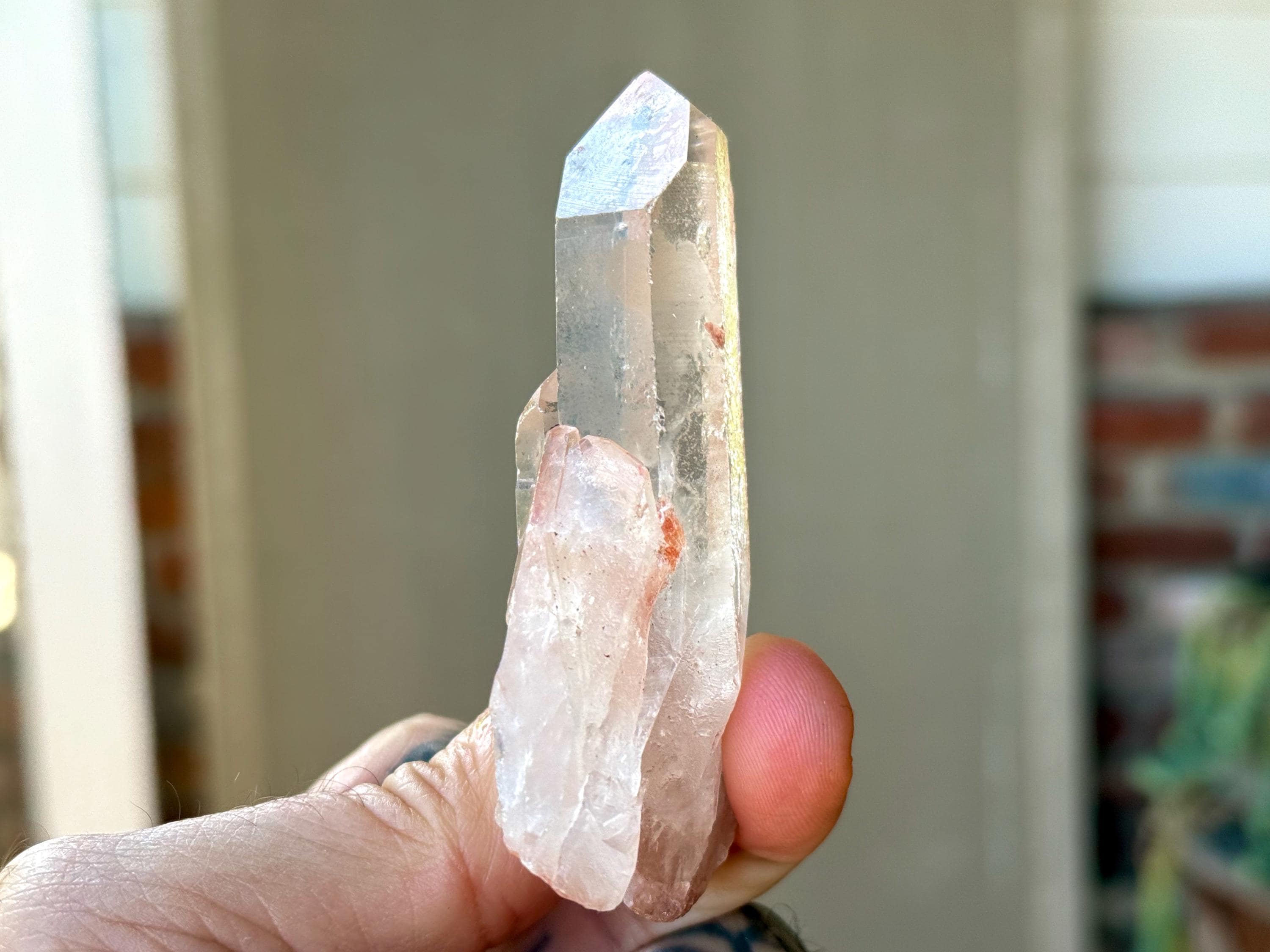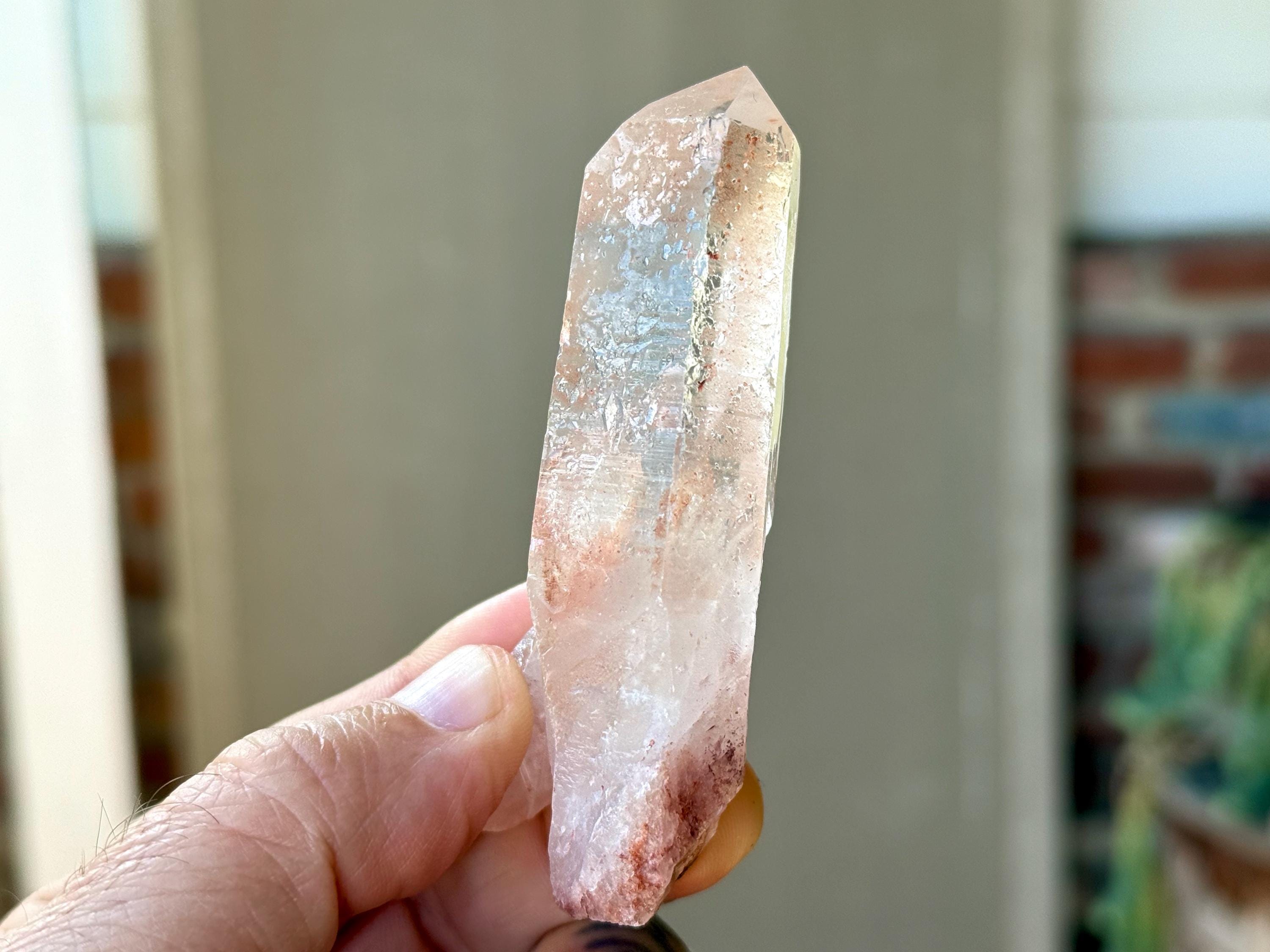Superb clarity and luster to this lovely Pink Lemurian Quartz crystal with just a very mild tinge of pinkish hue.