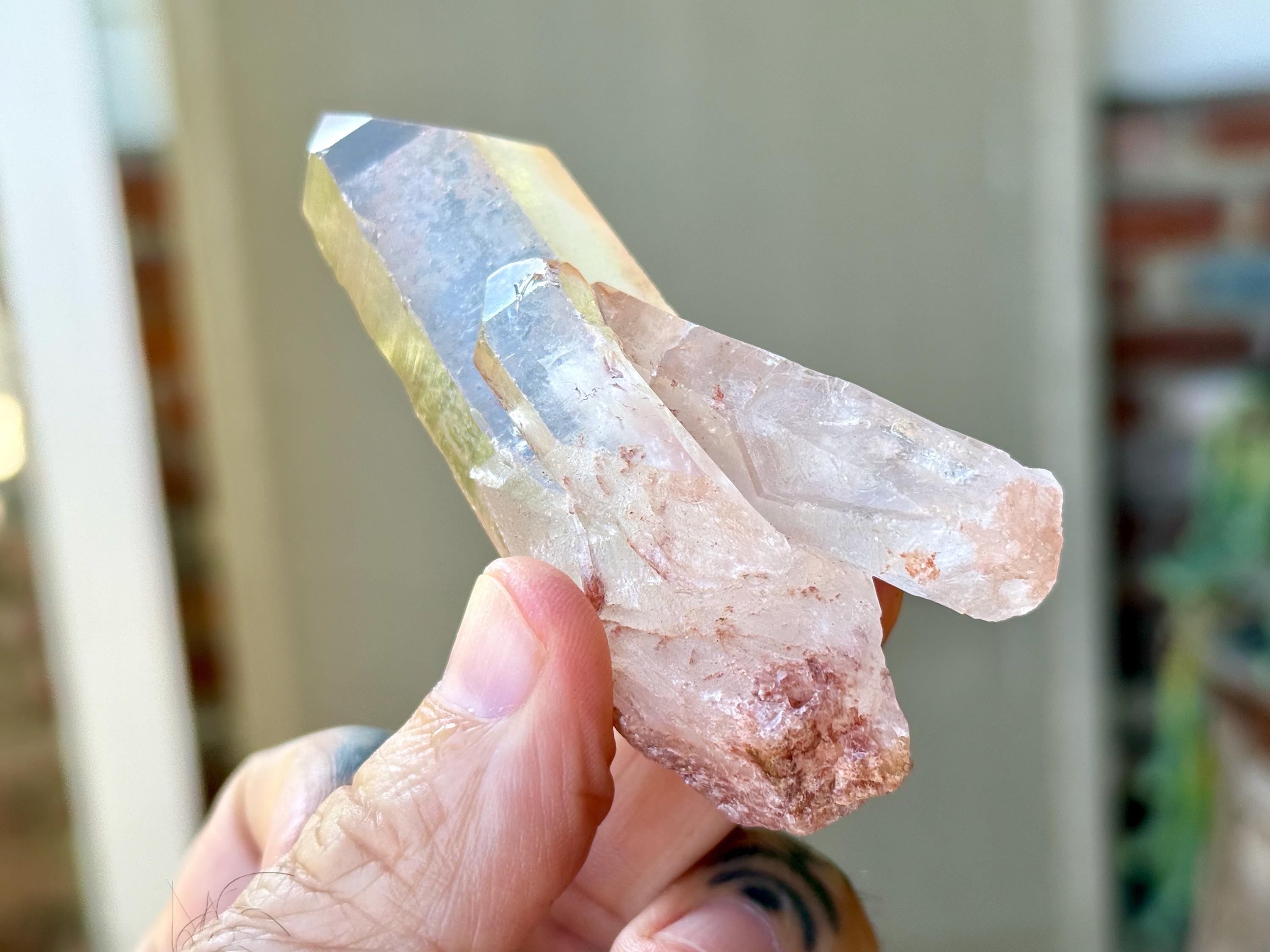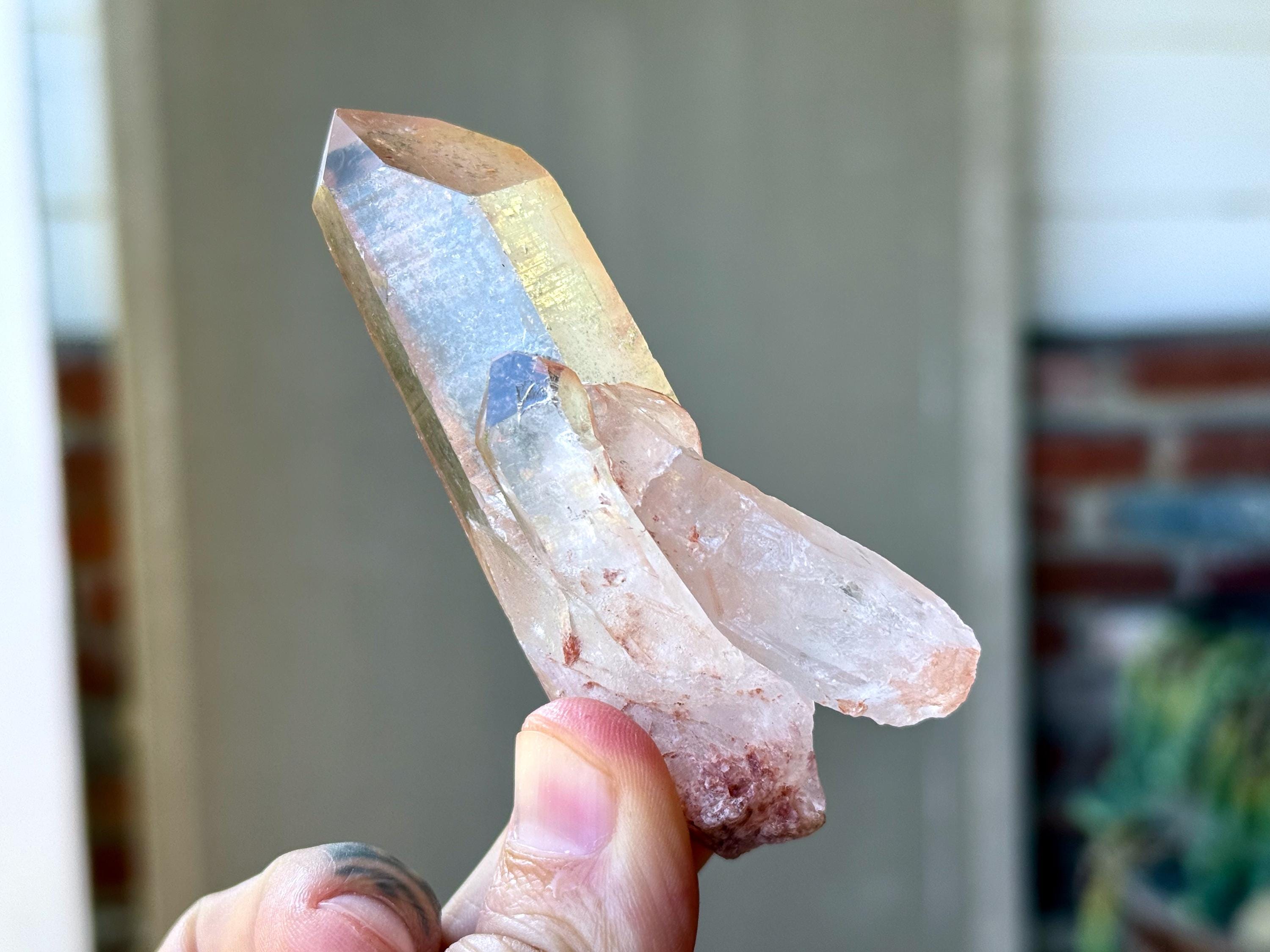 The crystals from this find possess wonderful hues that are somewhere between pink and tangerine, the result of Hematite inclusion. Energetically they feel like a hybrid between Pink Lemurians and Tangerine Lemurians, with a powerful resonance to the Crown, Heart and Solar Plexus chakras, and an uplifting and active energy.
