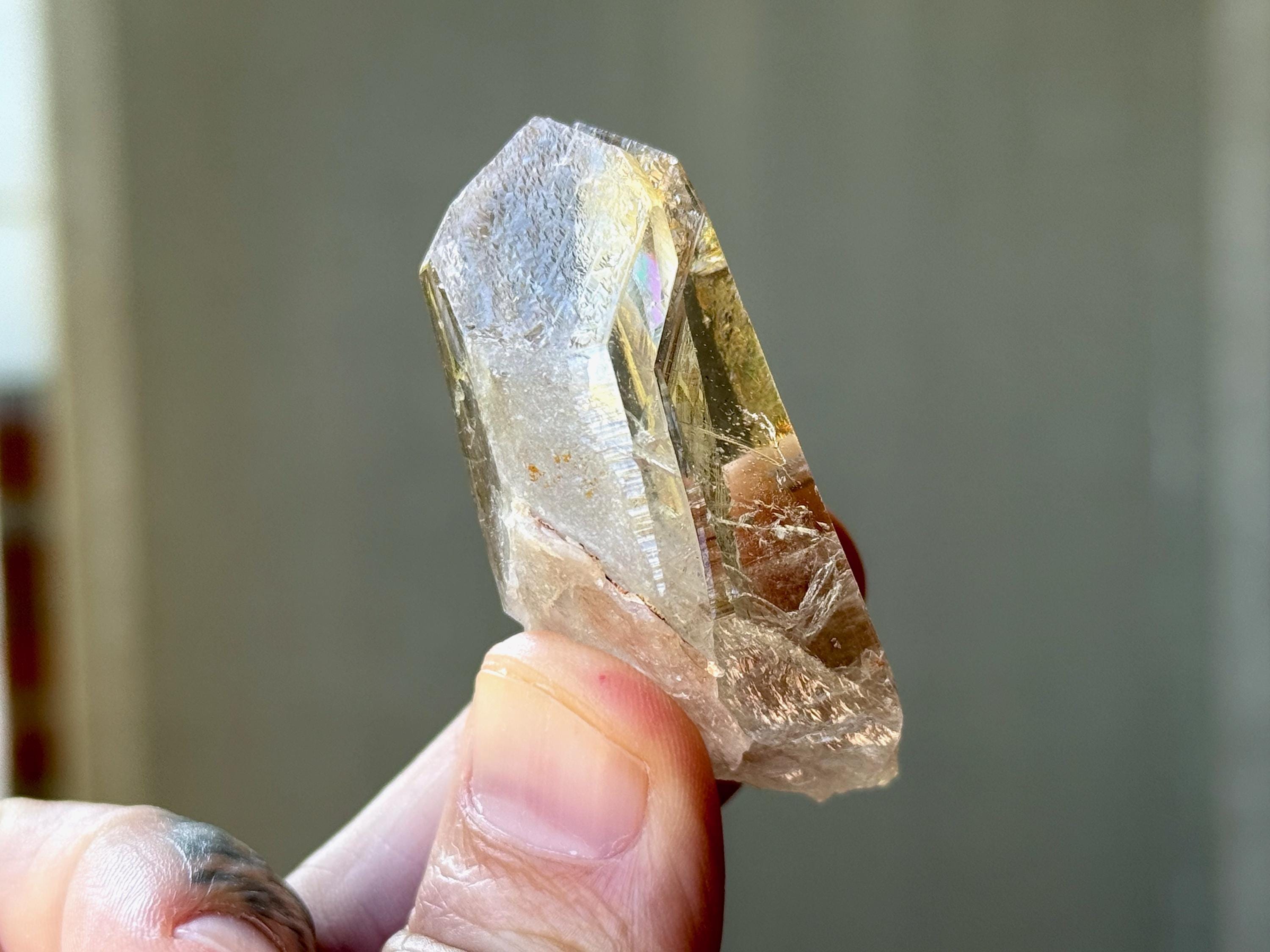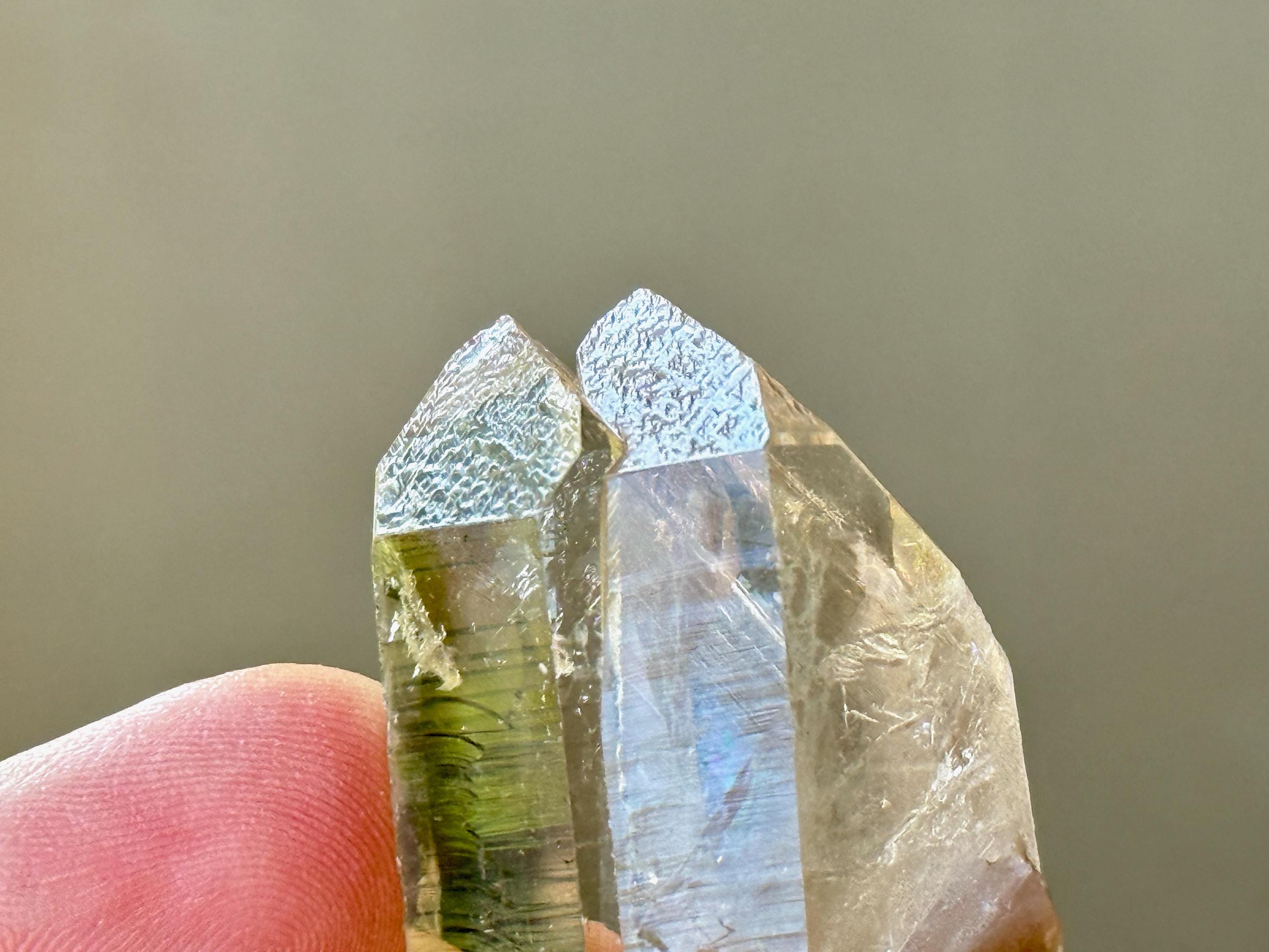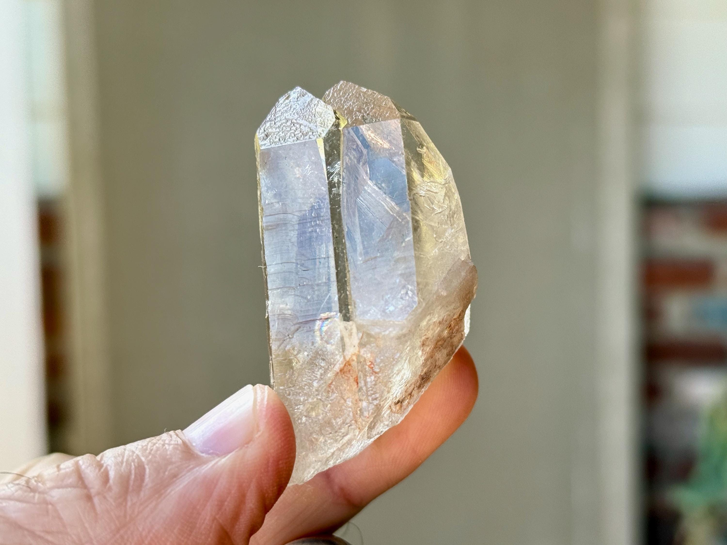 This piece features one of the most unique formations we've seen from this collection, a Tantric Twin where one crystal is partially embedded within the other. It's so beautiful and symbolic, and there are also some flashy contact rainbows in the areas where the crystals join together.