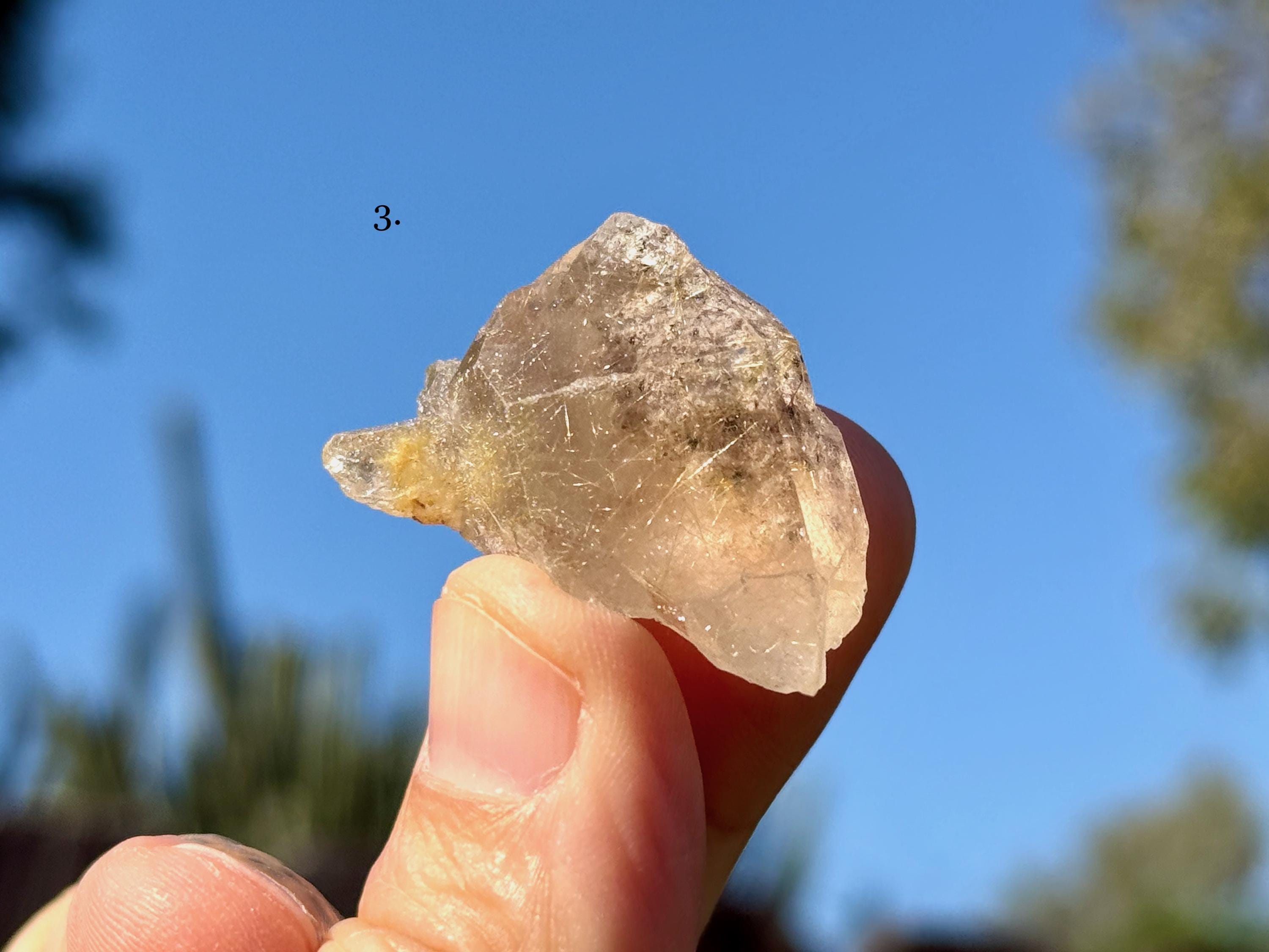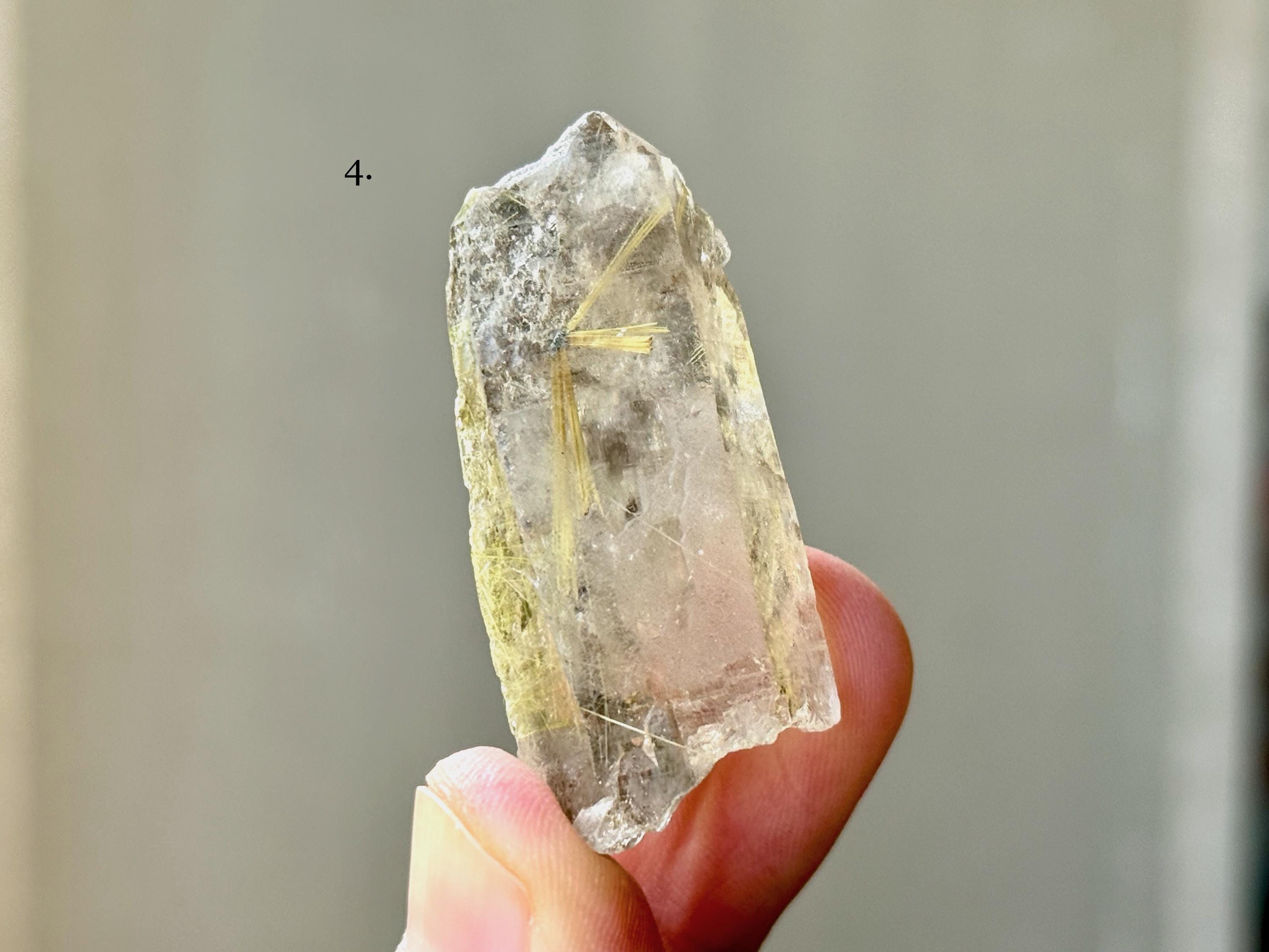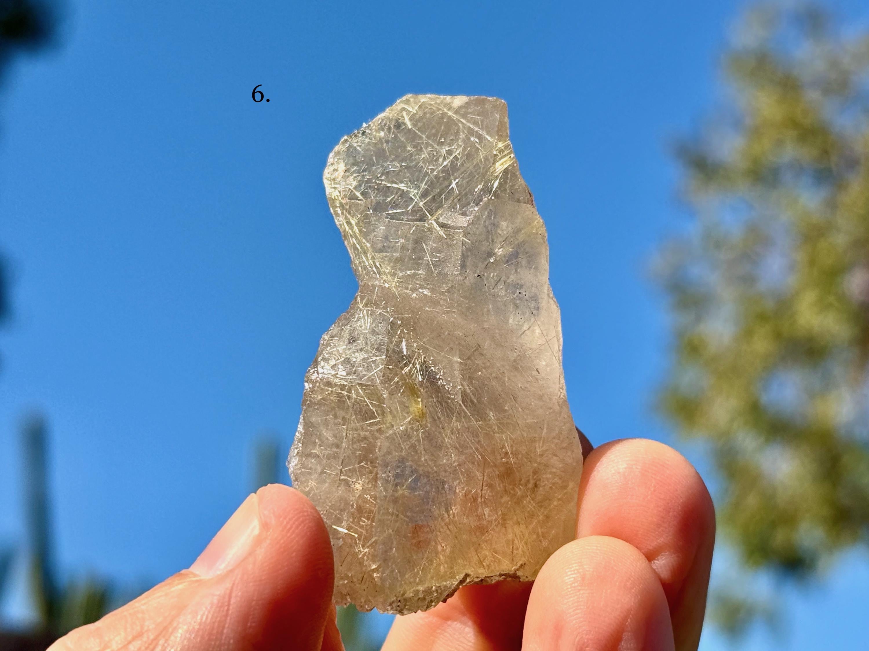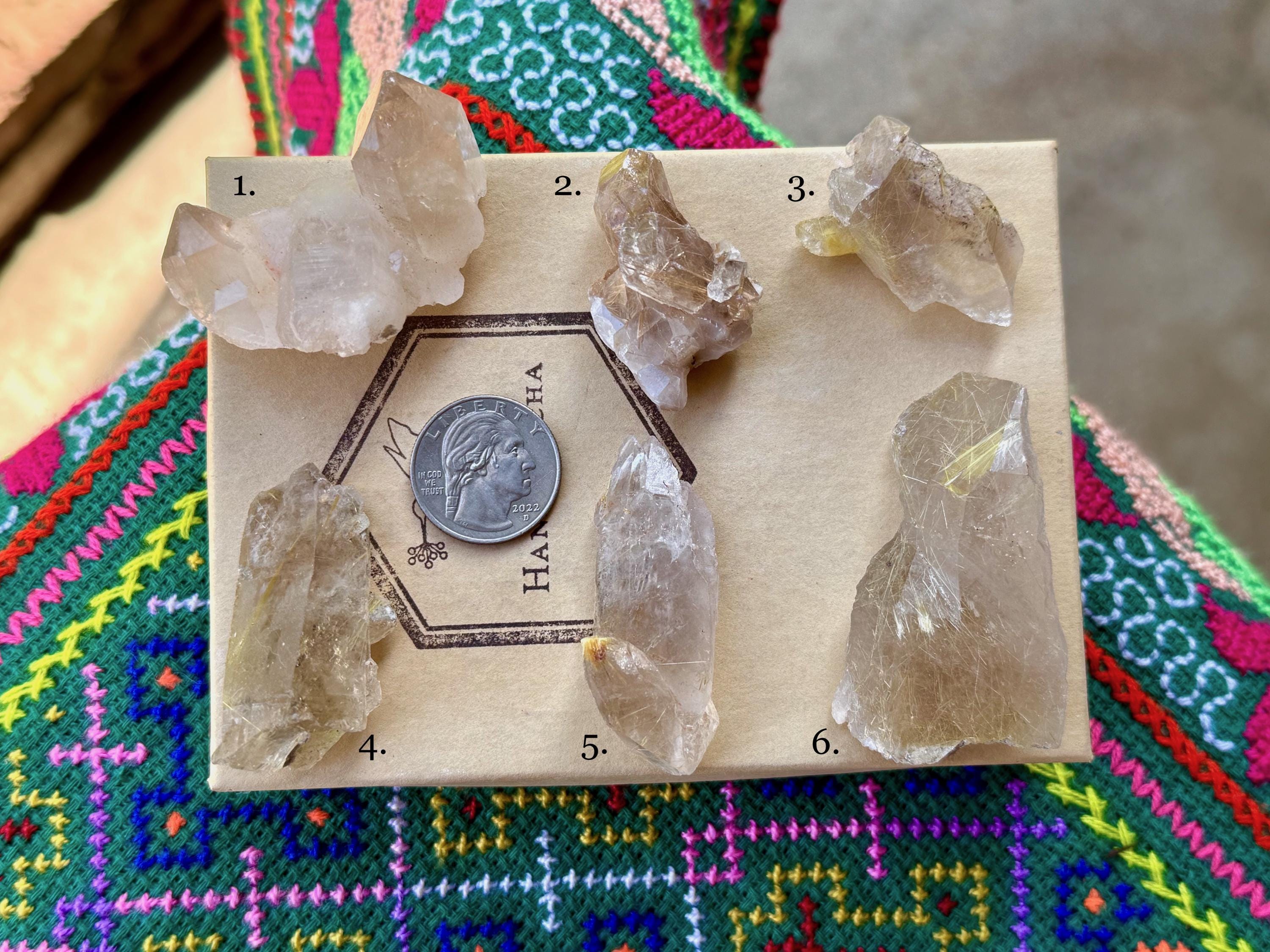 These Golden Rutile Quartz crystals come from the Novo Horizonte region of Bahia, Brazil. Each selection is numbered, simply select your preference(s) from the dropdown menu.