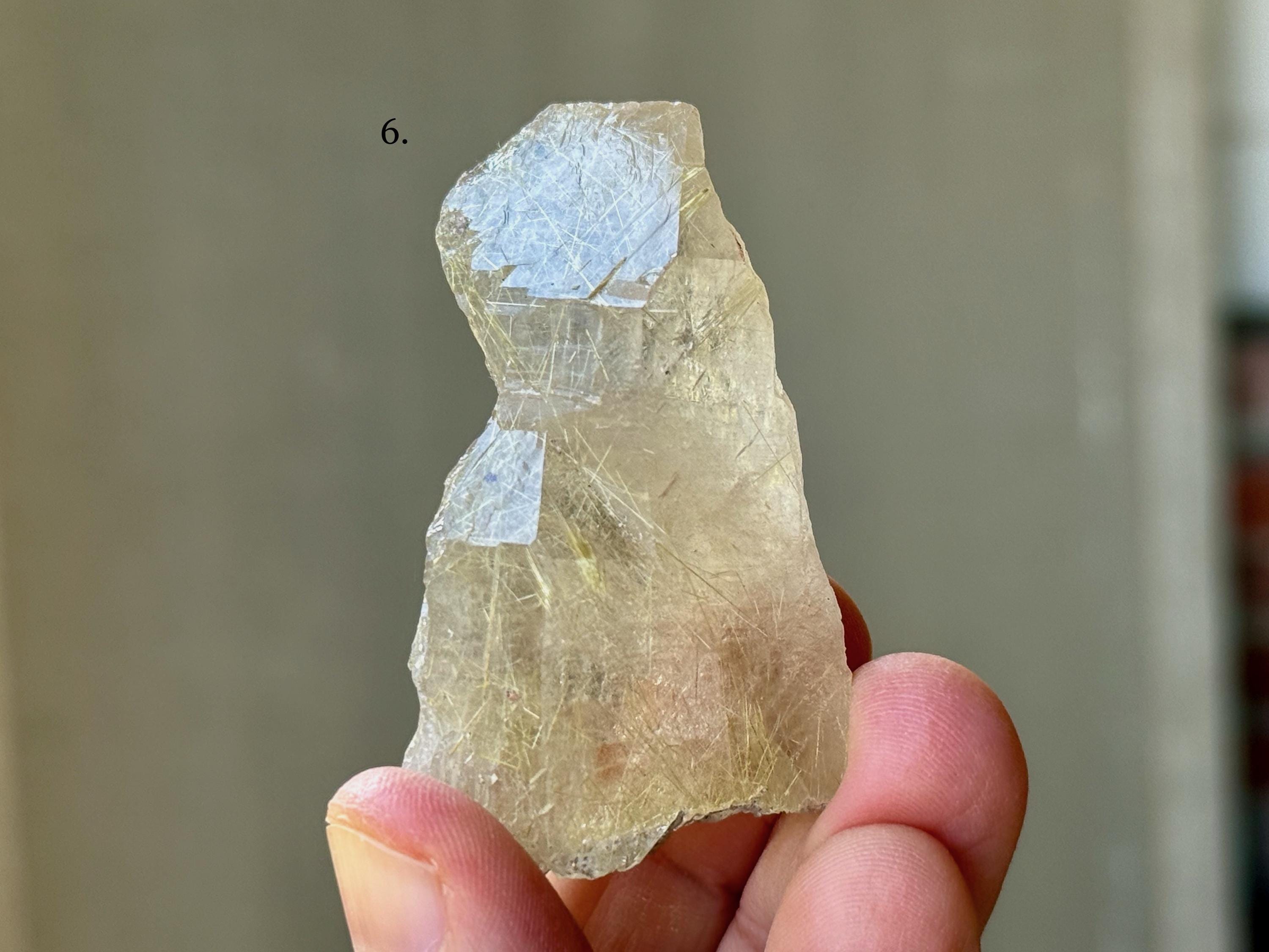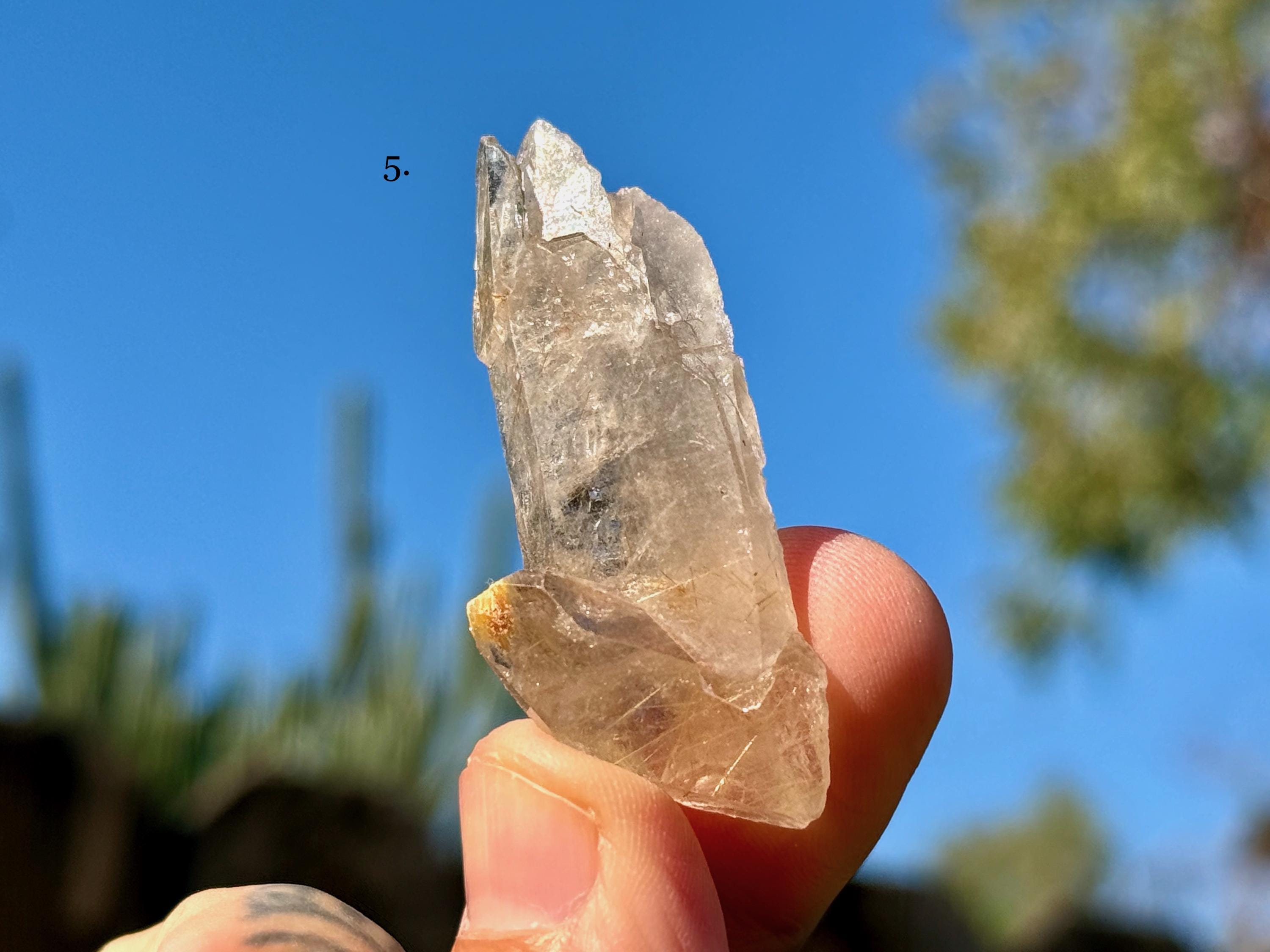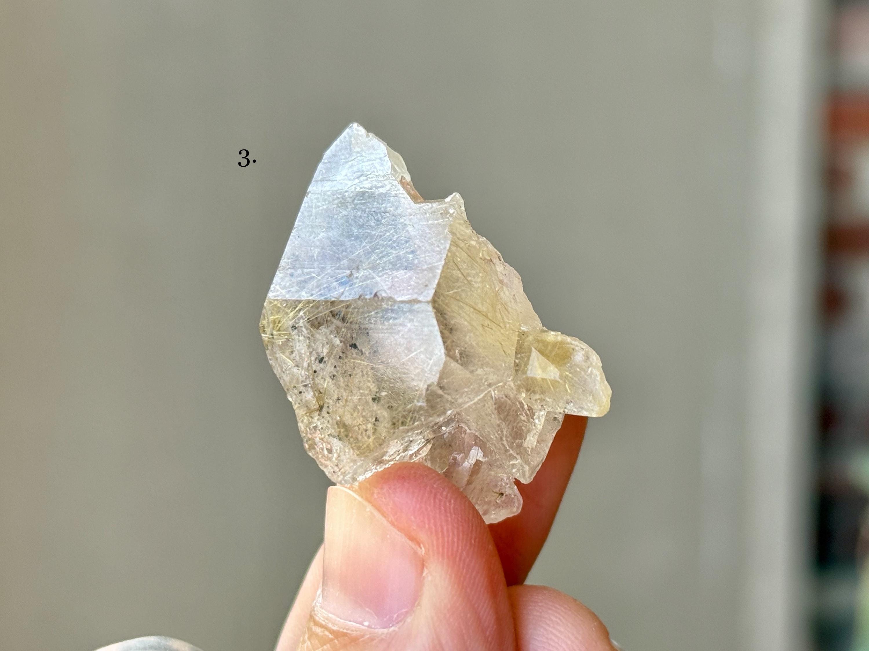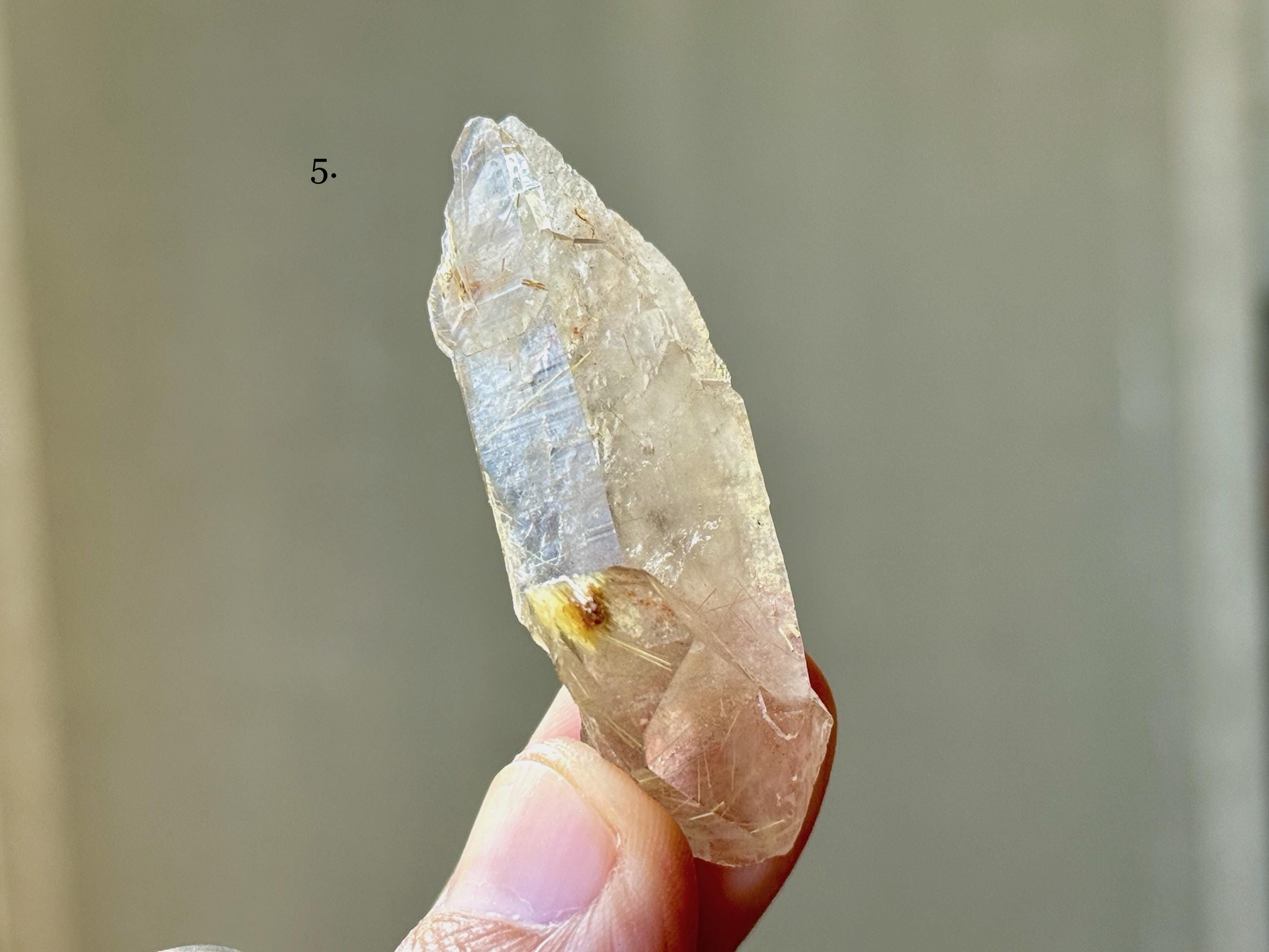 These Golden Rutile Quartz crystals come from the Novo Horizonte region of Bahia, Brazil. Each selection is numbered, simply select your preference(s) from the dropdown menu.