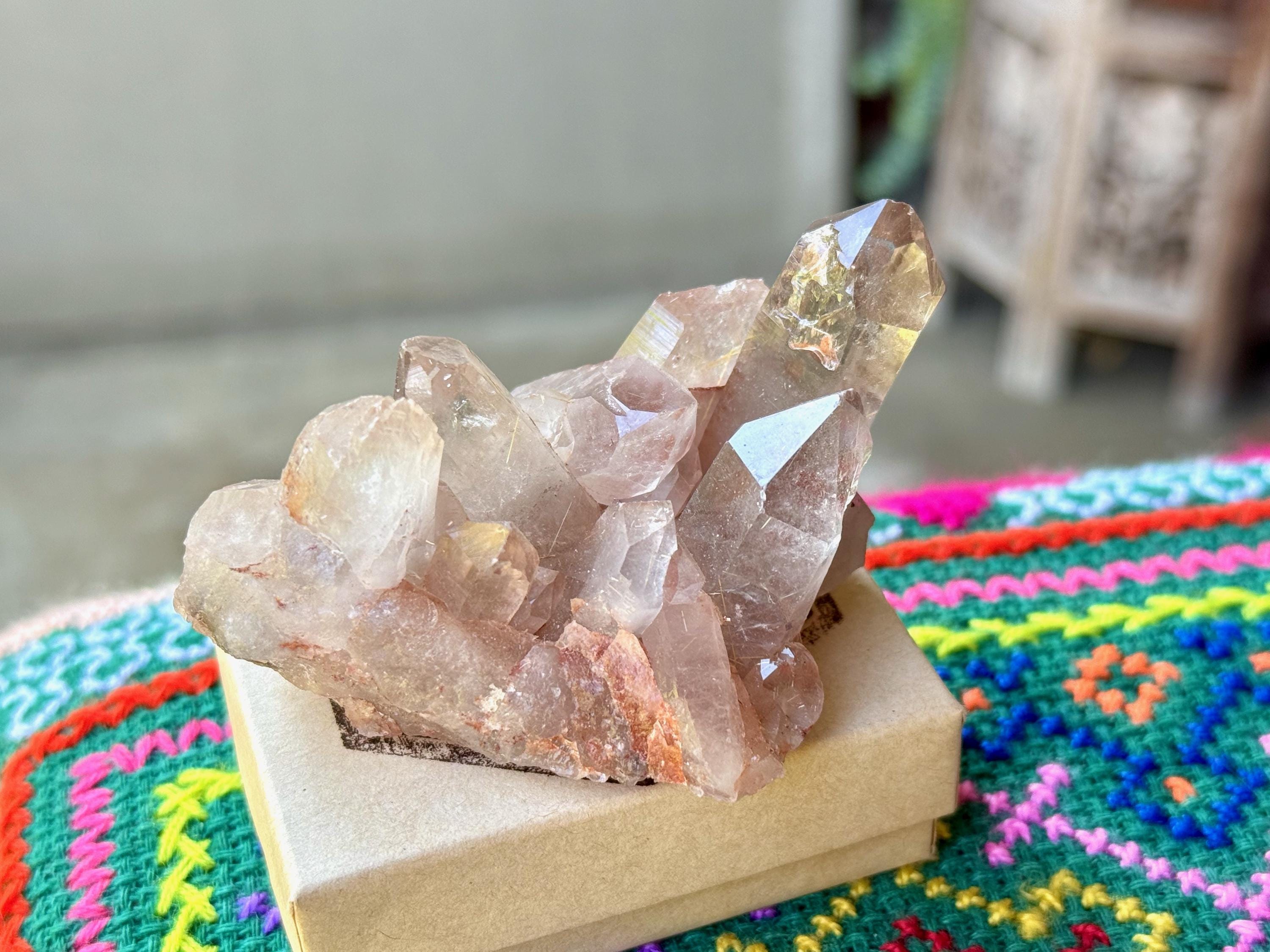 Cluster formations serve to bring the “group” energy of the associated crystal to the surroundings, enhancing harmony and peace in groups, in the family, and in other social and/or business environments. The energy generated is directly proportional to the number of crystals in the cluster. The auric light that surrounds a Quartz cluster is very bright and strong, and will bathe an entire area or room in radiance. They can also be used to activate and to cleanse other minerals, enhancing and increasing their energy. They can be placed in areas to purify the environment of negative energies and feelings, and to foster protection, cooperation, purification, harmony, friendship and intimacy.