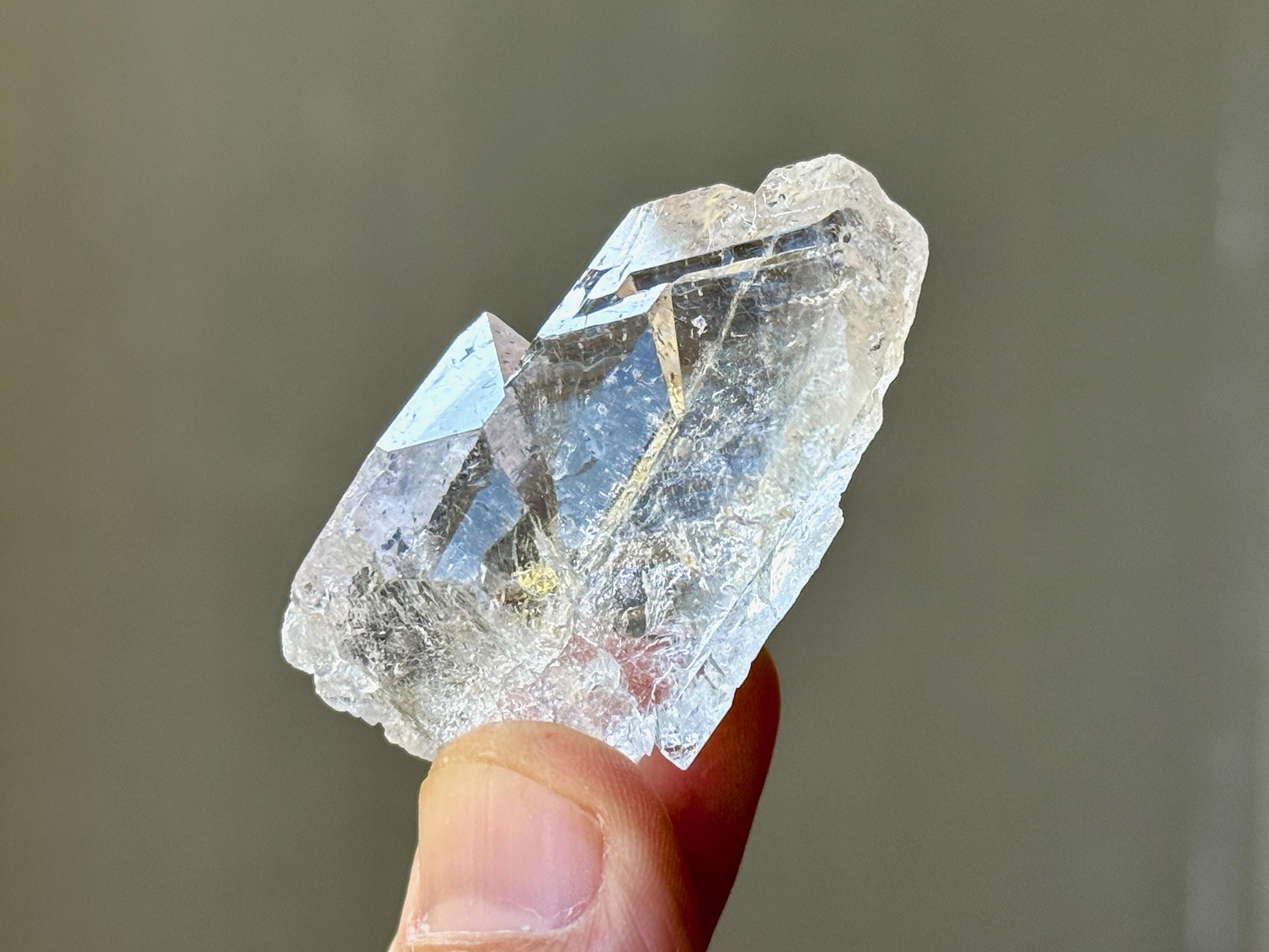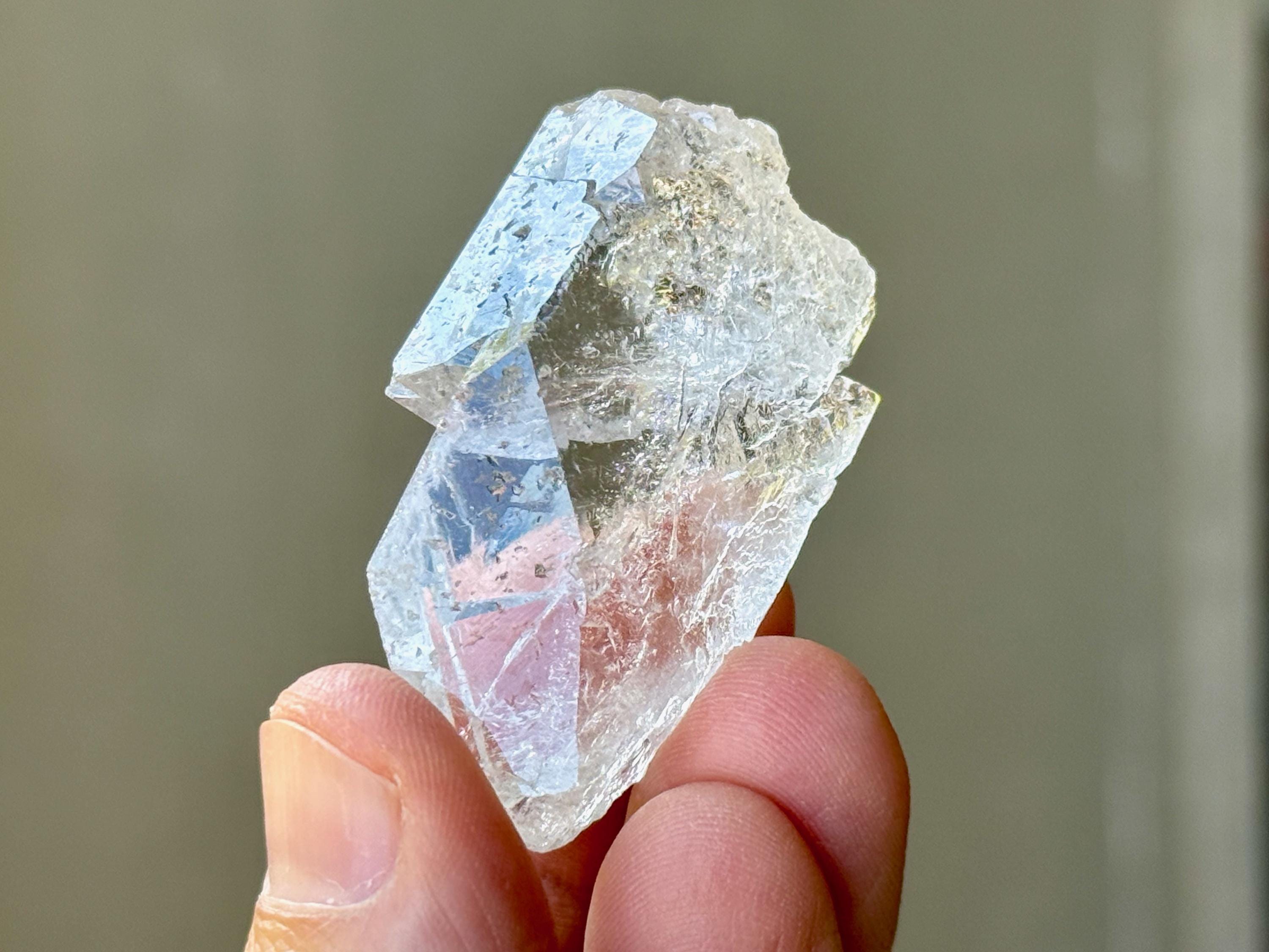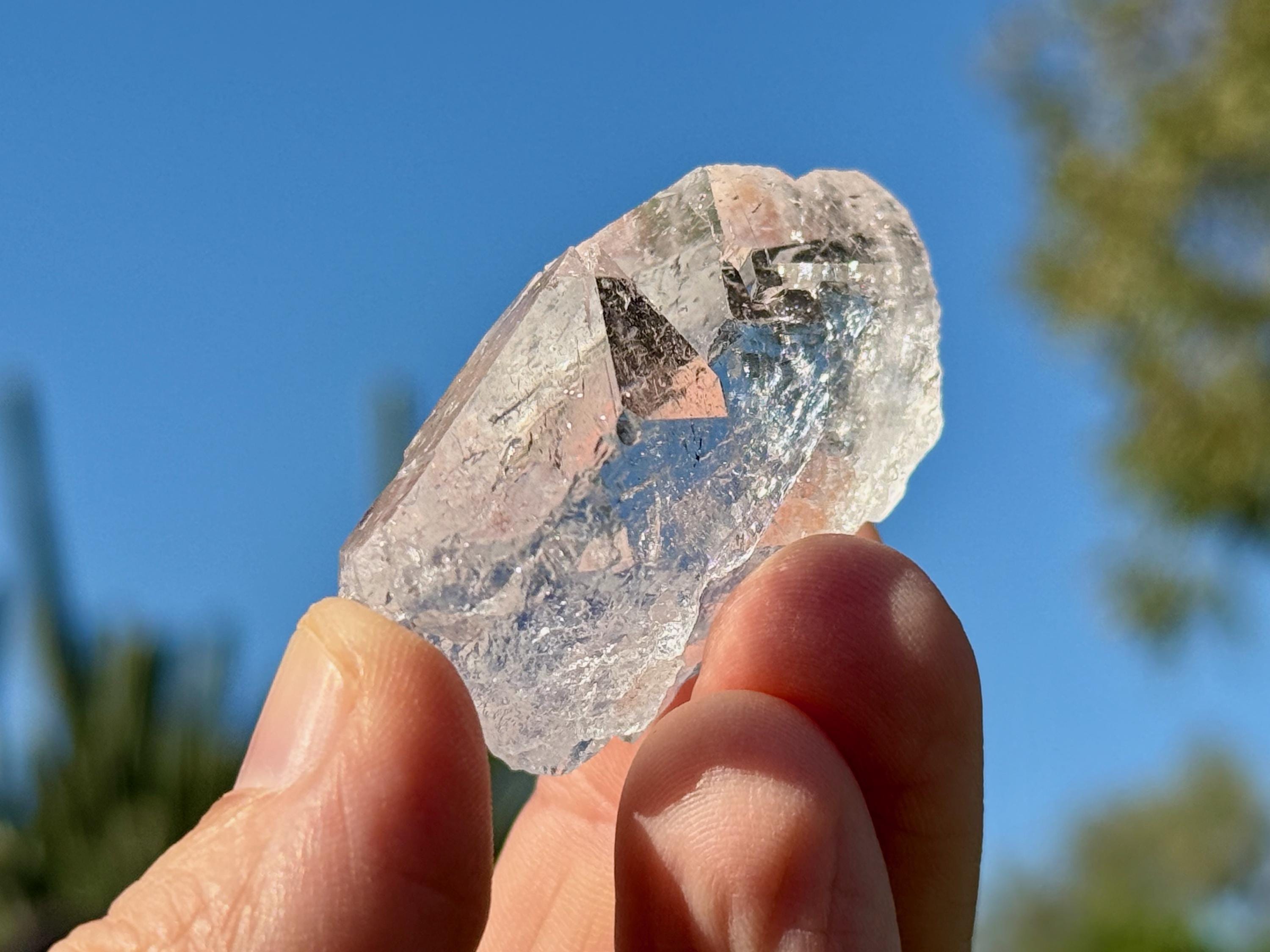 Outstanding quality to this sublime Cathedral Ice Quartz with brilliant luster and water-clear clarity. This crystal exhibits characteristics of both Ice Quartz and Cathedral Quartz, with both mild "cathedral" and "dissolution" textures. It is also a "tabby" or Tabular formation with its broad and somewhat flat form.