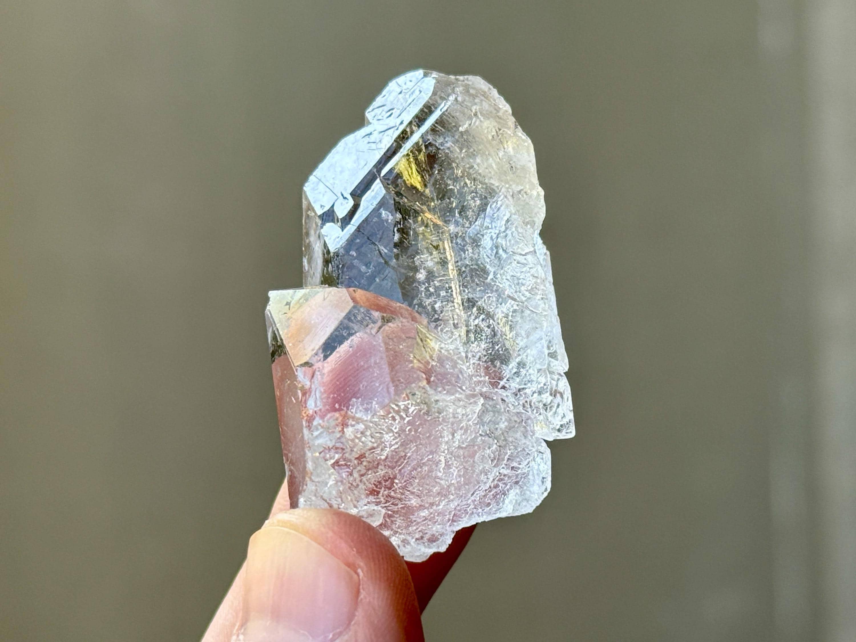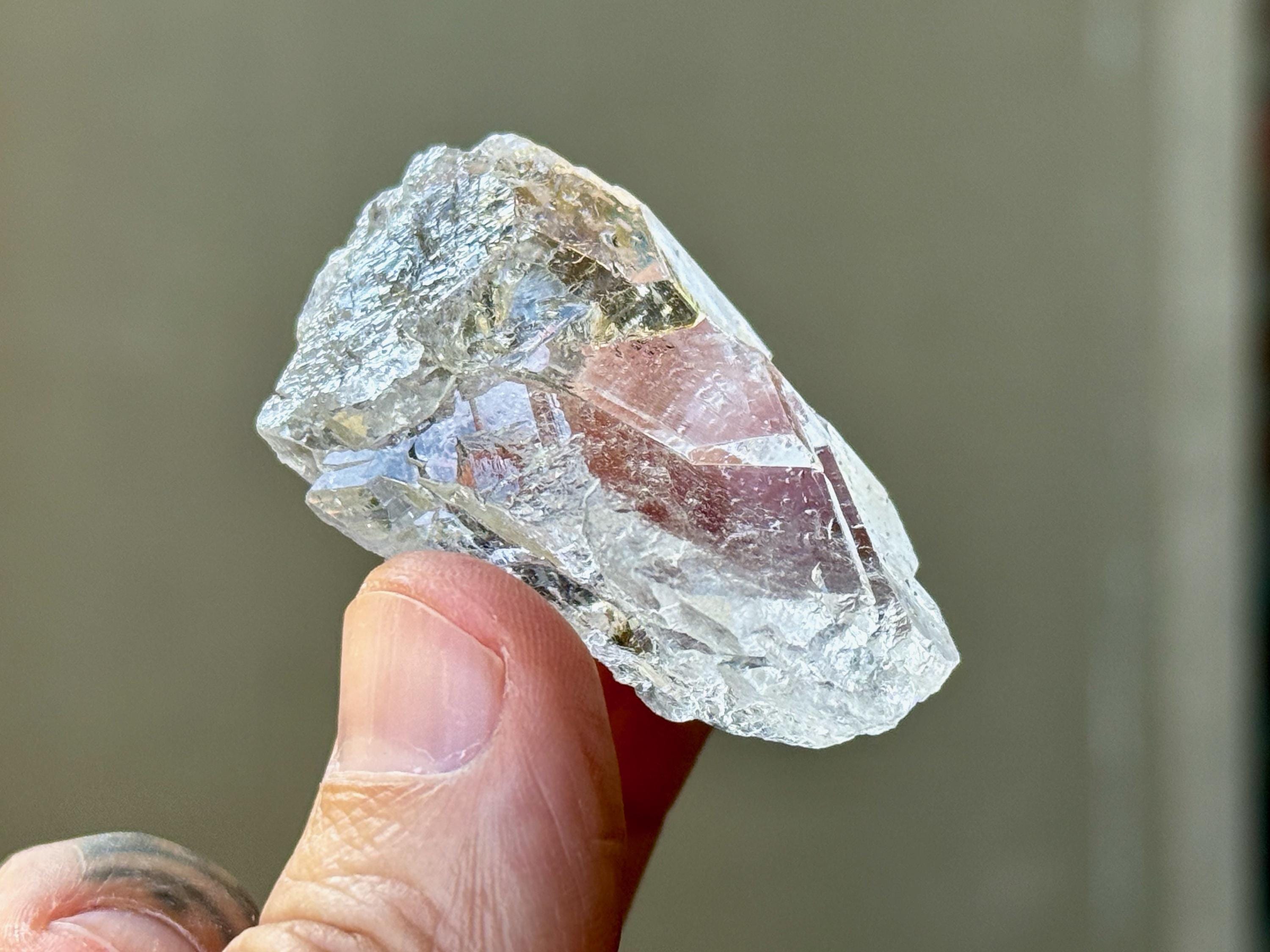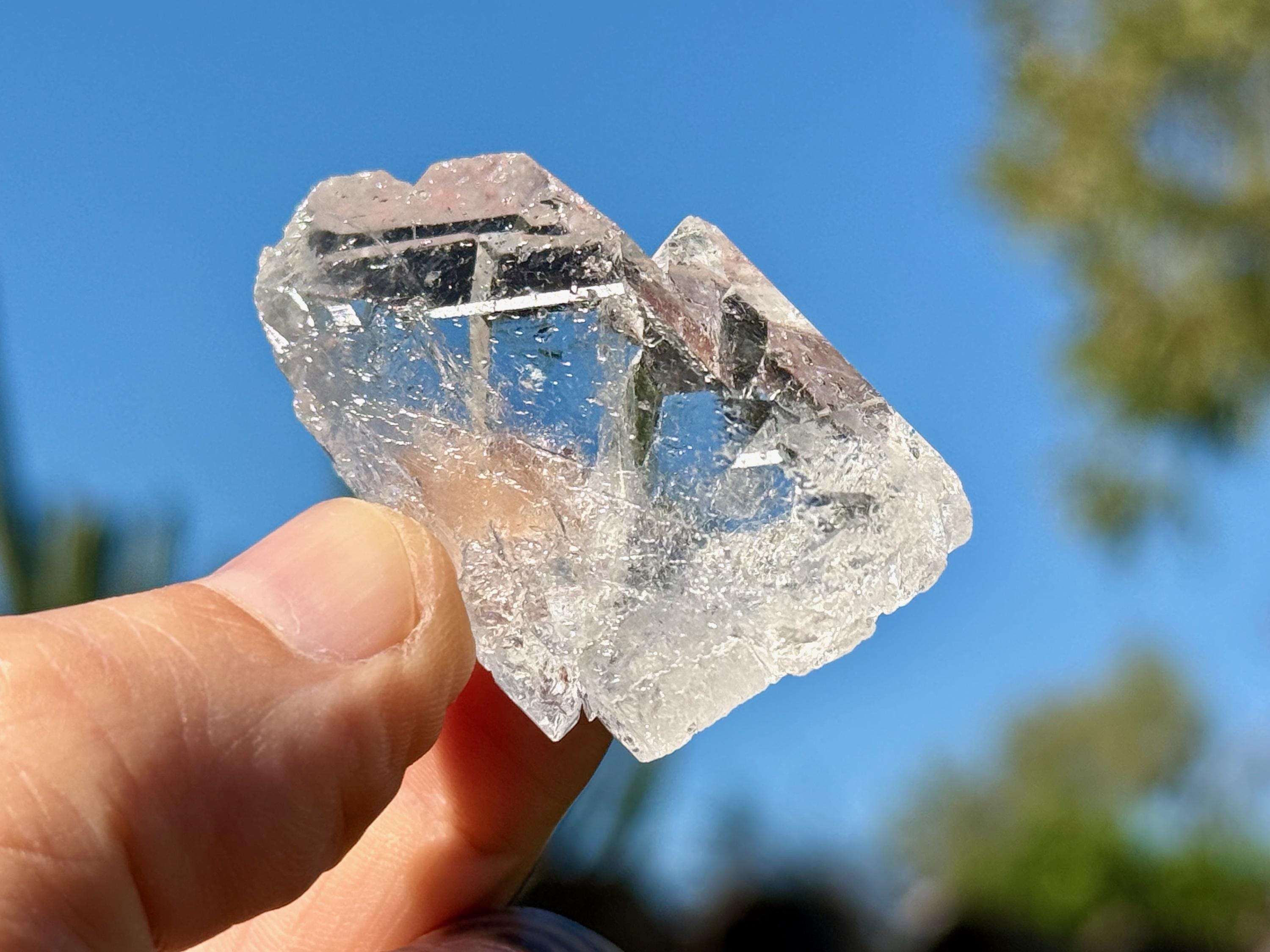 Outstanding quality to this sublime Cathedral Ice Quartz with brilliant luster and water-clear clarity. This crystal exhibits characteristics of both Ice Quartz and Cathedral Quartz, with both mild "cathedral" and "dissolution" textures. It is also a "tabby" or Tabular formation with its broad and somewhat flat form.