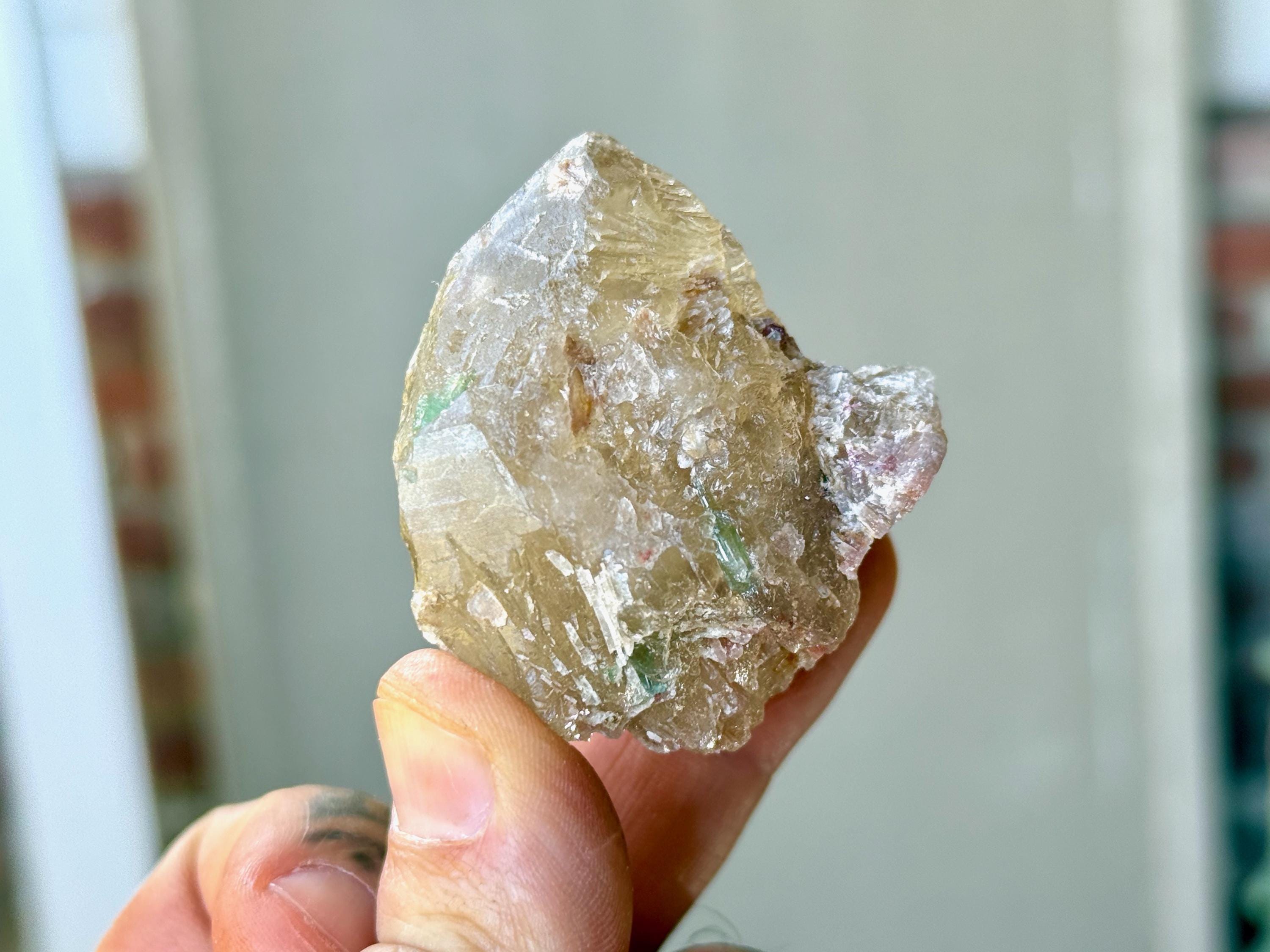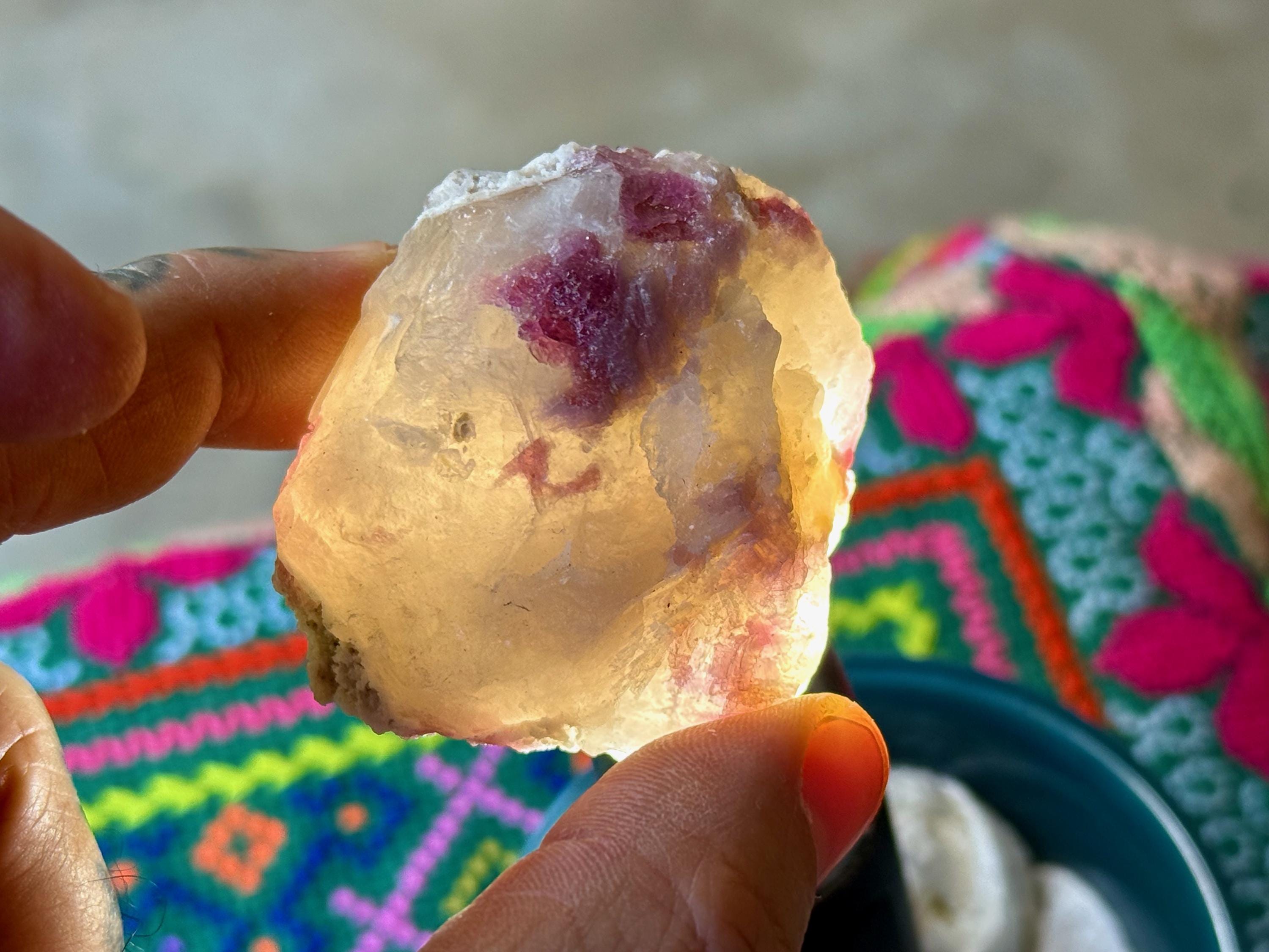A beautiful lot of Unicorn Stone Quartz featuring vibrant inclusions of Pink & Green Tourmaline, as well as some with Citrine! The color on these is super vibrant and when backlit, we can see just how gemmy and translucent these tourmaline inclusions are.