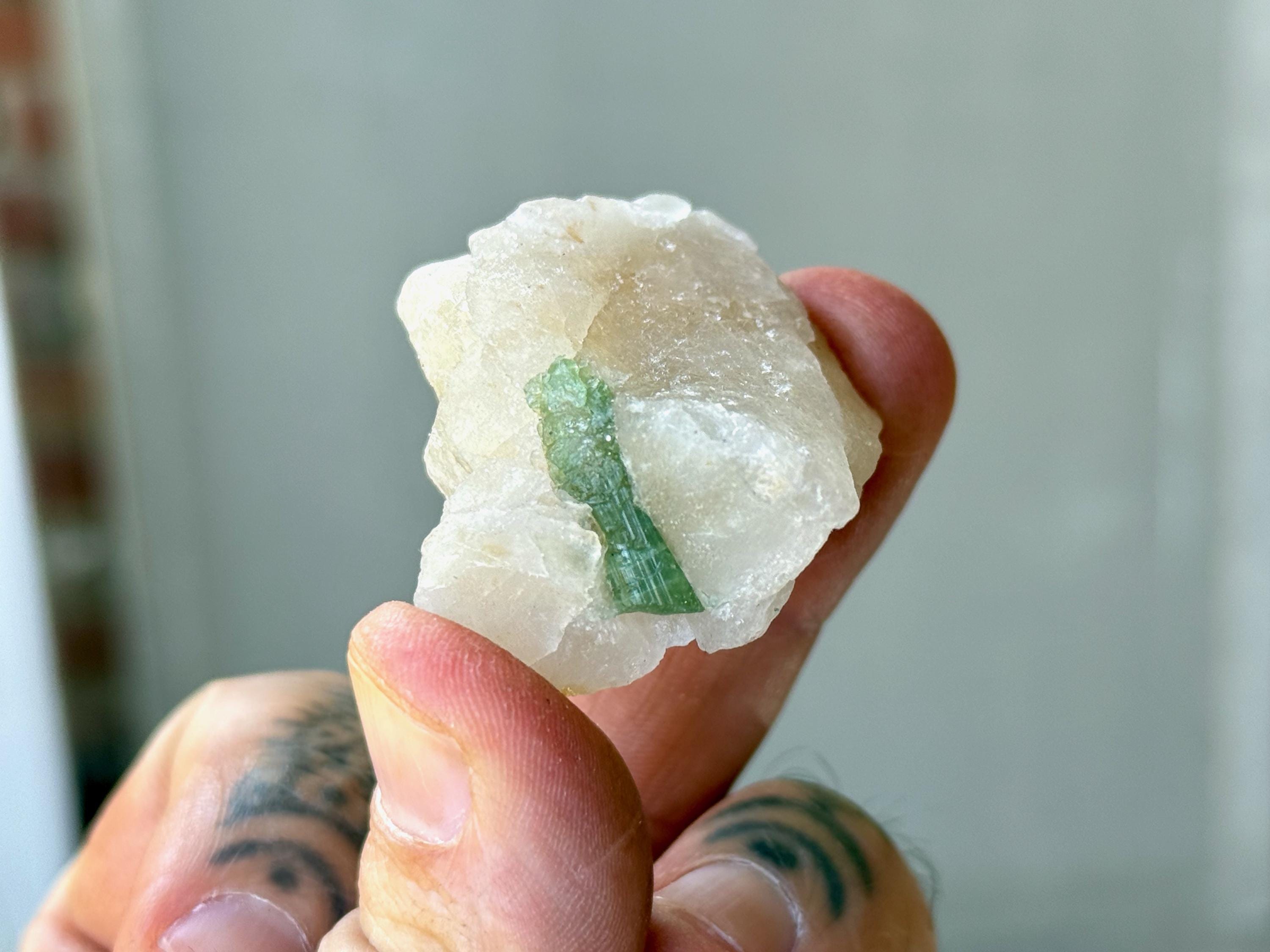 Green Tourmaline purifies and strengthens, allowing one to energetically carry greater amounts of Life Force (Prana Energy). As more energy is carried within the physical body, higher degrees of consciousness can be maintained. It is a wonderful protection stone, deal for sealing holes in the aura that leave one vulnerable to negativity.