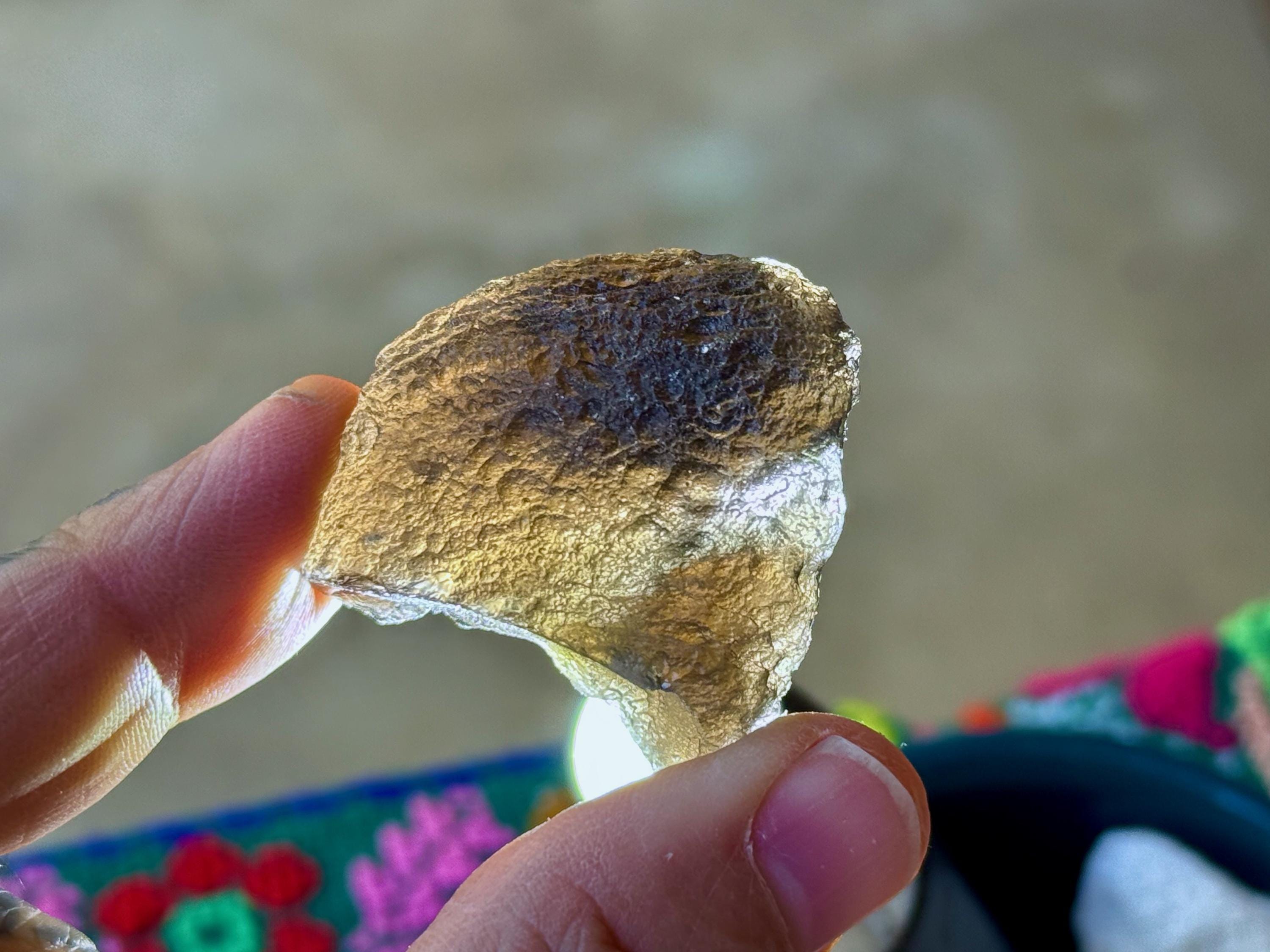 These stones most closely resemble Cintamani stones, with their charcoal gray coloring and pitted markings, as well as their ability to pass light in many cases (translucency). As far as their origin and composition, different sources make different claims. The majority of those familiar with these rare stones attribute their formation to a meteoric impact that resulted in the intense heating of the earth, combining with rare earth elements which led to their creation and thus making them Tektites. Others claim that they were created during a time of massive volcanic eruptions in which magma exploded into the atmosphere and formed volcanic glass that combined with other rare earth minerals (making it a Pseudotektite, like Saffordite).