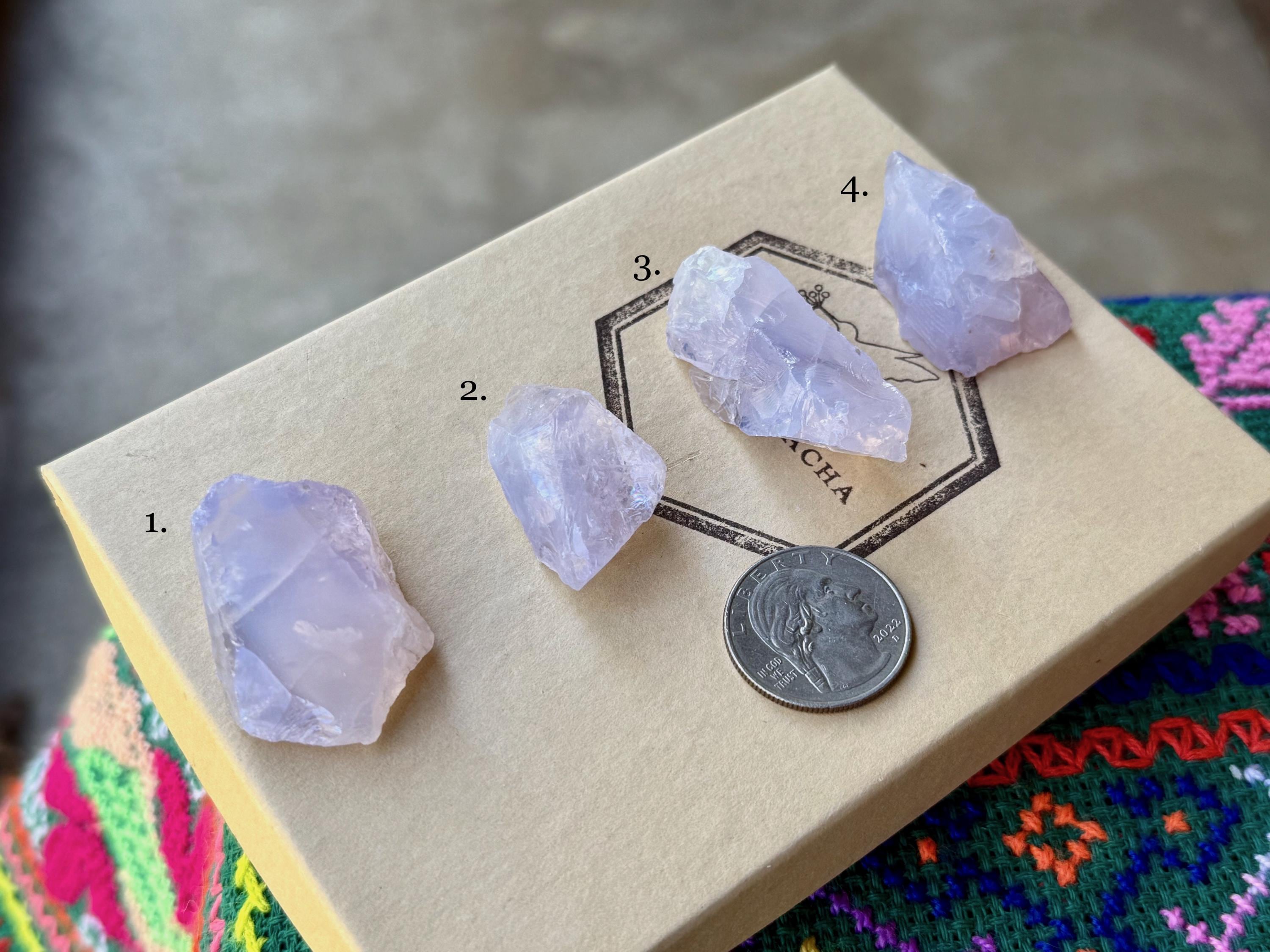 These natural Lavender Moon Quartz come from Medina, Minas Gerais, Brazil. Each selection is numbered, simply select the one(s) you'd like from the dropdown.