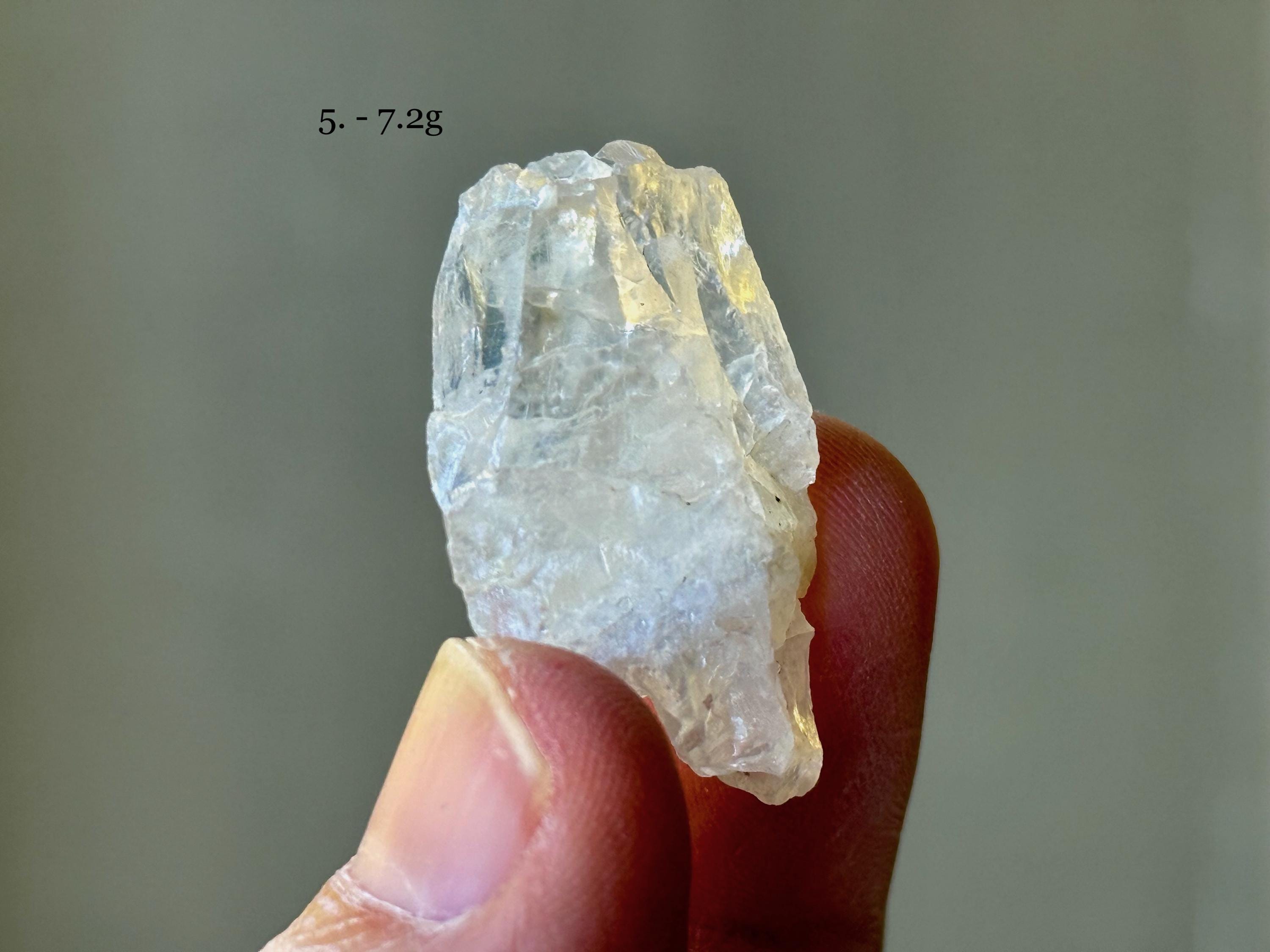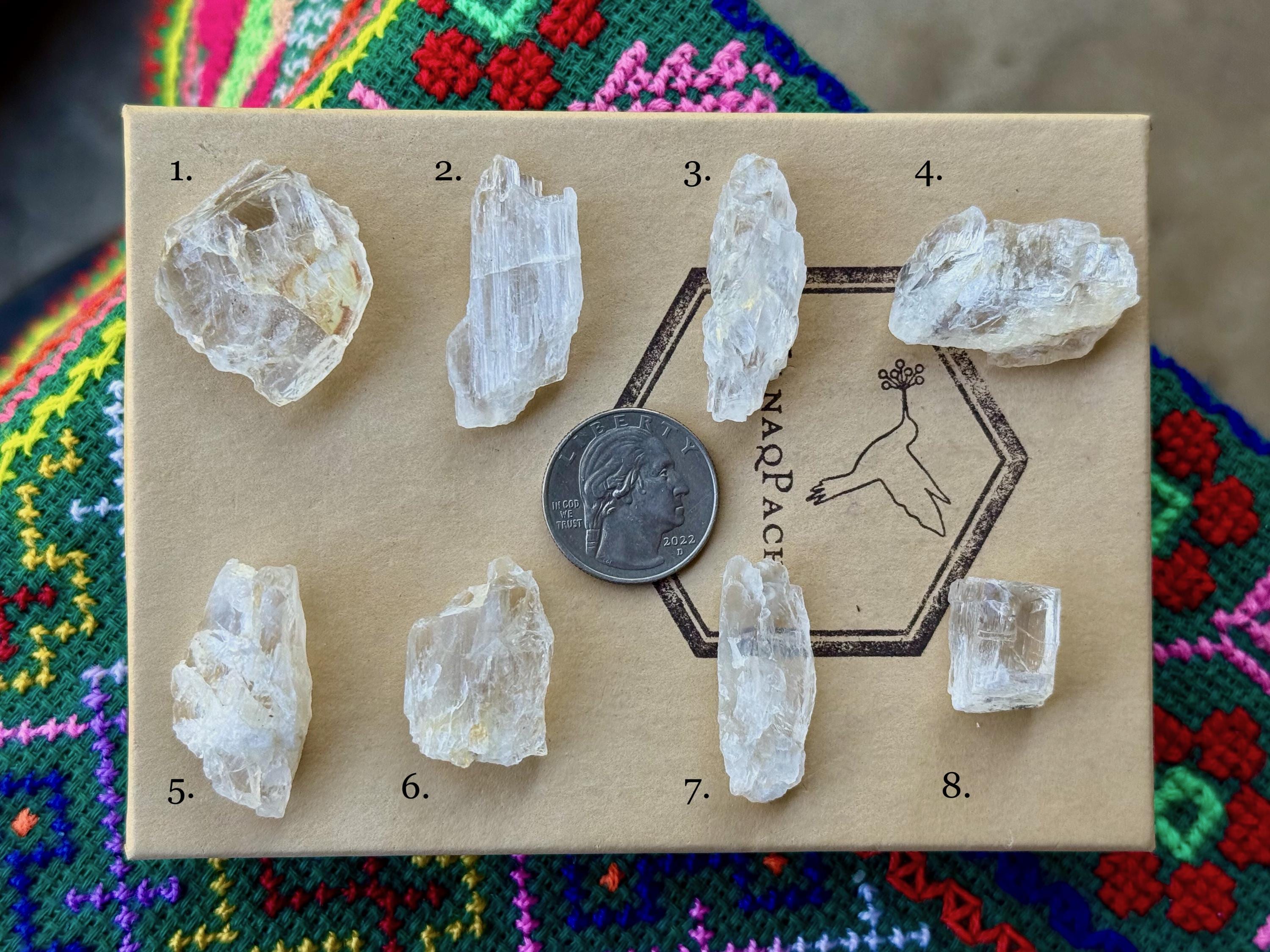 Each crystal is between .75" - 1.5" (2 cm - 4 cm) tall and weighs between 3g - 10g.