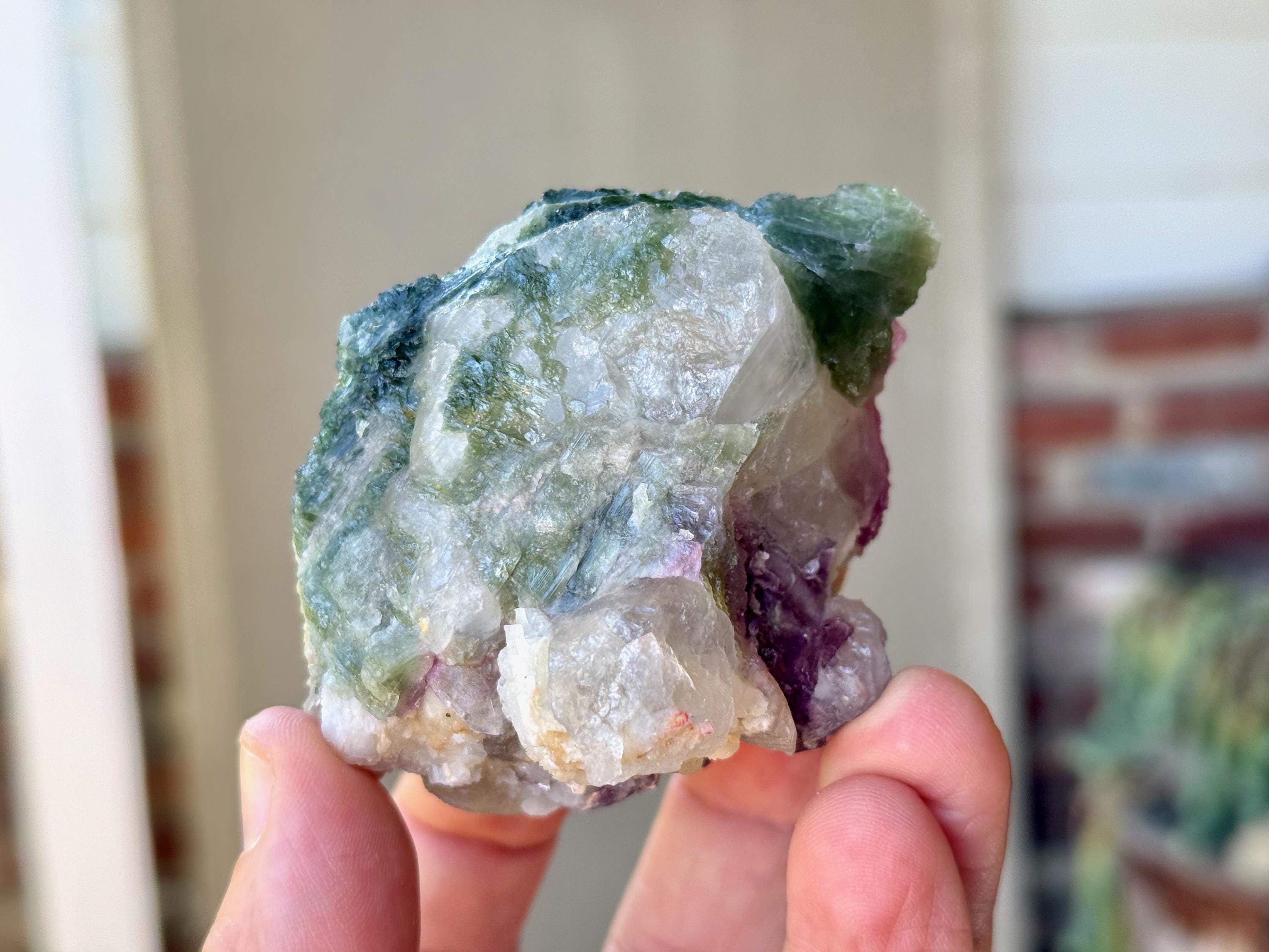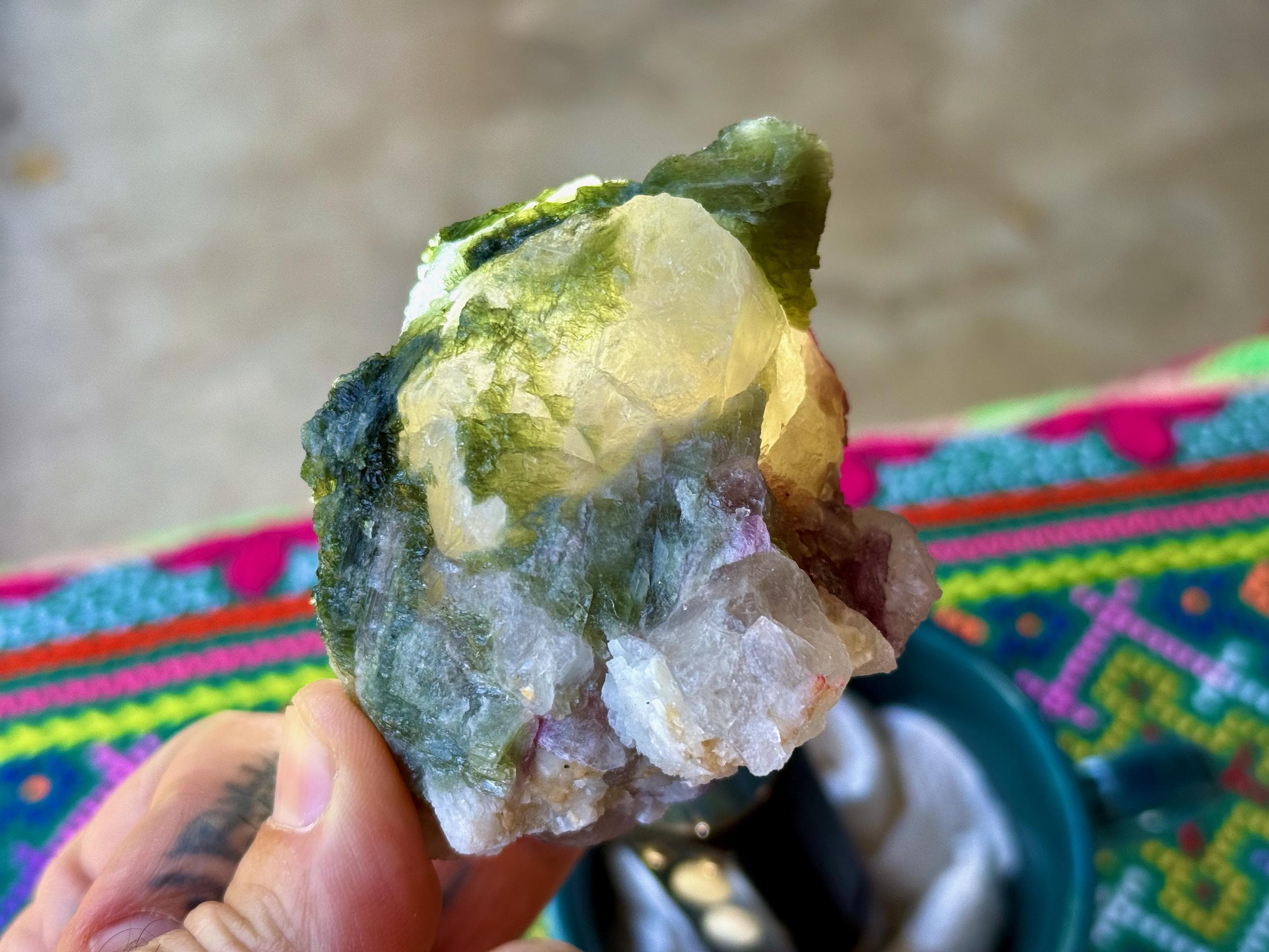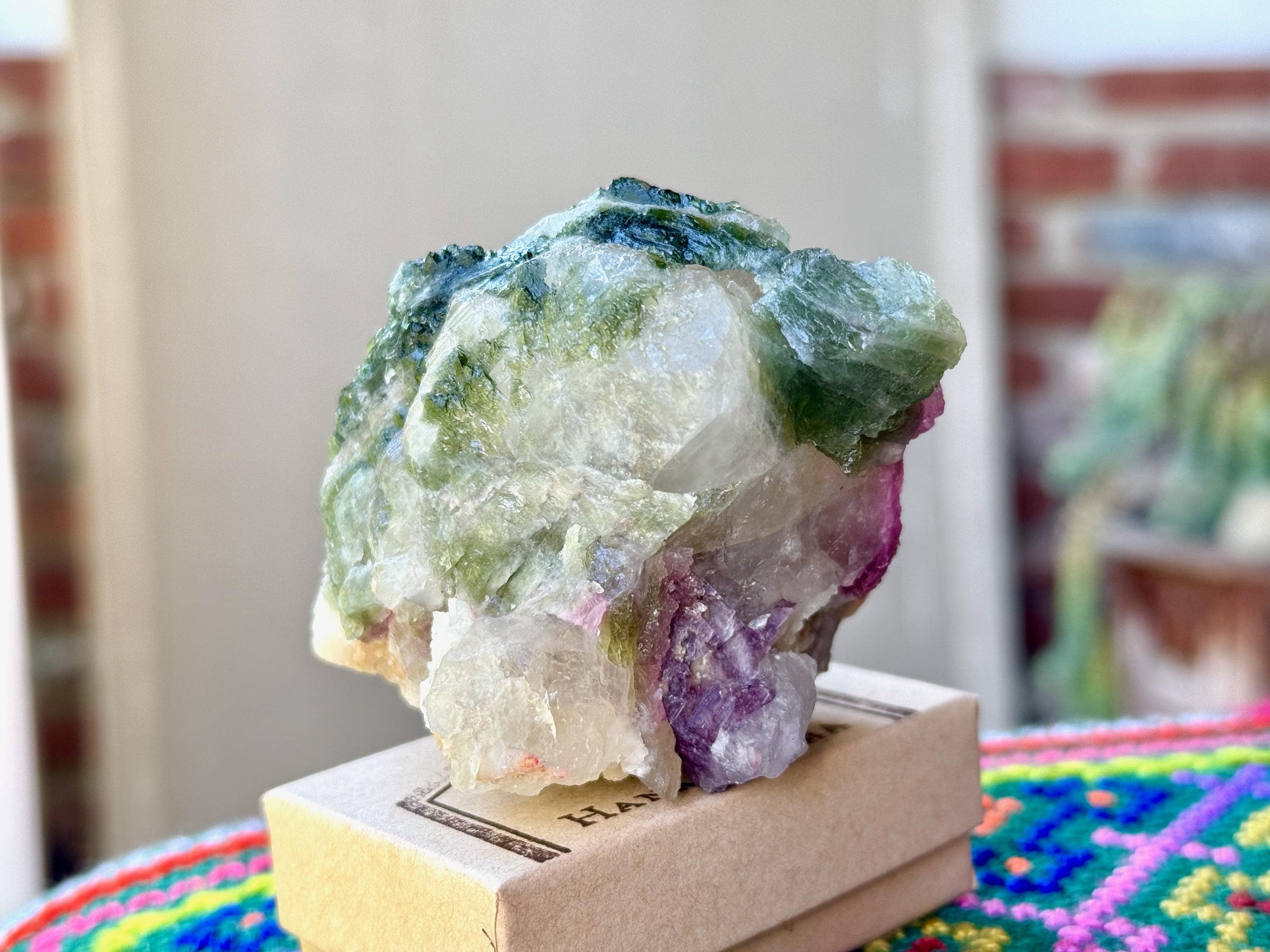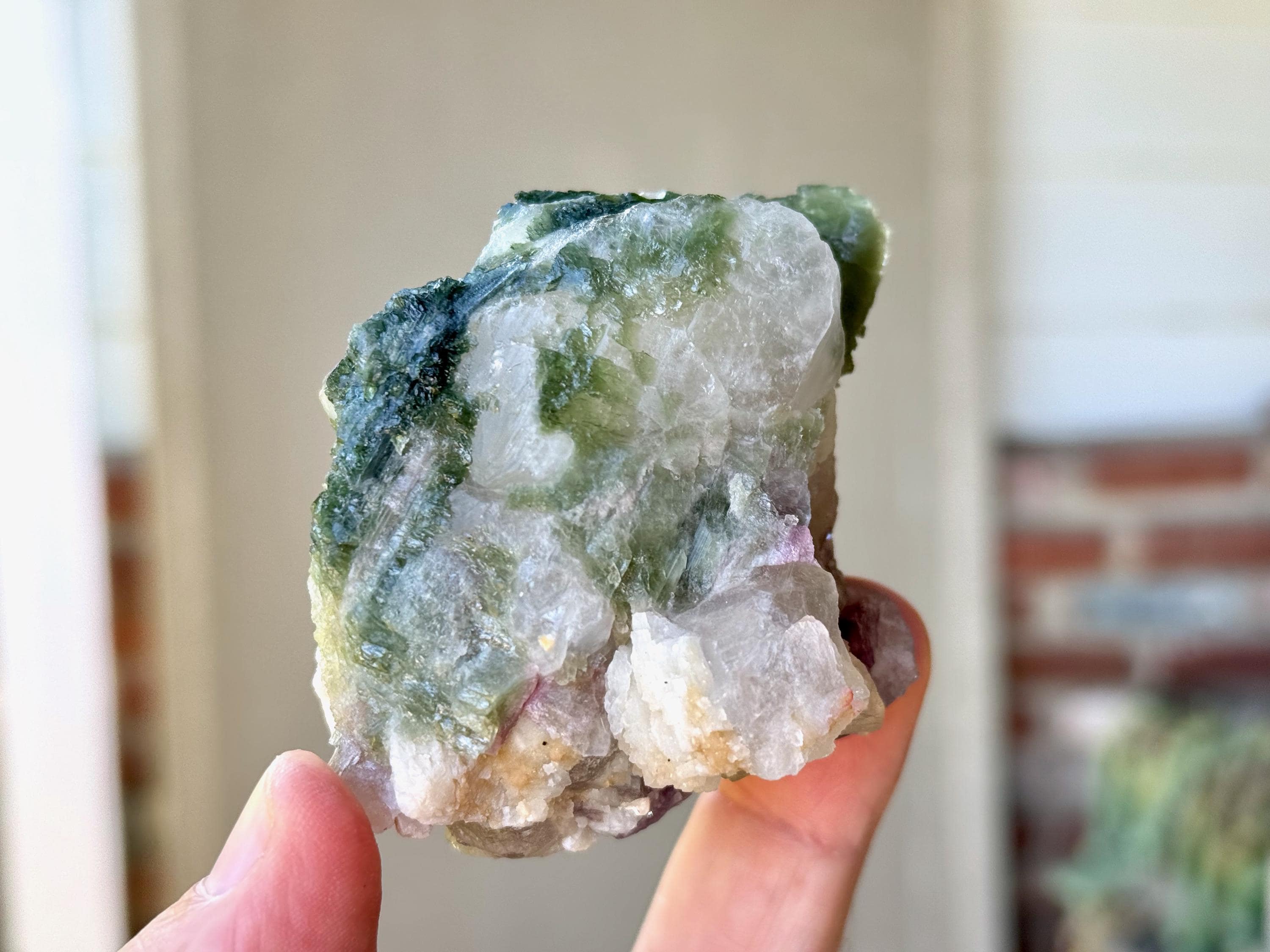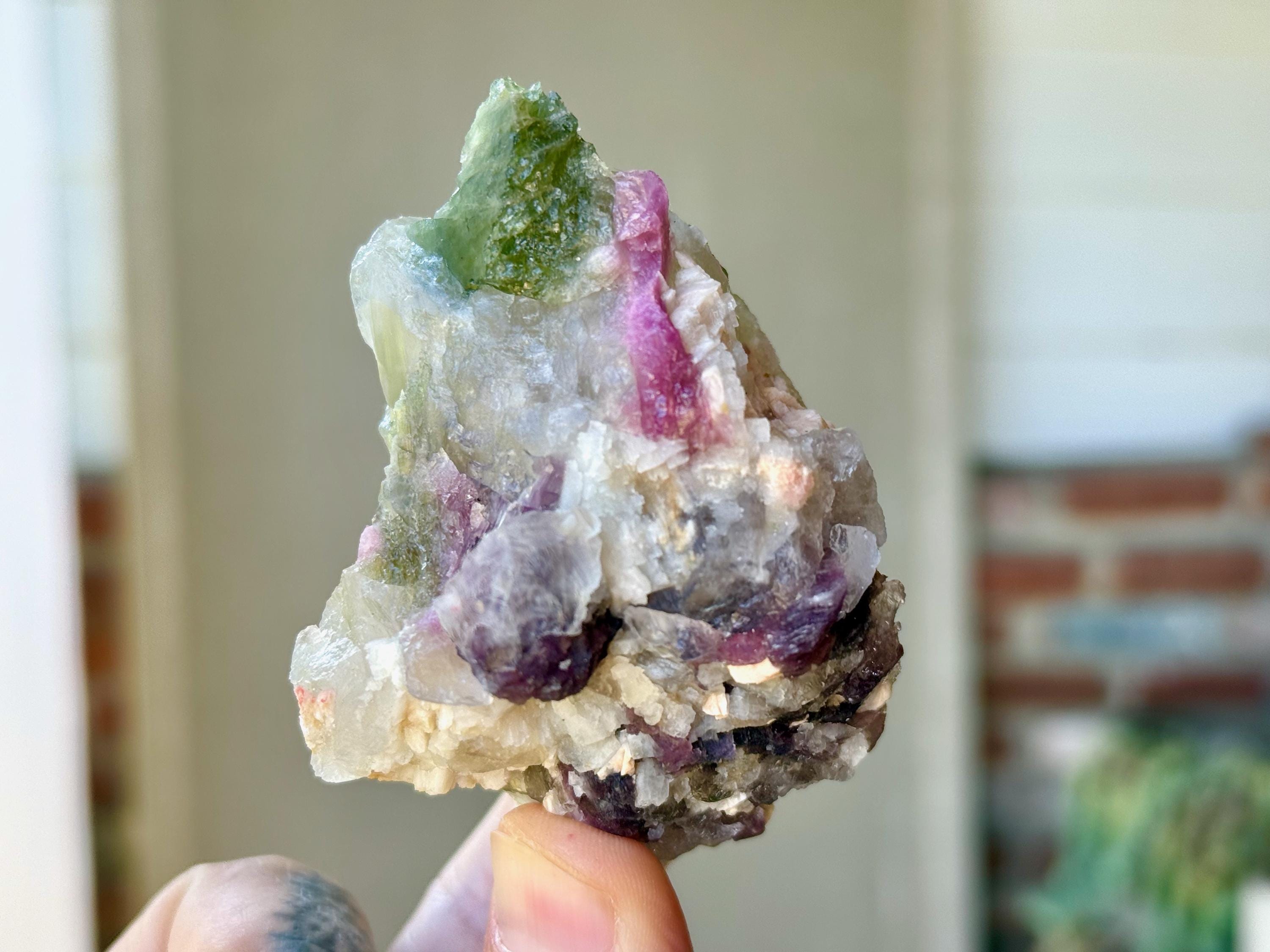 This vibrant Unicorn Stone Quartz with Lepidolite and Pink & Green Tourmaline comes from a recent find in the area of Coronel Murta, Minas Gerais, Brazil.