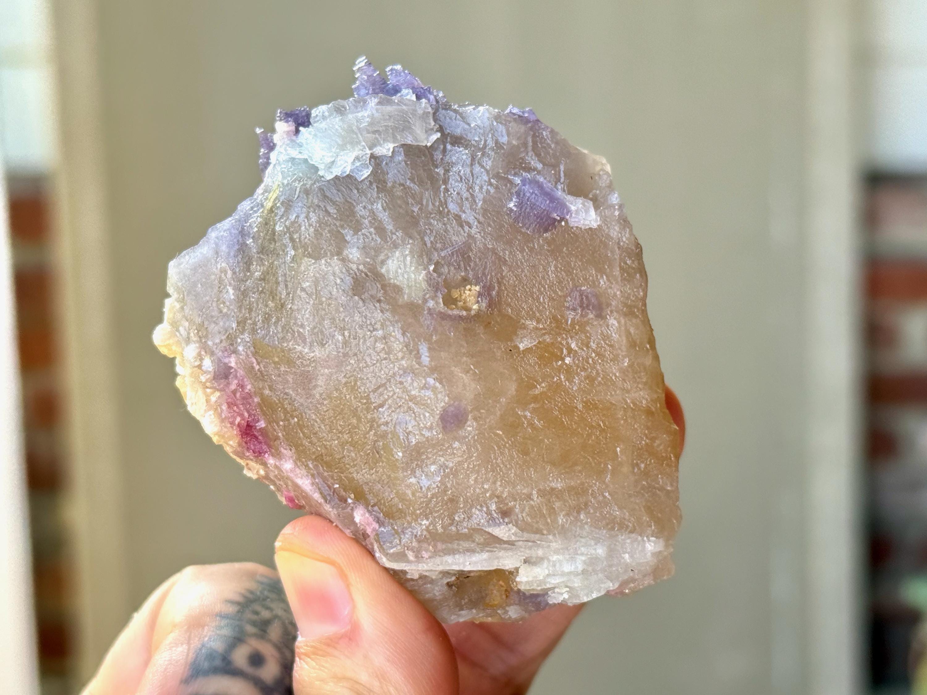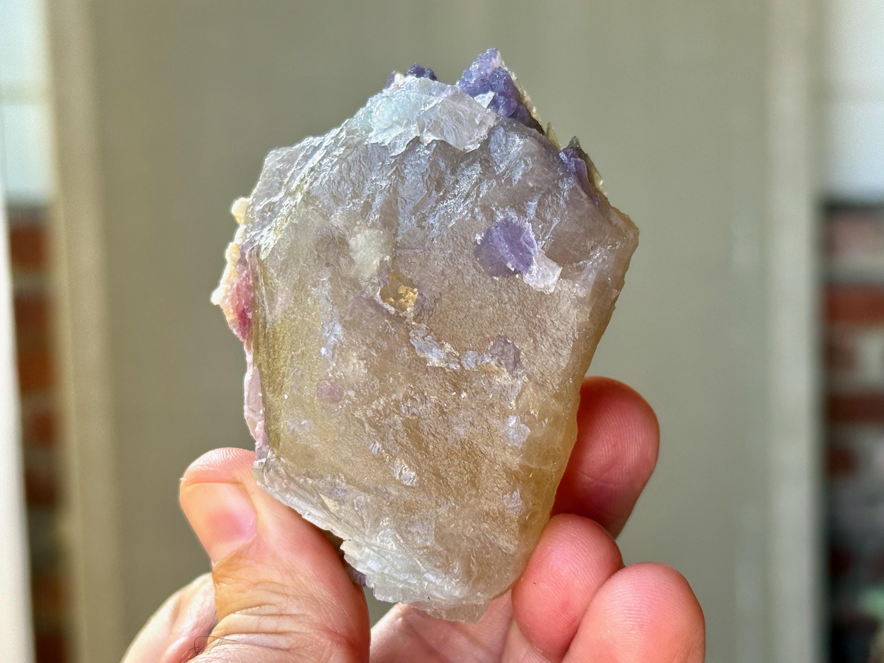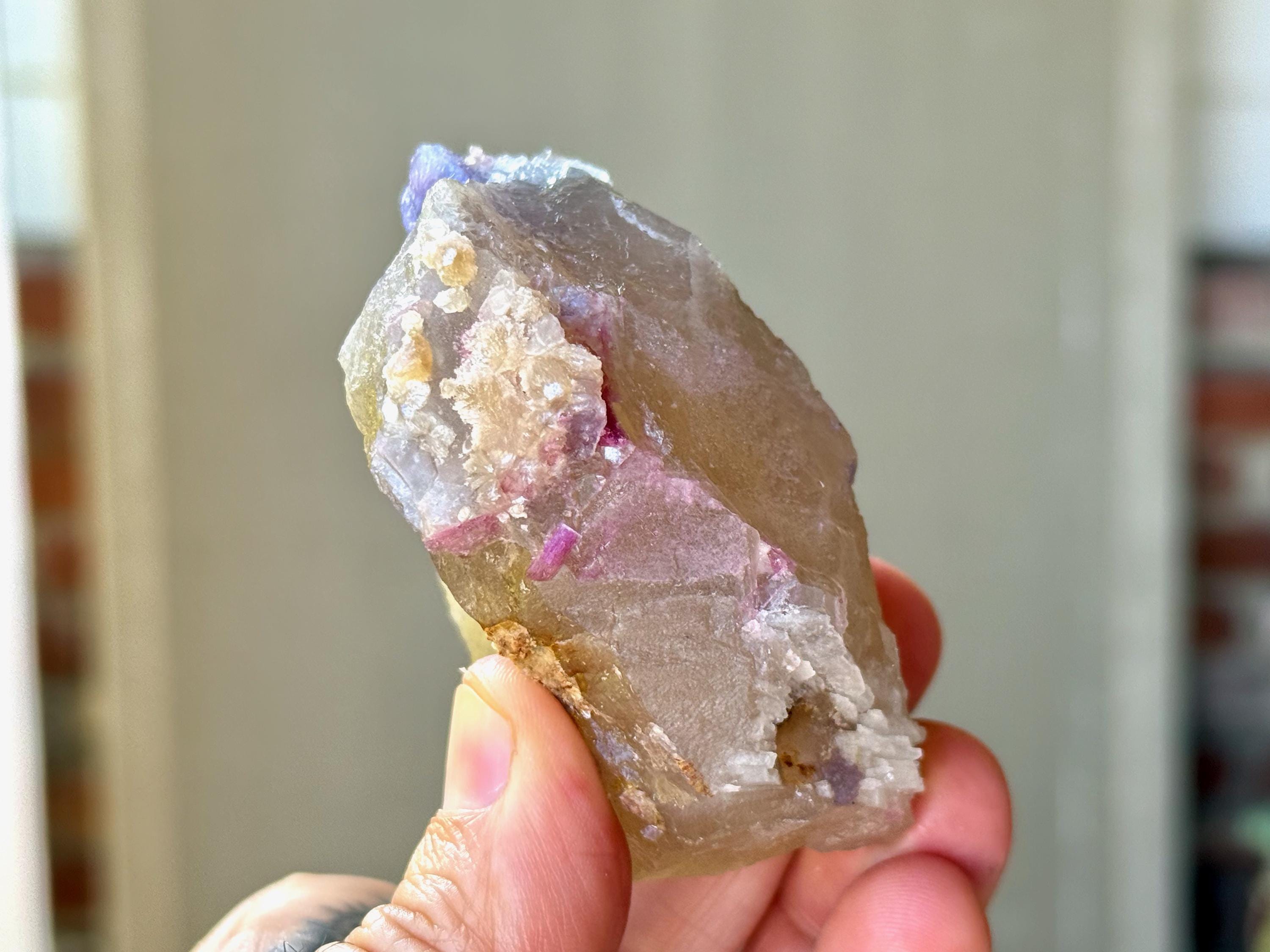 This crystal does not possess a traditional termination, but is a combination of contact areas and self-healed terminations all around. A beautiful combination of energies!
