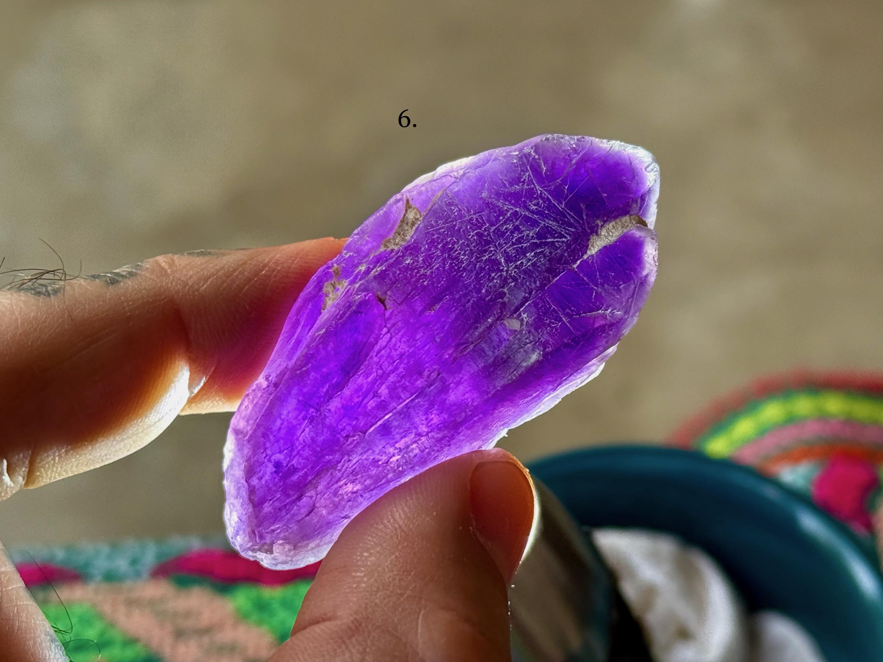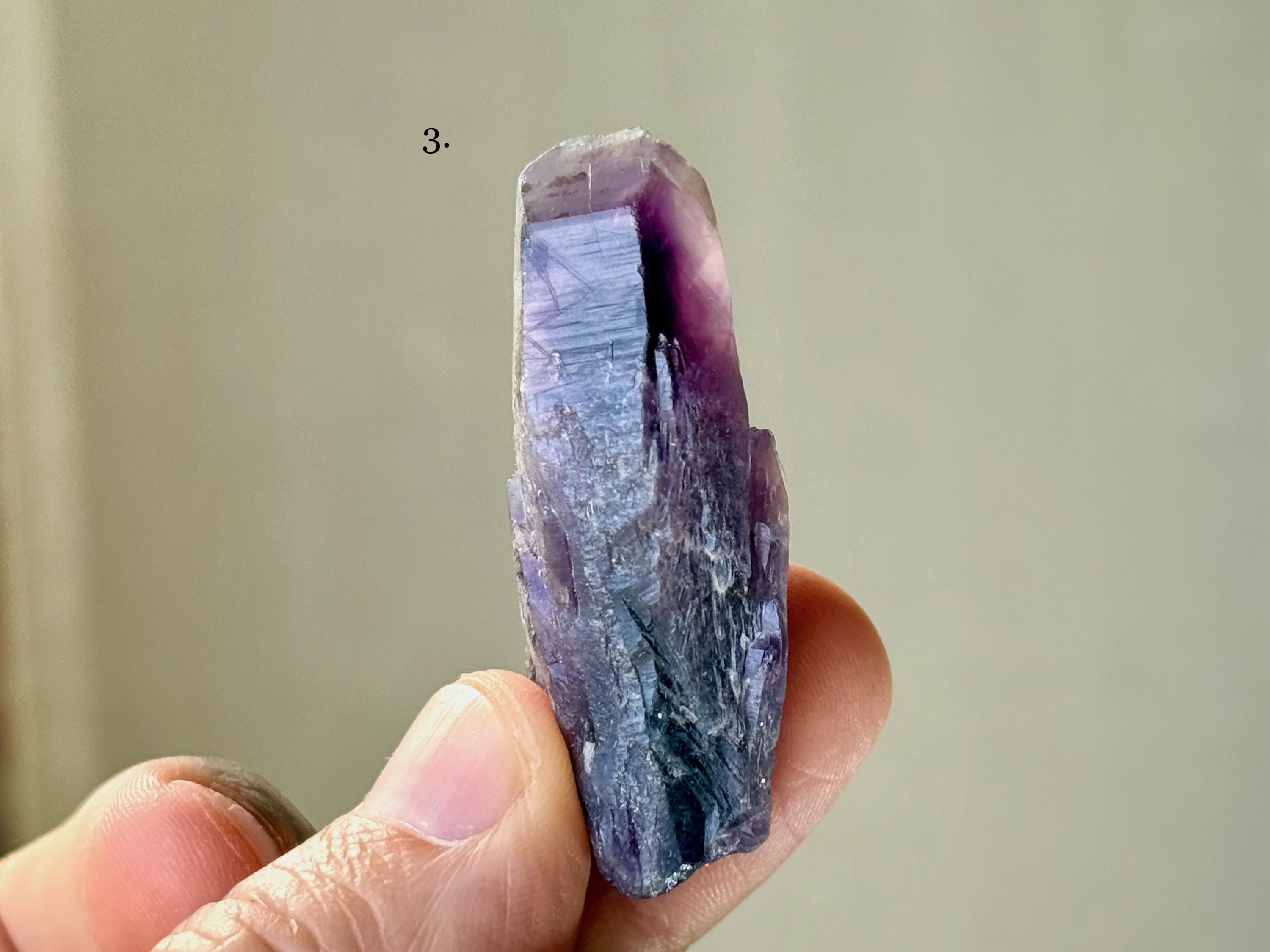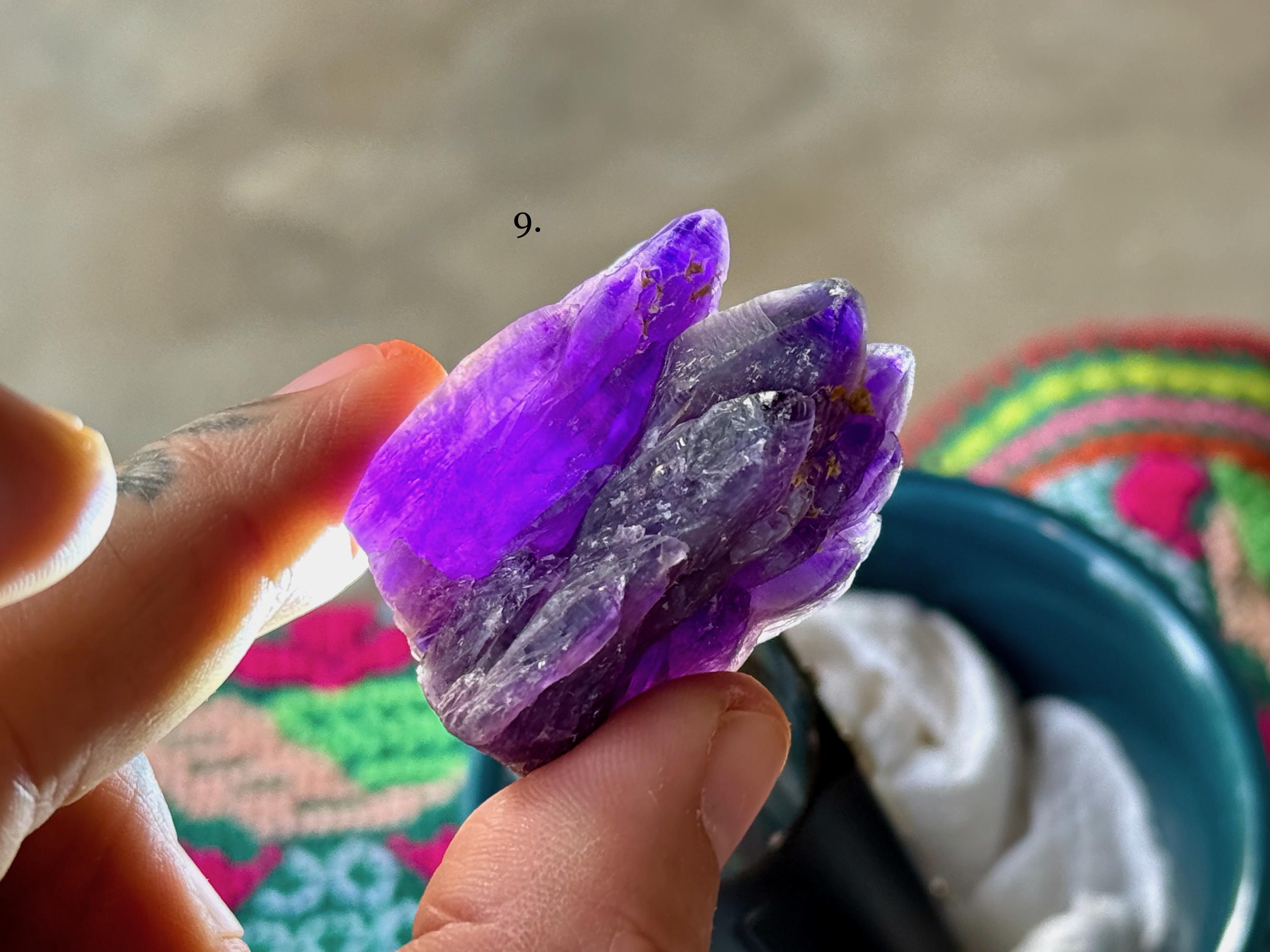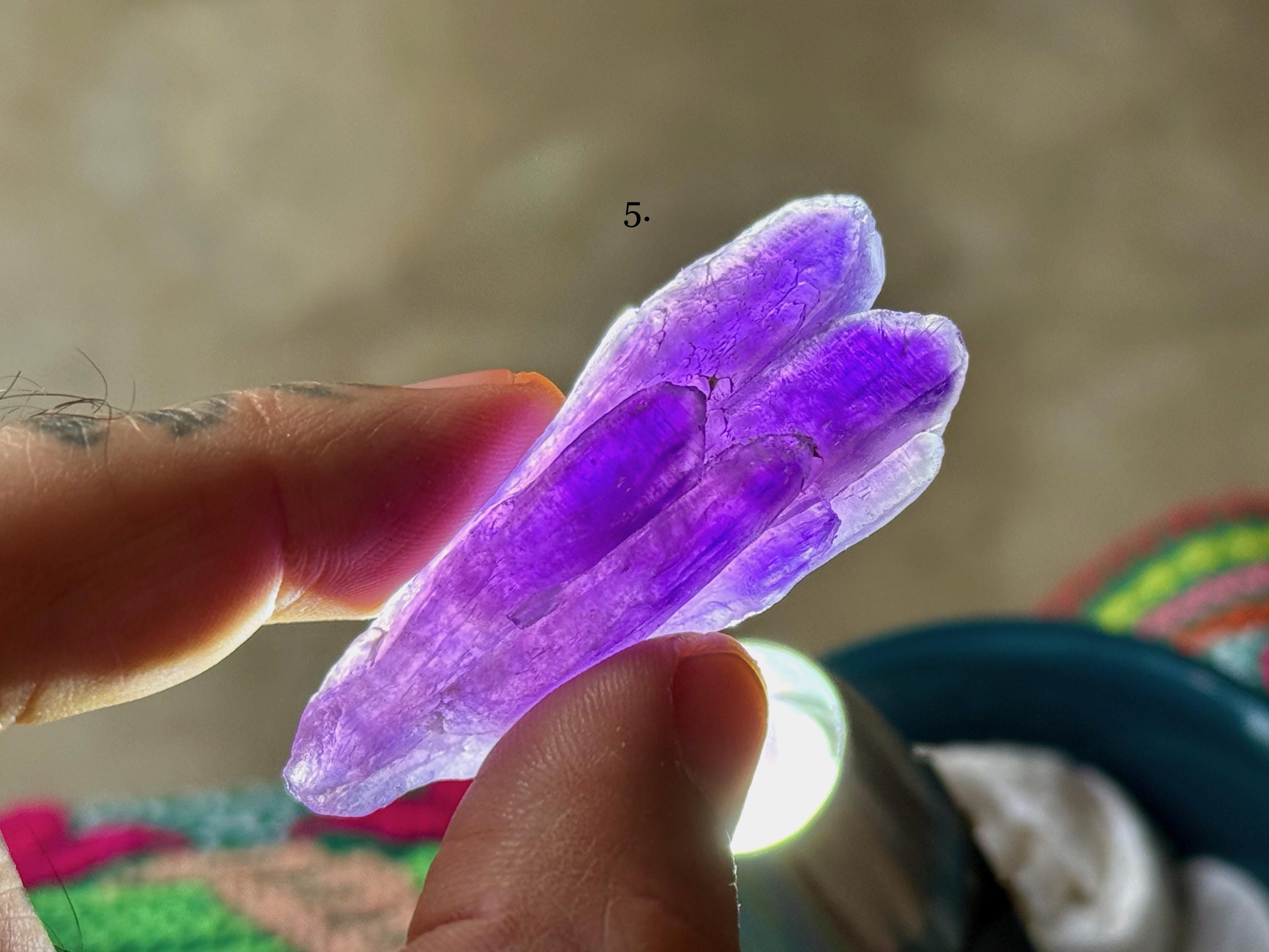 Gorgeous color to these natural Tutu Amethyst crystals in a variety of formations. We've included photos of each in natural light and backlit so you can see their beautiful translucency.