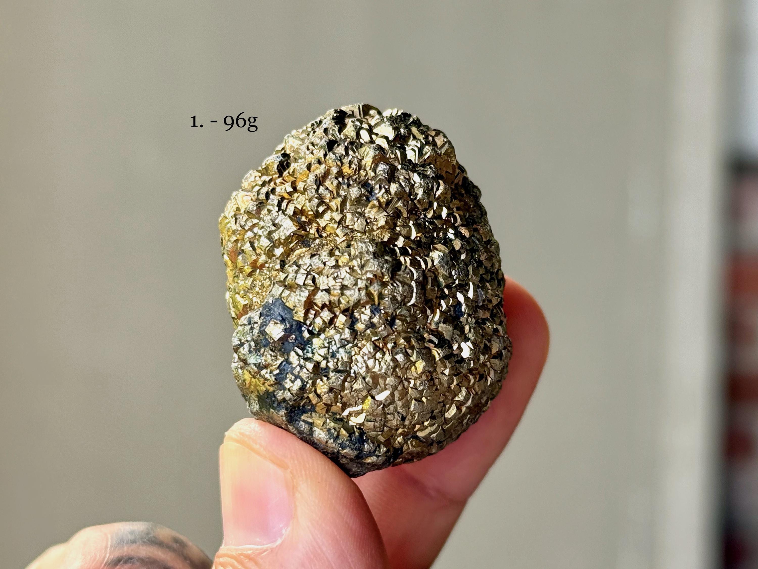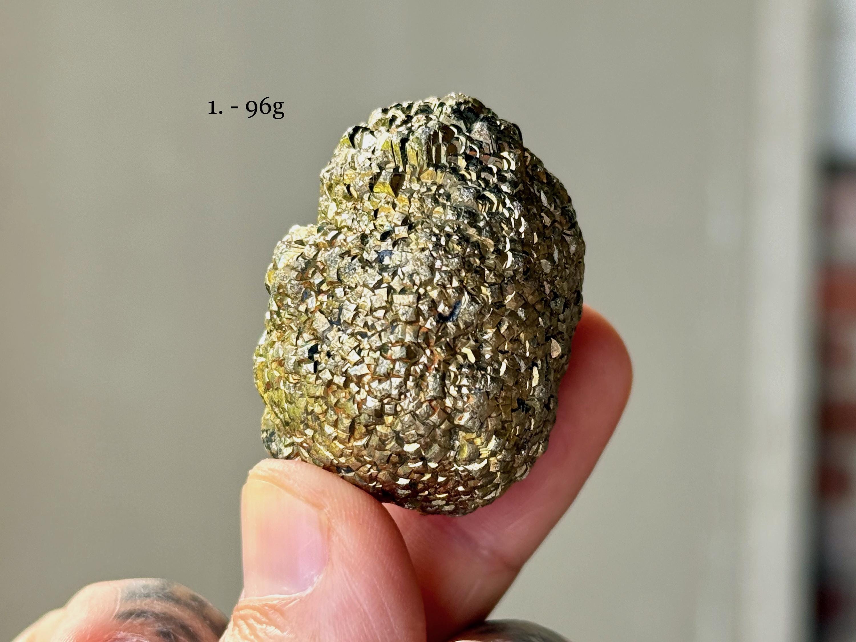 Magnificent sparkle and luster to these unique Pyrite Marcasite nodules! Most of these are golden in color, though some do have a mild rainbow iridescence that is noted in the photo text.