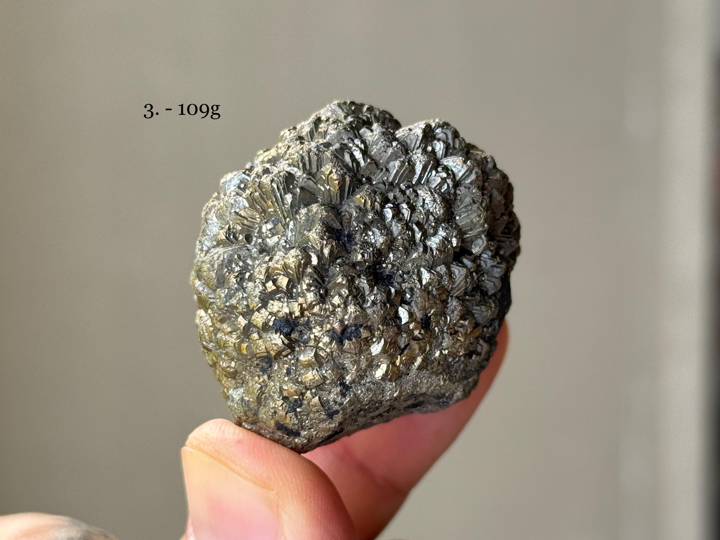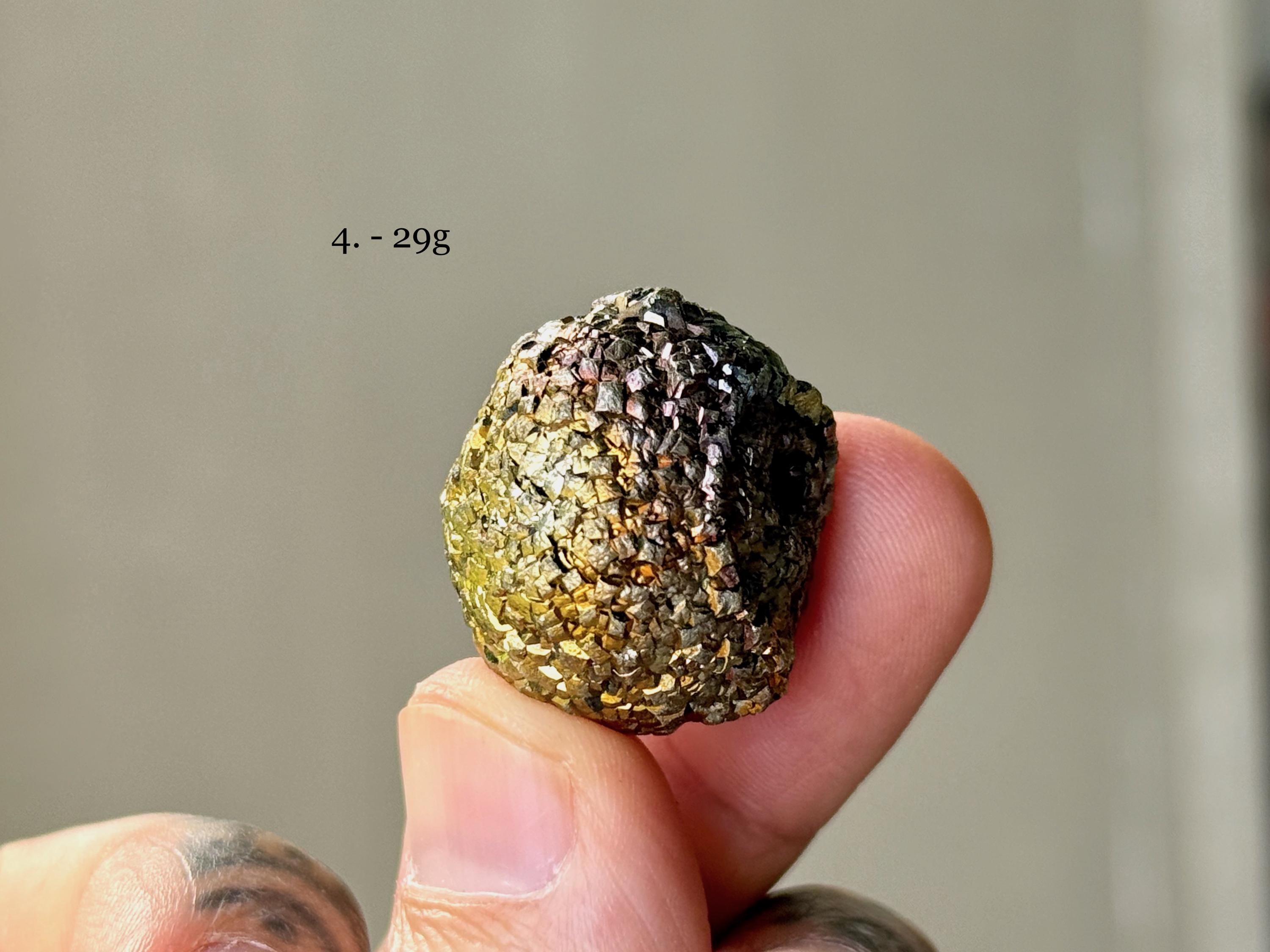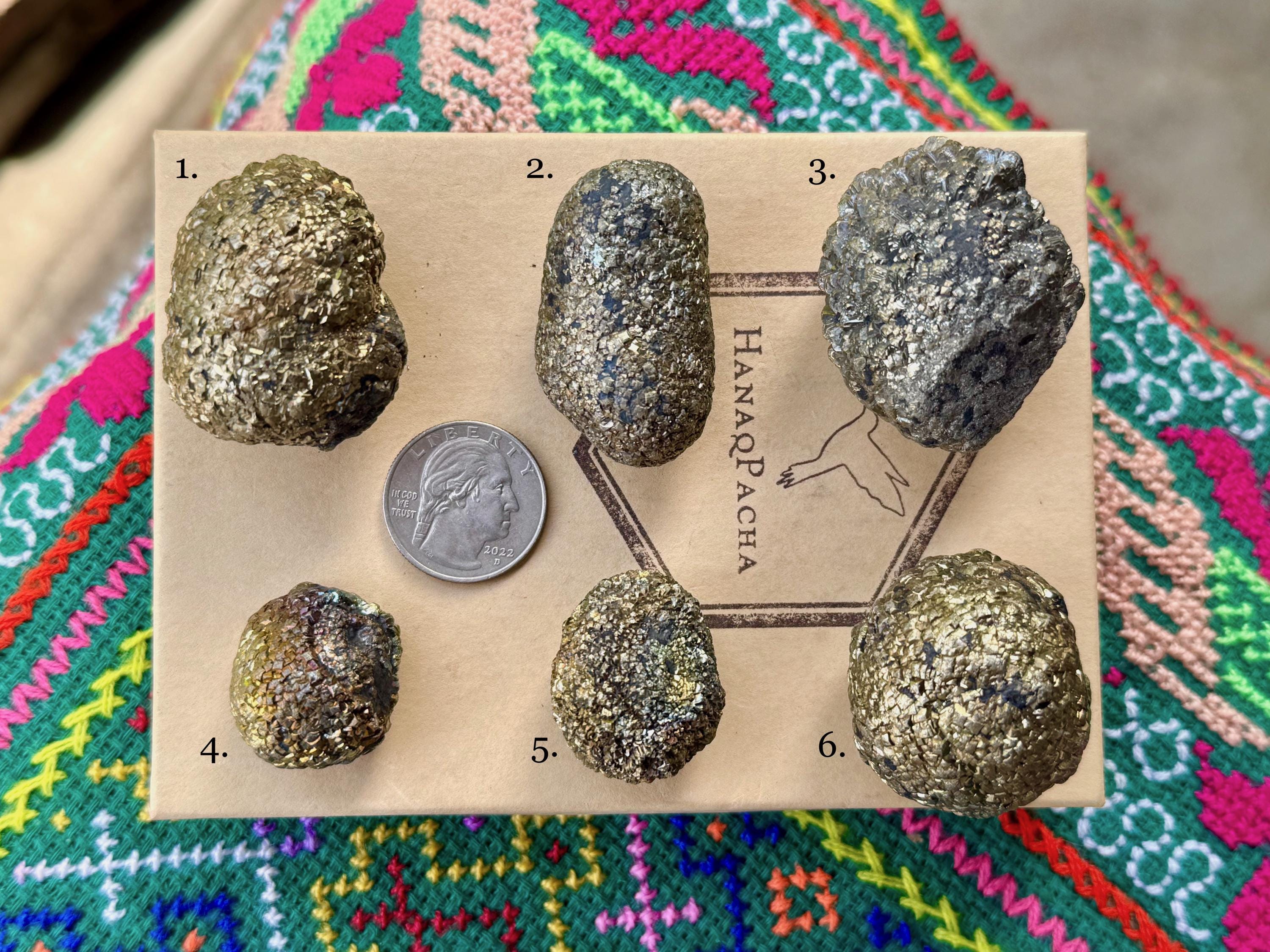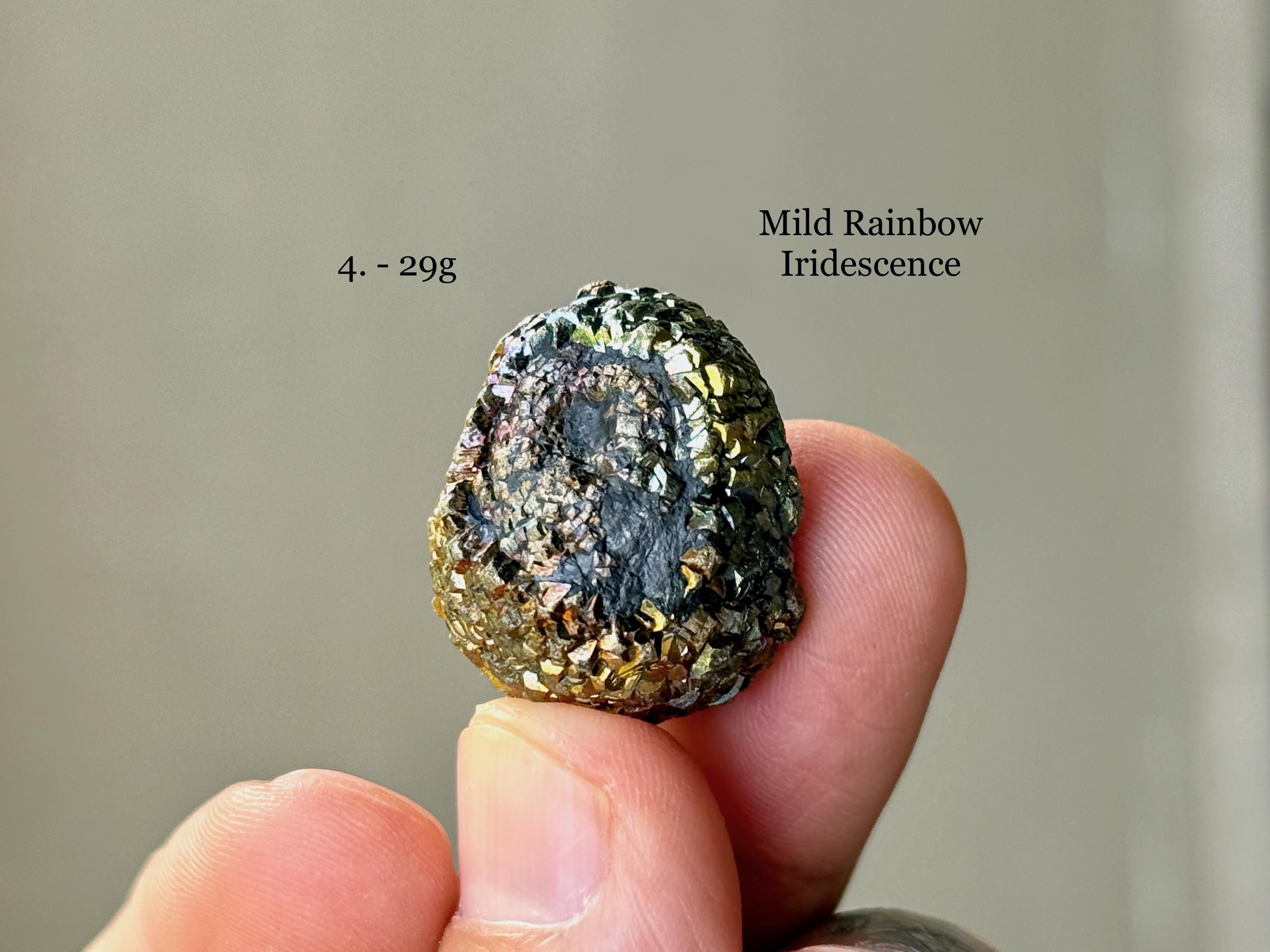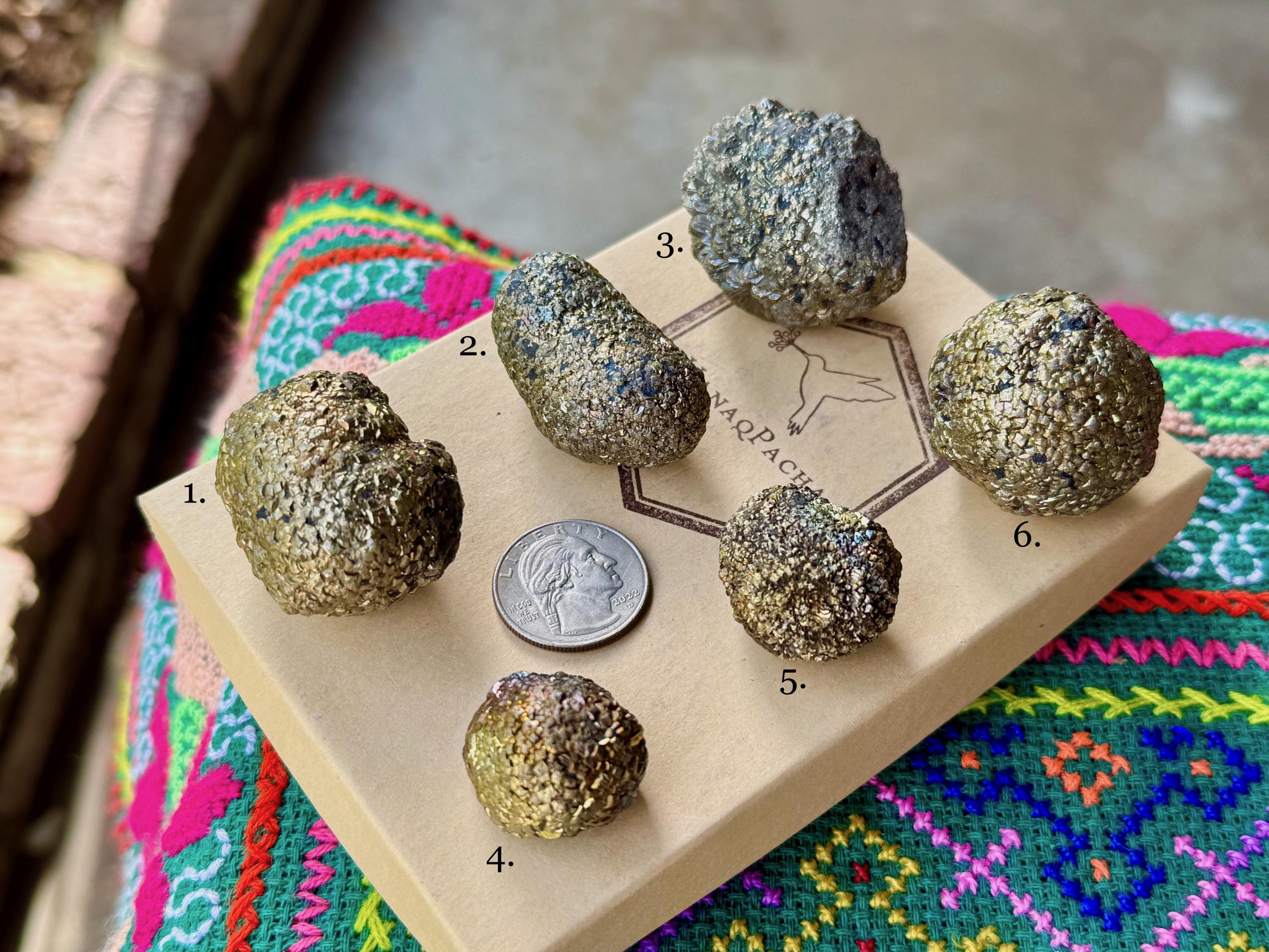 These Golden & Rainbow Pyrite Marcasite nodules come from an old find in Darra Adam Khel, Kunar Province, Pakistan. Each selection is numbered, simply select the one(s) you'd like from the dropdown.