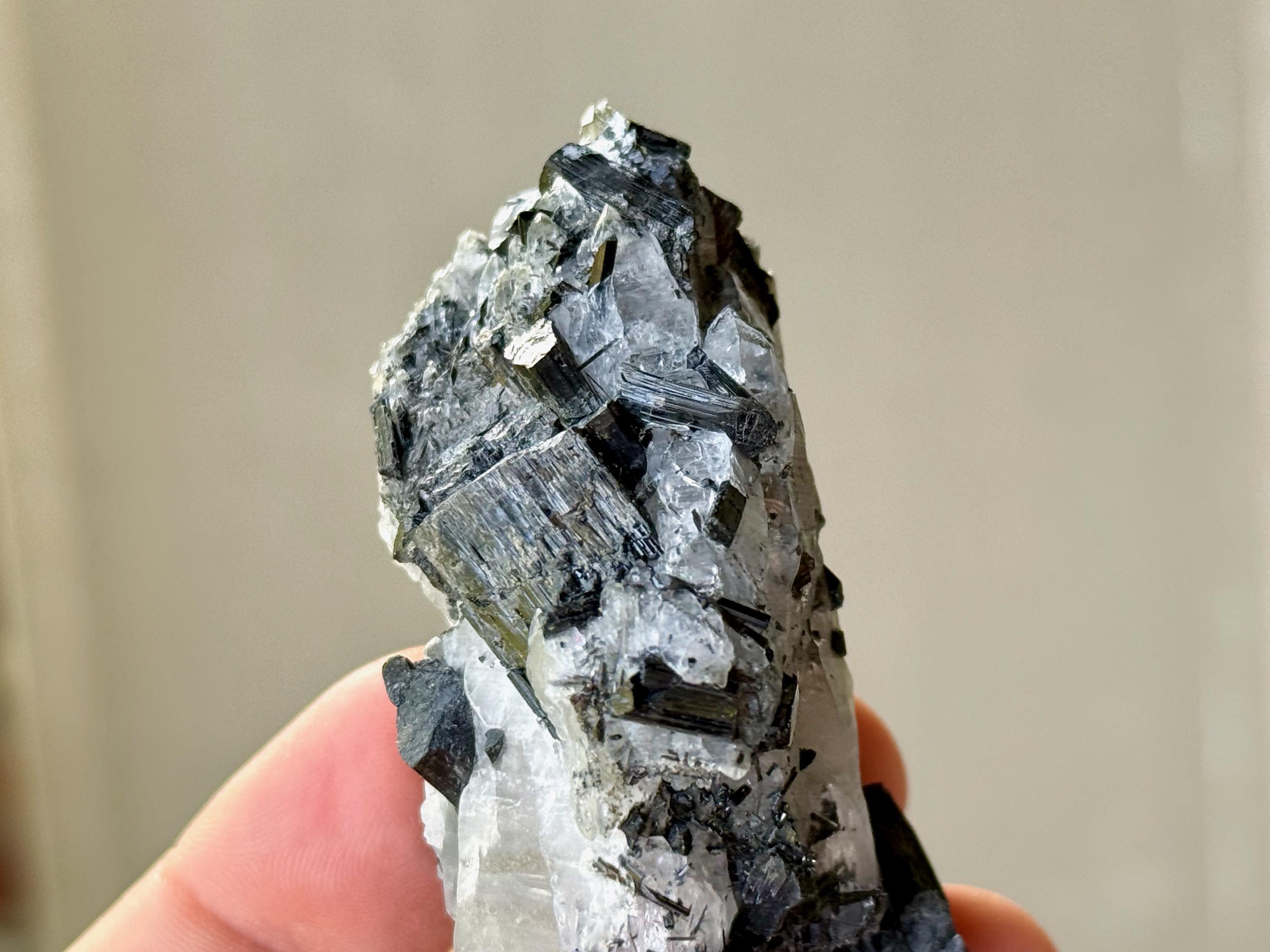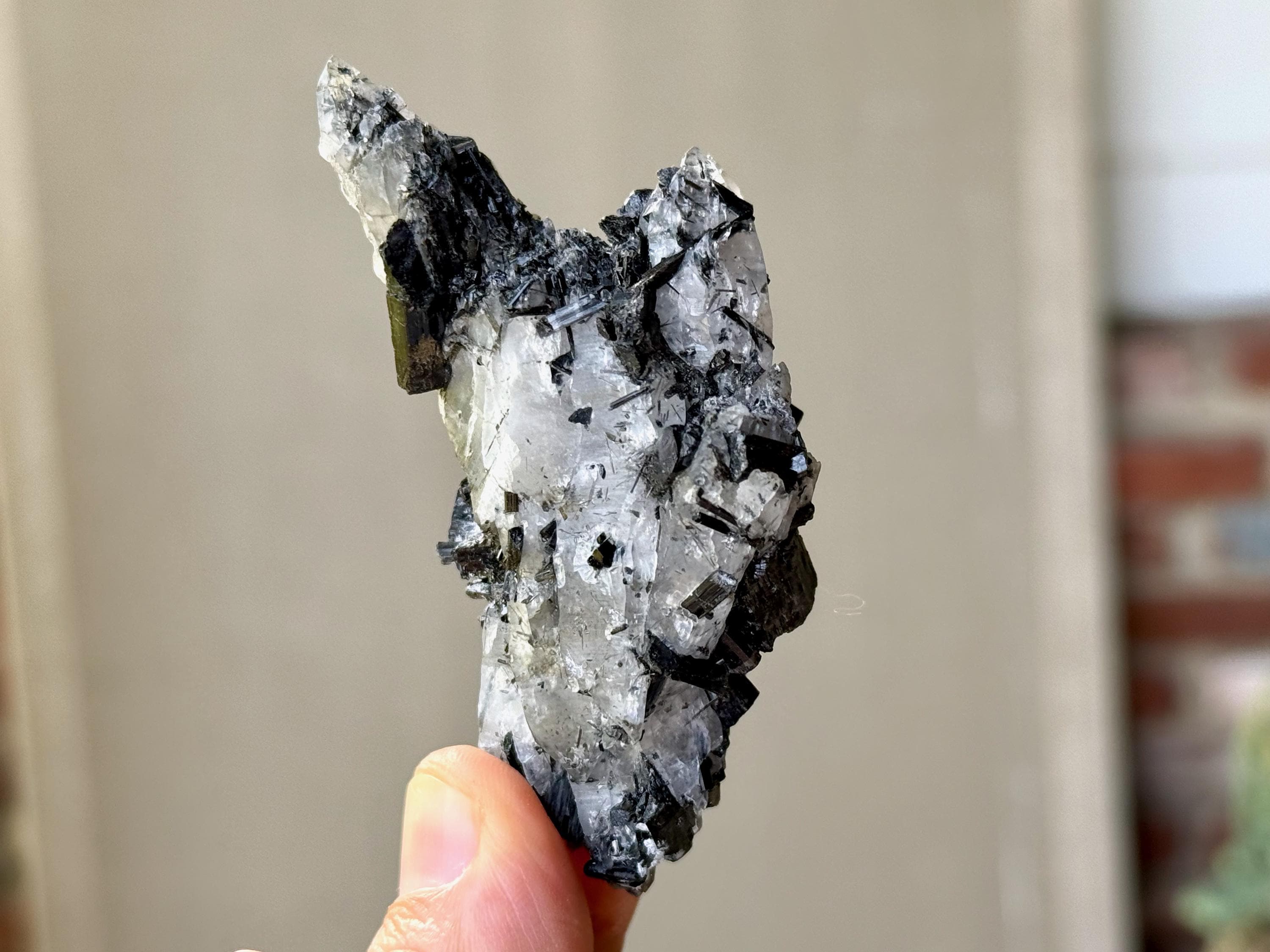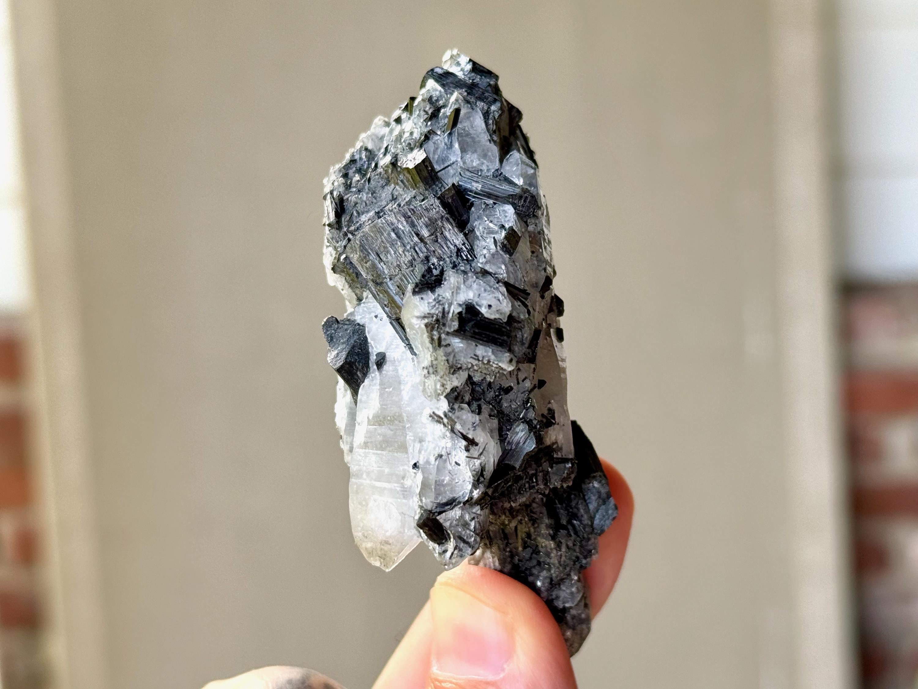 This Black Tourmaline Quartz crystal comes from an old find in the Shigar Valley, Skardu, Pakistan.