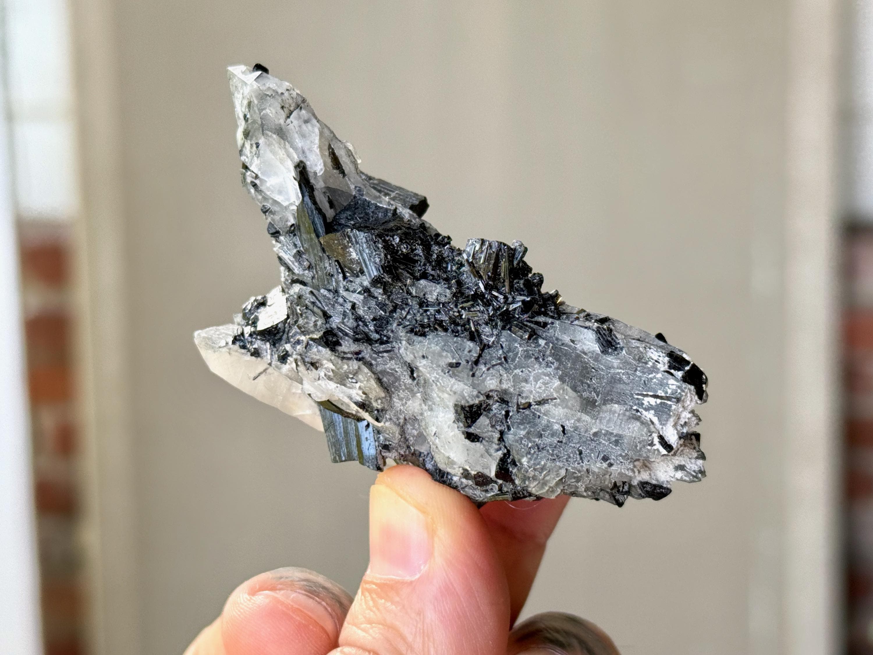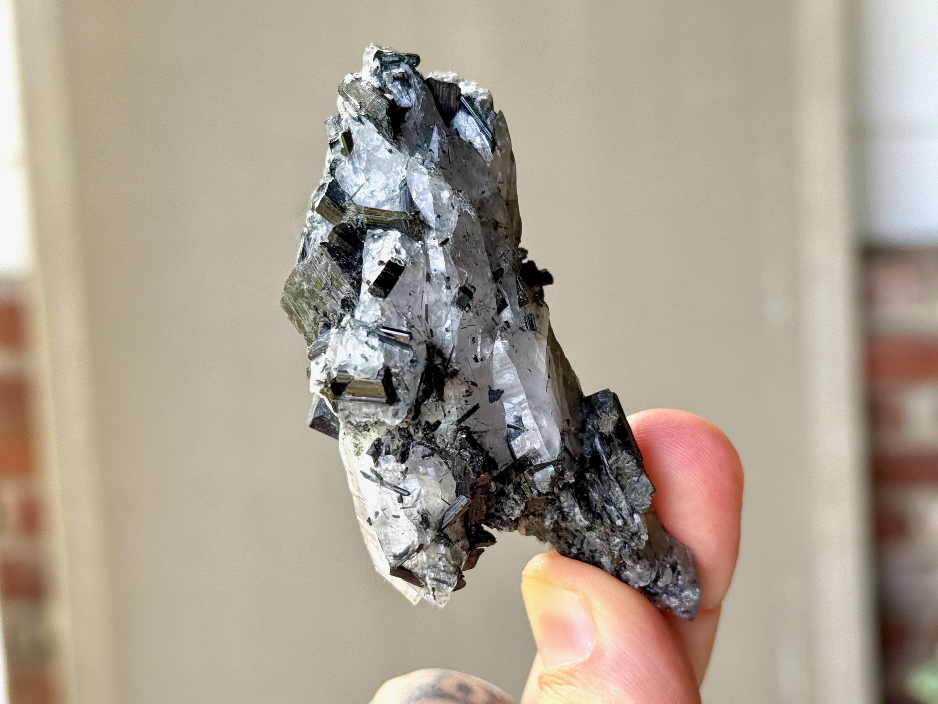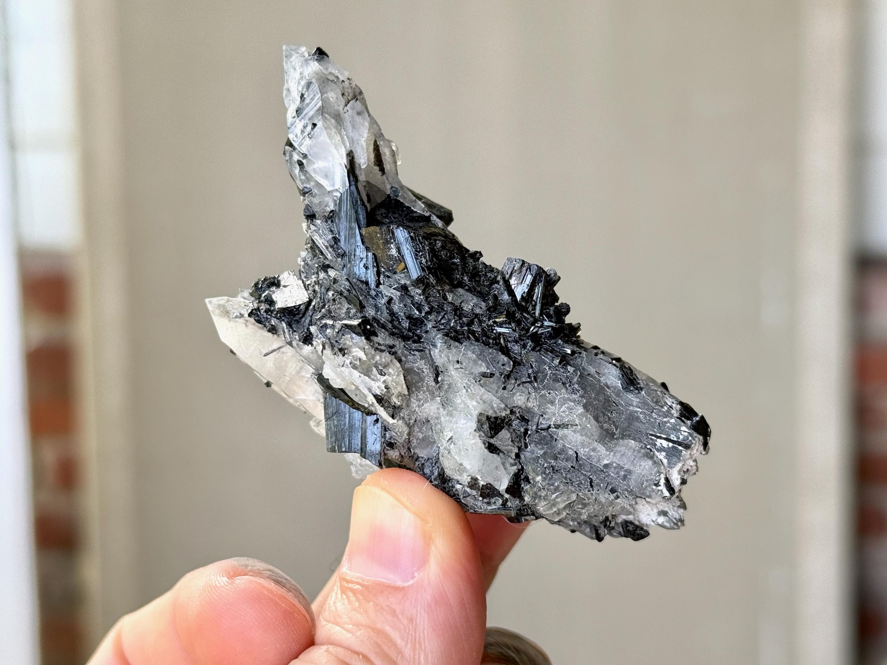 This Black Tourmaline Quartz crystal comes from an old find in the Shigar Valley, Skardu, Pakistan.