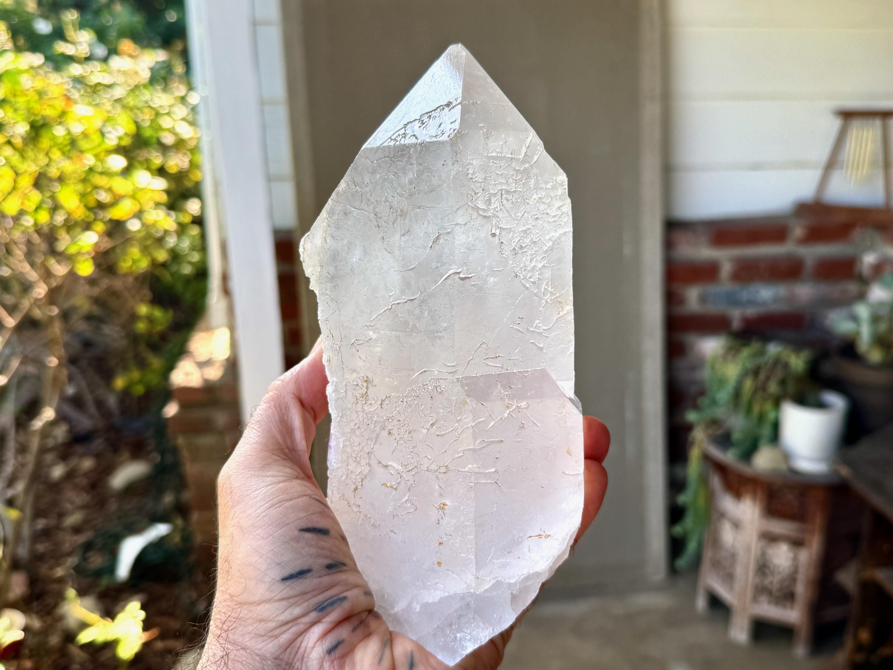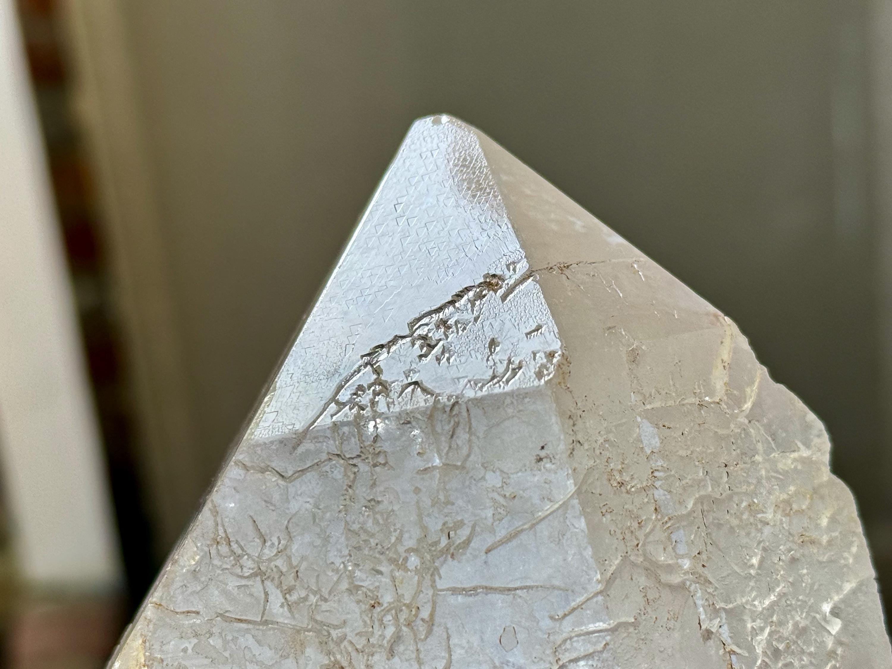 Trigonic Quartz refers to crystals that have "trigons" or upside down triangles deeply etched into the face of the crystal. They are similar to Record Keepers, except Record Keepers are upright triangles and trigons are pointing downward.