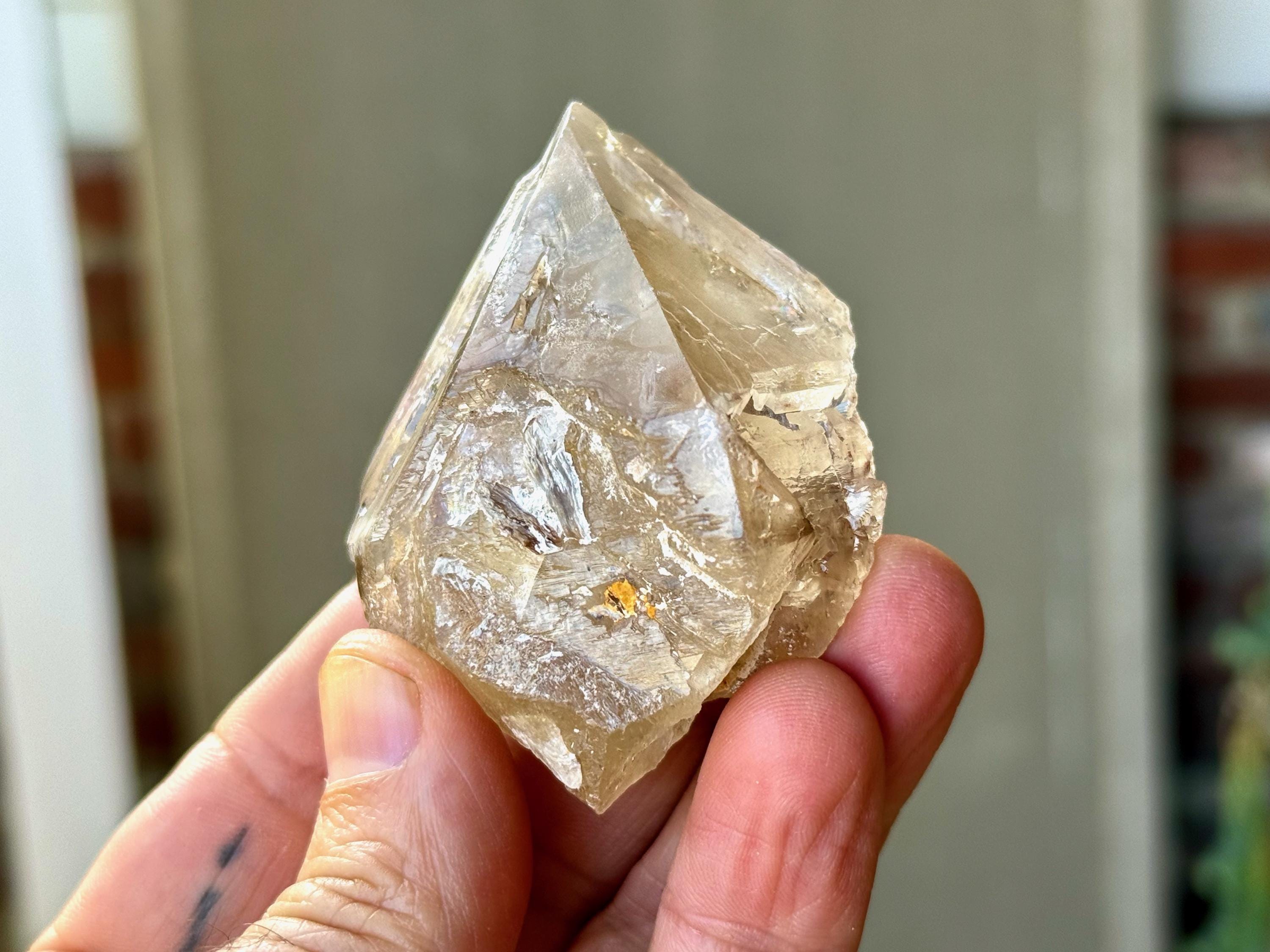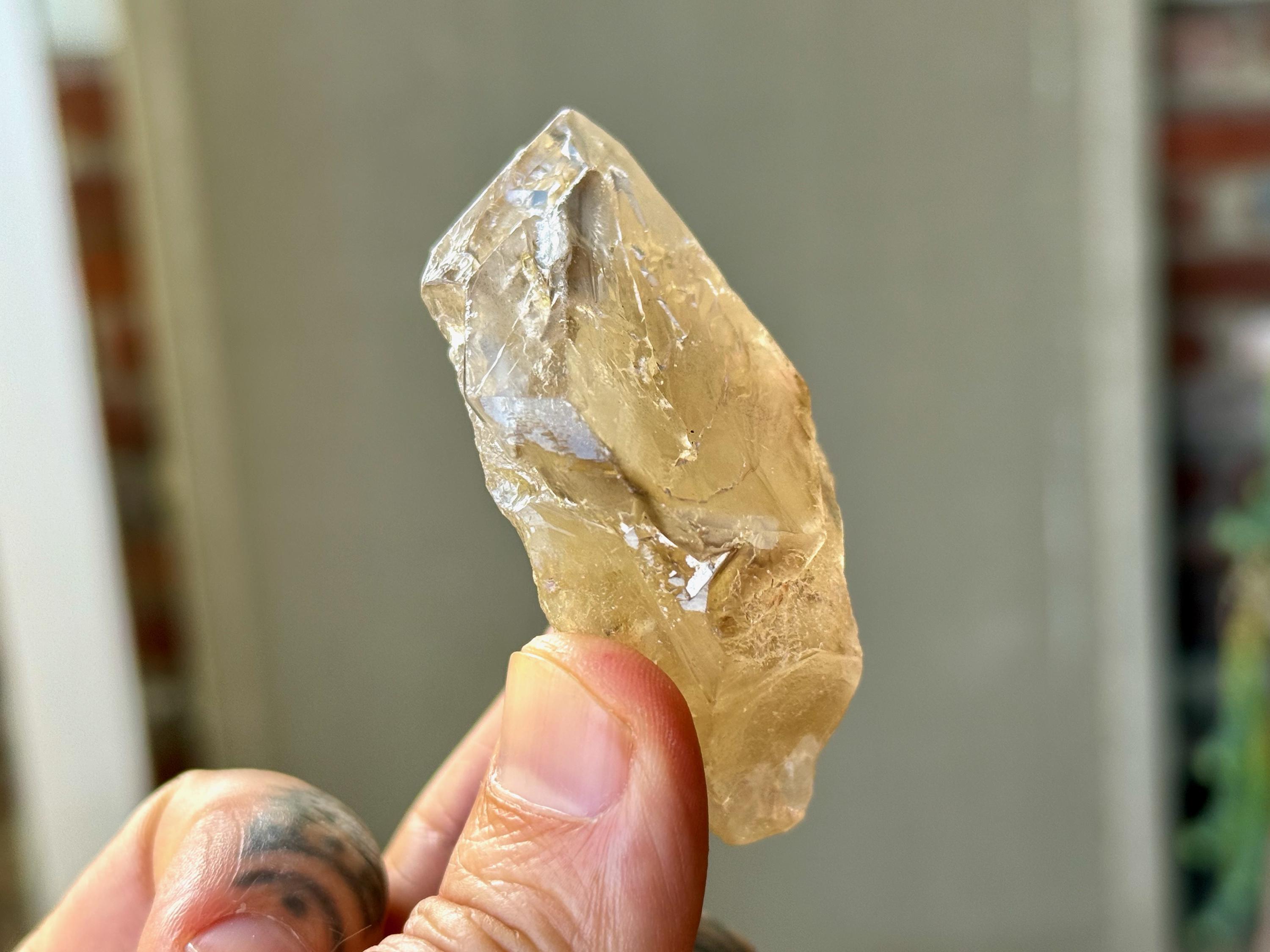 This natural Elestial Citrine comes from a recent find in the Aracuai region of Minas Gerais, Brazil. Citrine activates, opens, and energizes the Solar Plexus and Navel Chakras, releasing personal power, creativity and most importantly the ability to manifest.