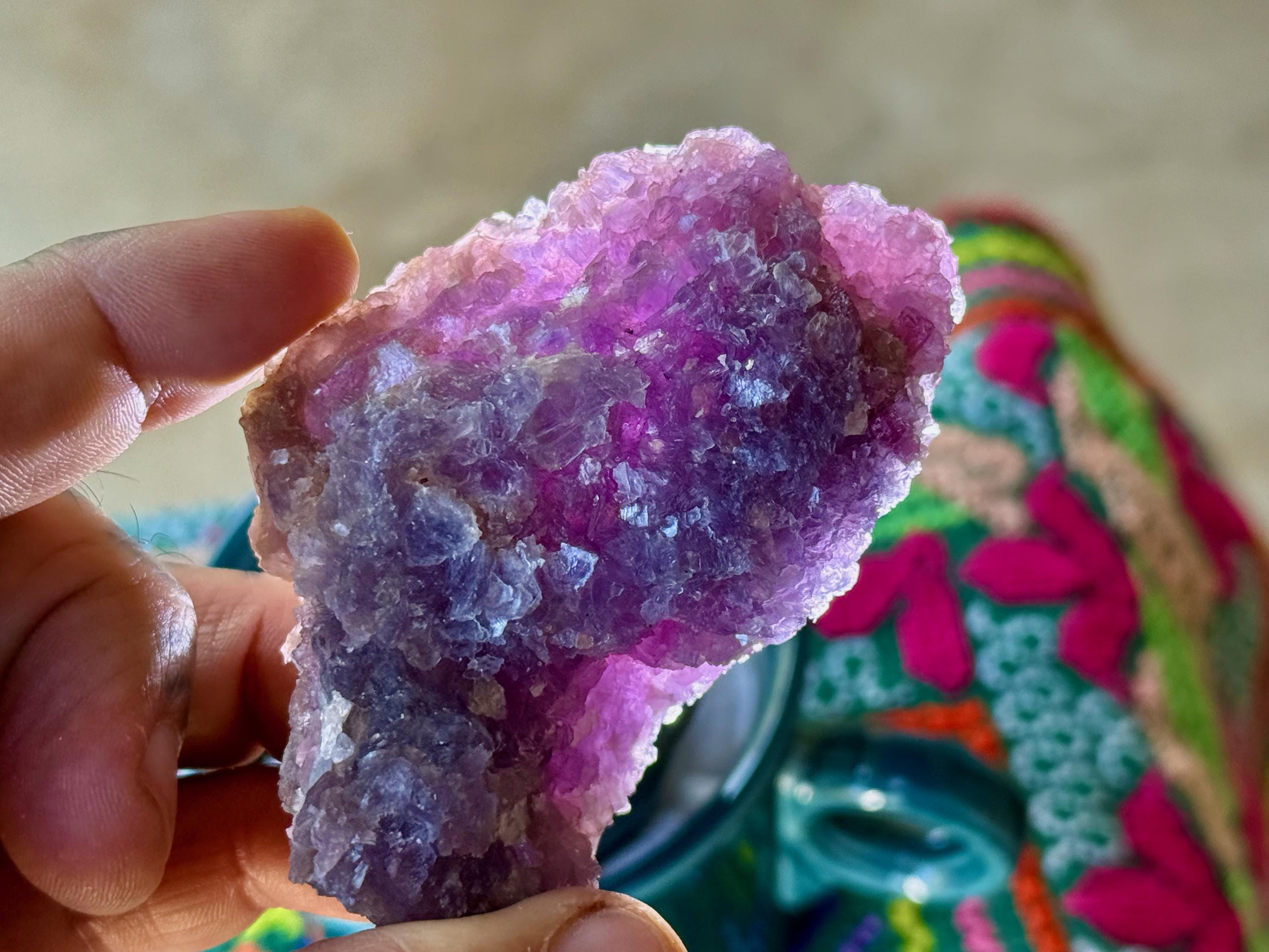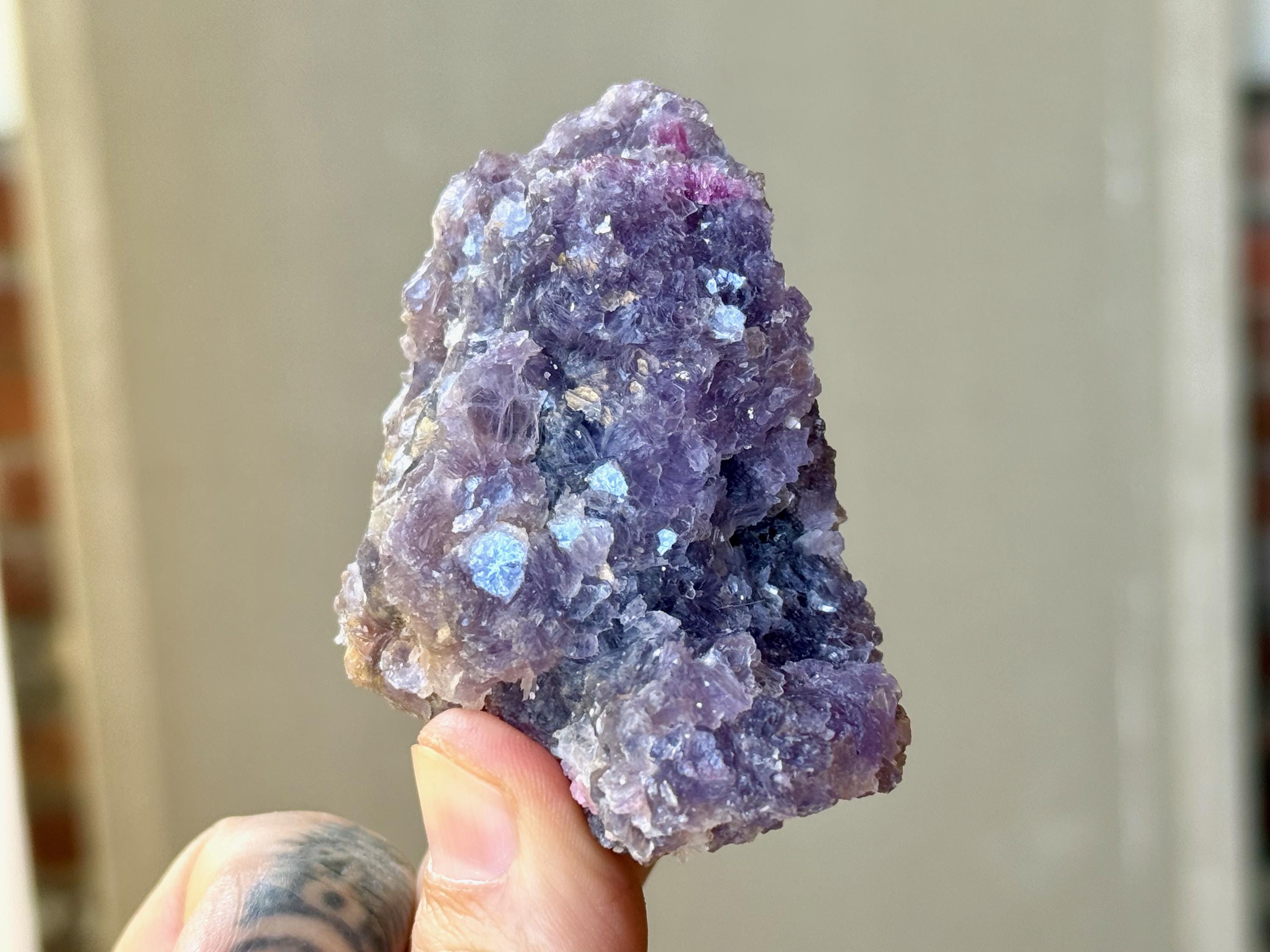 This vibrant Purple Lepidolite with Pink Tourmaline comes from a recent find in the area of Coronel Murta, Minas Gerais, Brazil. Lepidolite has a strong relaxing, balancing and calming effect. Because of this it is widely known and used for many emotional issues, especially relief of stress and anxiety.