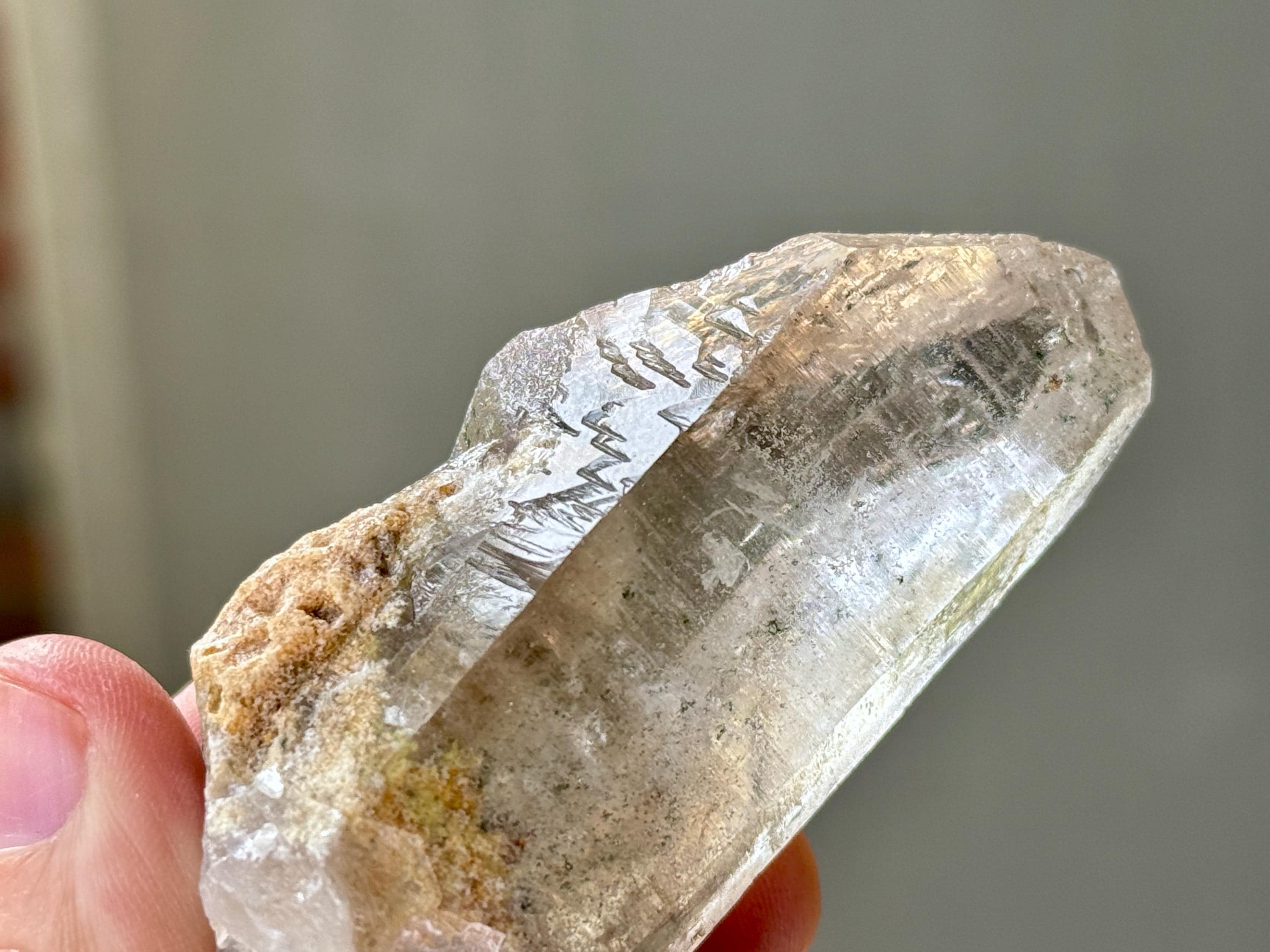 This exquisite Golden Healer Starbrary Quartz comes from a recent find in the town of Corinto, Minas Gerais, Brazil. It features an array of mysterious etchings on its main facets.