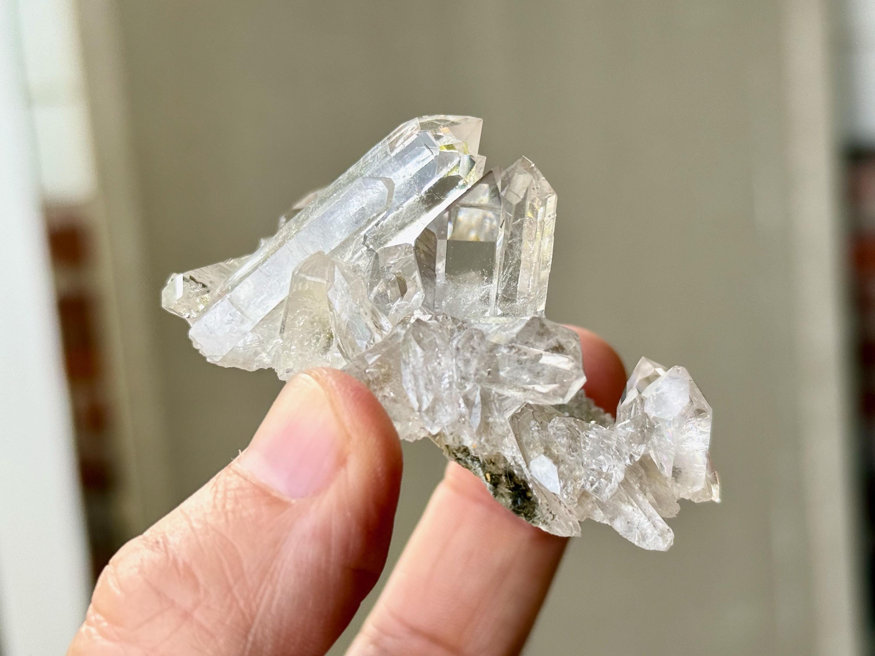 Exceptional quality to this superb Quartz Cluster from Zeca de Souza! This crystal exhibits brilliant luster and water-clear clarity, as well as a beautiful self-standing formation. There are also some hints of dark Green Chlorite around the edges. Excellent termination as well.