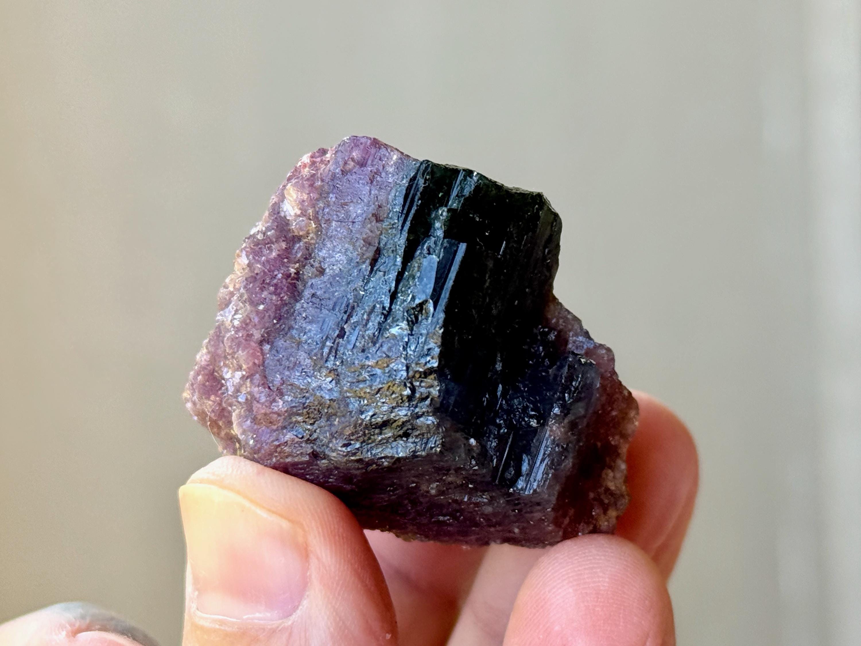 In natural light, the Green Tourmaline looks almost black in color. However, when backlit, we can see it lights up to a vibrant shade of green, and shows off its magical translucency (Photos 1, 3-4).