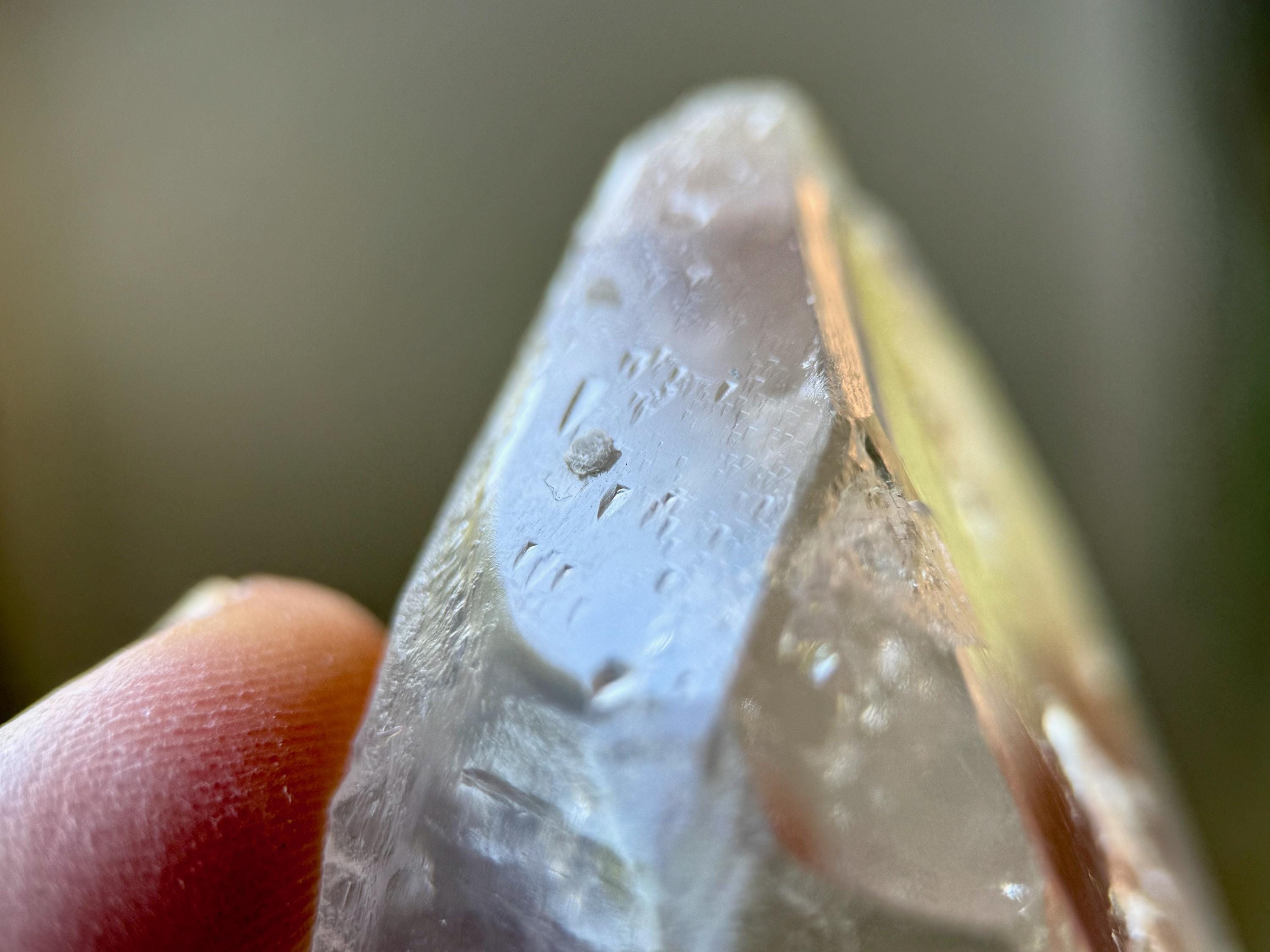 Trigonic Quartz refers to crystals that have "trigons" or upside down triangles deeply etched into the face of the crystal. They are similar to Record Keepers, except Record Keepers are upright triangles and trigons are pointing downward.