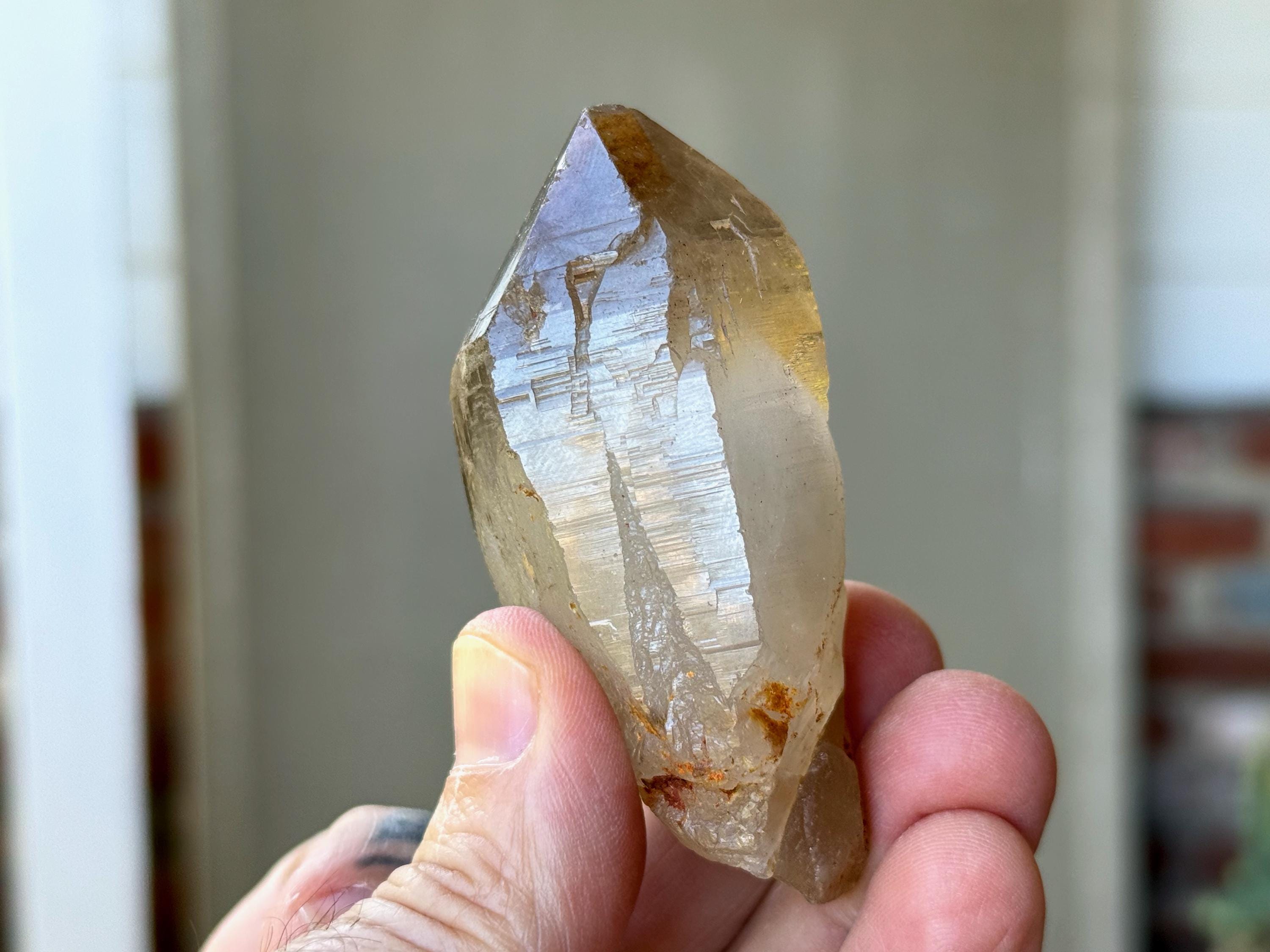 There are two very minor "fleabites" on the tops of two of the main facets, but the termination itself is otherwise intact and very nice. Super pretty piece from this collection.