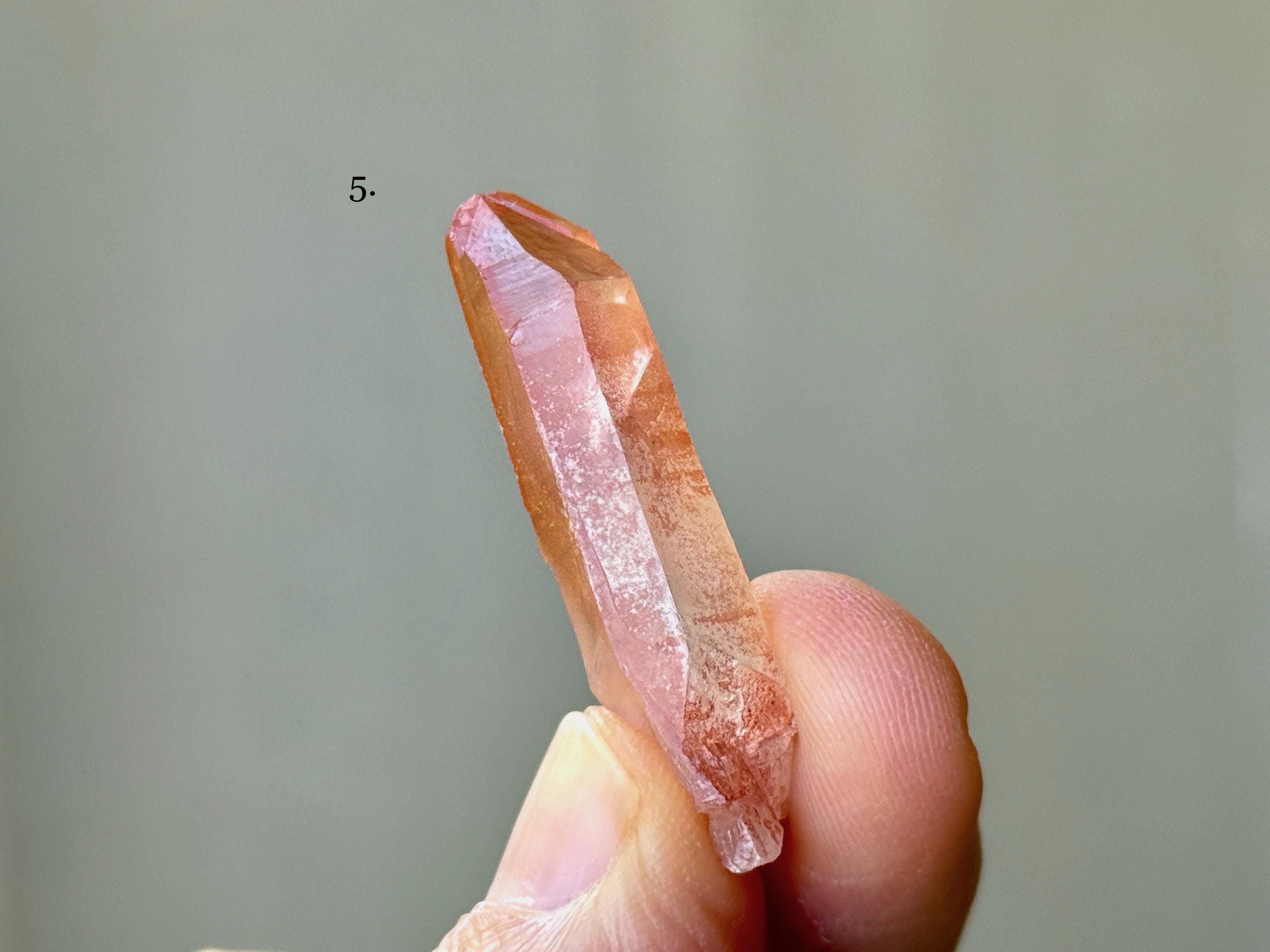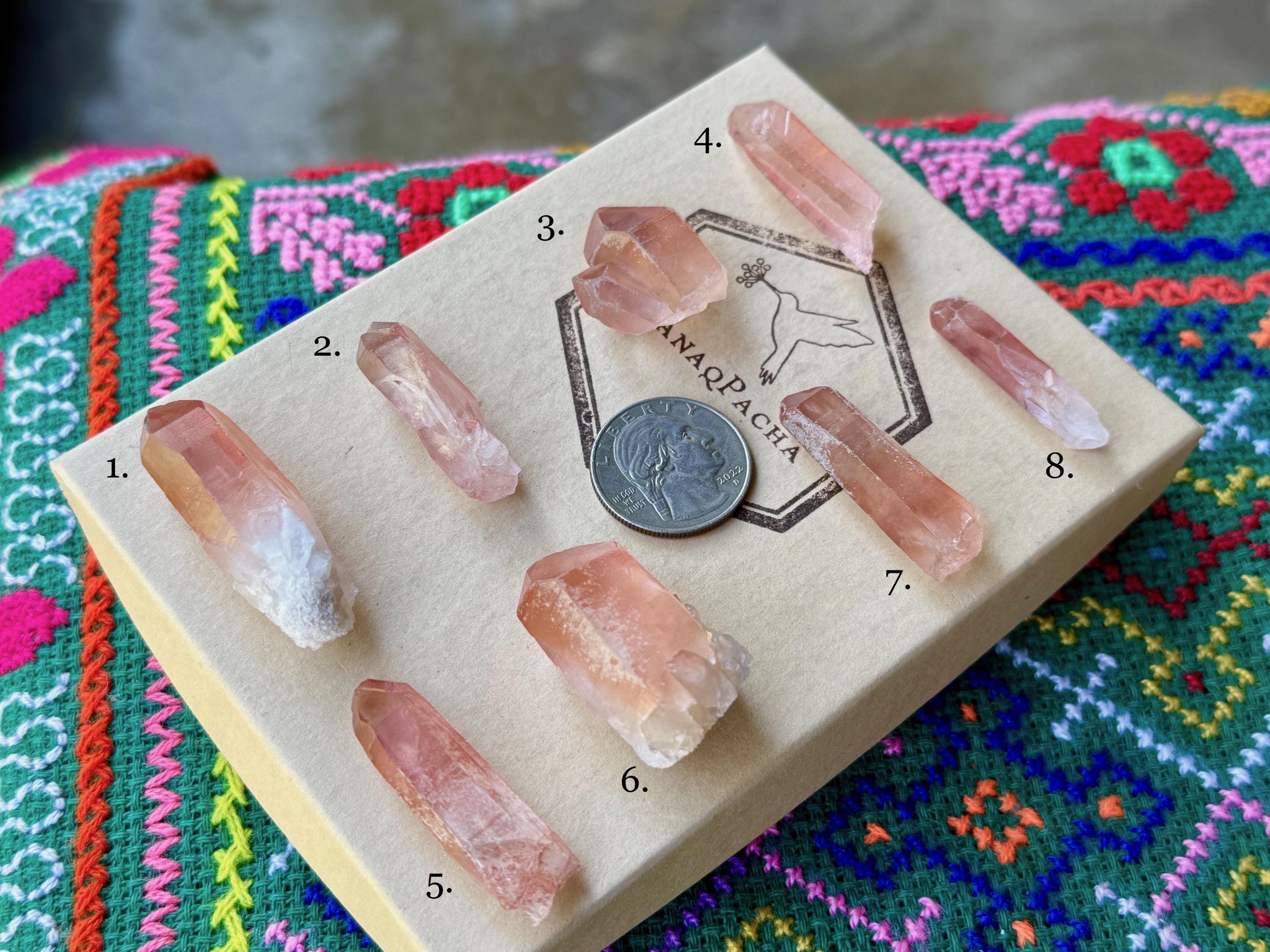 These beautiful Scarlet Temple Pink Lemurian Quartz crystals come from the original find several years ago in Diamantina, Minas Gerais, Brazil. Each selection is numbered, simply select your preference(s) from the dropdown menu.