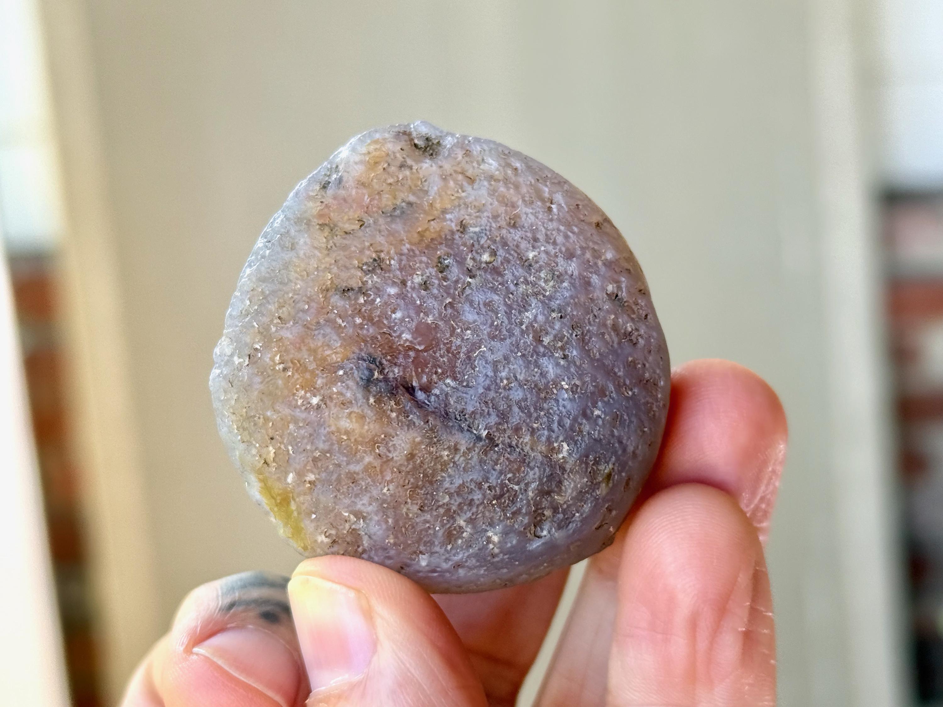 This extraordinary Running Sand Gobi Agate comes from the Gobi Desert in Southern Mongolia. What makes this stone so very special is that there is trapped sand inside, a rare phenomenon in these beautiful stones, which gives them the name "Running Sand" Agates.