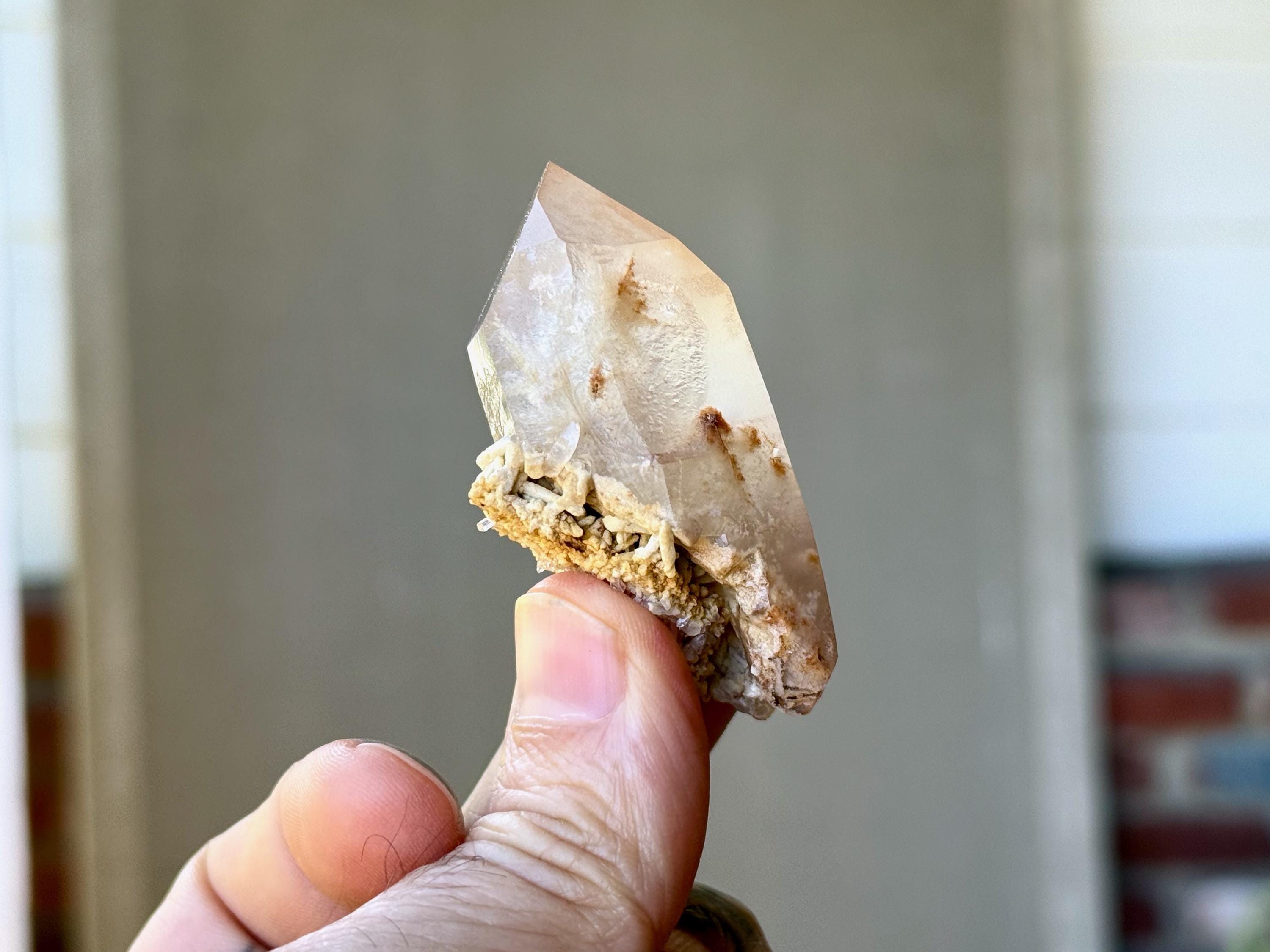 A gorgeous, ethereal complexion to this Lemurian Quartz crystal with a mild golden hue and ample inclusions of White Amphibole and Silver rutile within!
