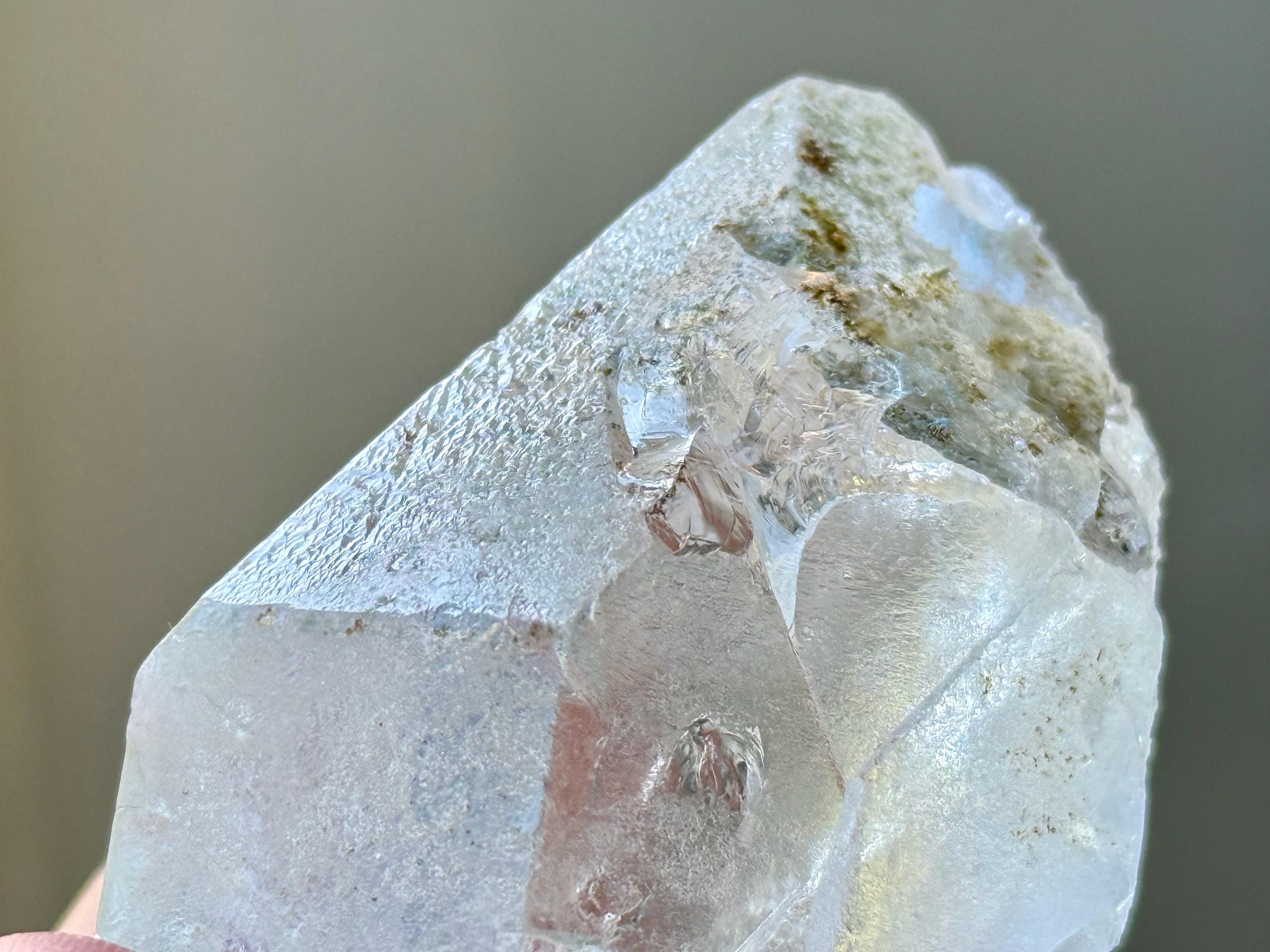 Dissolution crystals have unique natural etchings and formations due to their creation and evolution process. They form in the ground as crystals, just as any other, but then at some point in the later stages of their development, a hydrothermal solution at their source (in the form of very hot, flowing, mineralized water most likely) comes through and actually pulls molecules away, creating beautiful natural etchings and distinct formations. These kinds of crystals are essentially carved by underground water flow over millions of years!