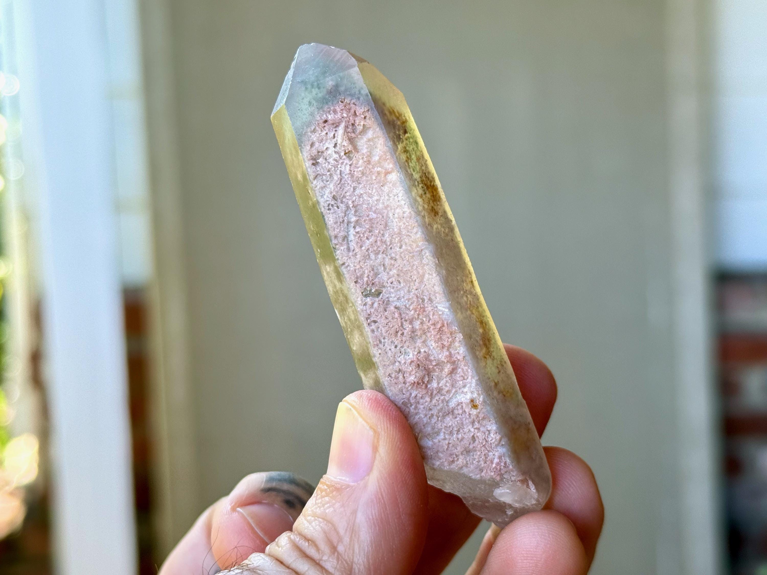 Lodolite Quartz, sometimes referred to as Garden Quartz for their beautiful inner landscapes, refers to crystals with colorful inclusions that may include Green Chlorite, Kaolinite, Hematite, Sulfite and other inclusions that all fall under the umbrella of "Lodolite." Each of these inclusions carries a particular energy of purification, grounding or healing, and the combination of these elements together, amplified by the Quartz surrounding them, creates a powerful healing energy. Aesthetically, they often have stunning inner landscapes that often look like mossy underwater gardens.