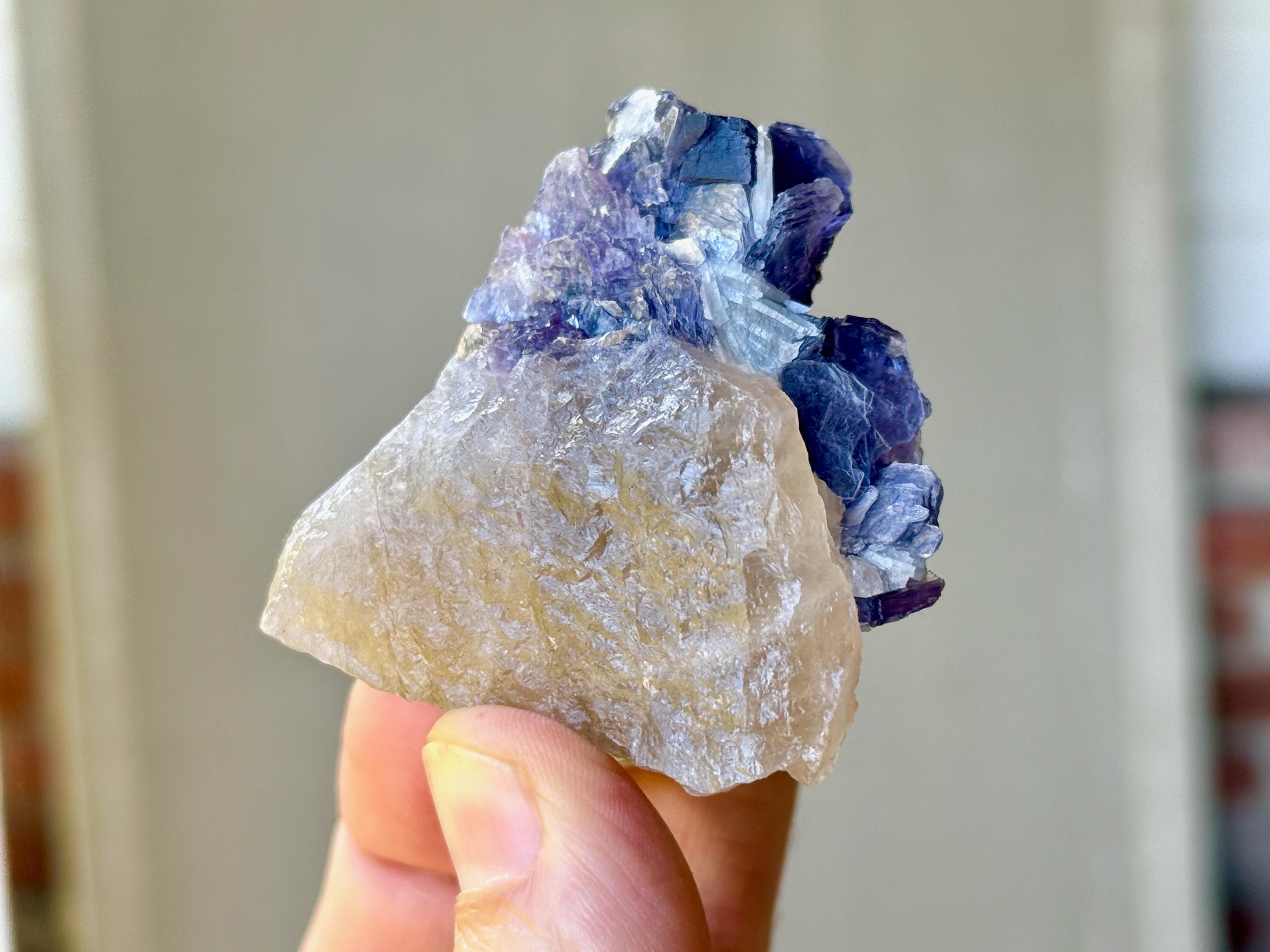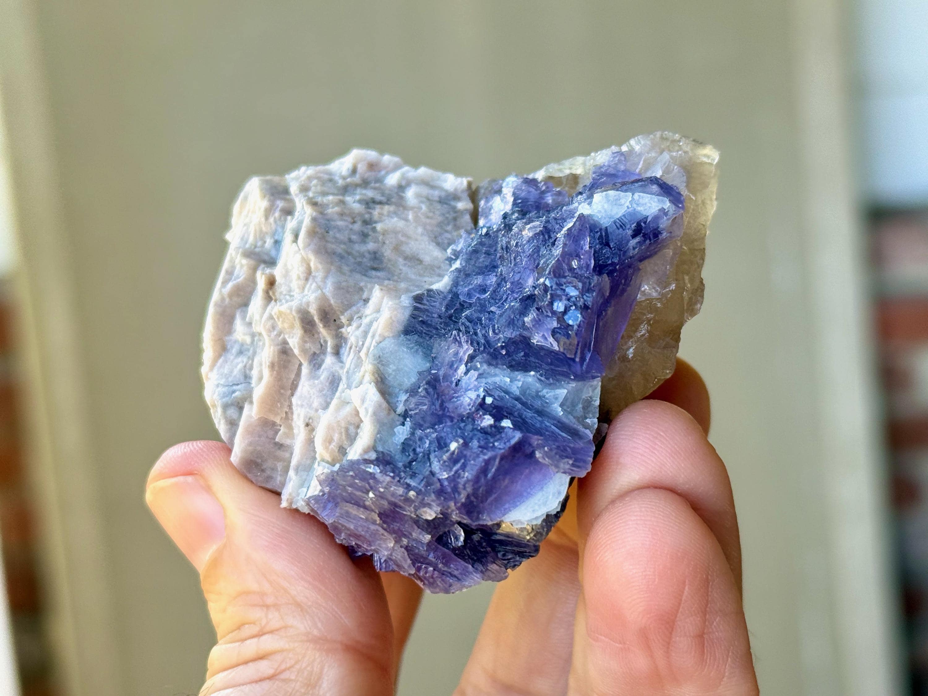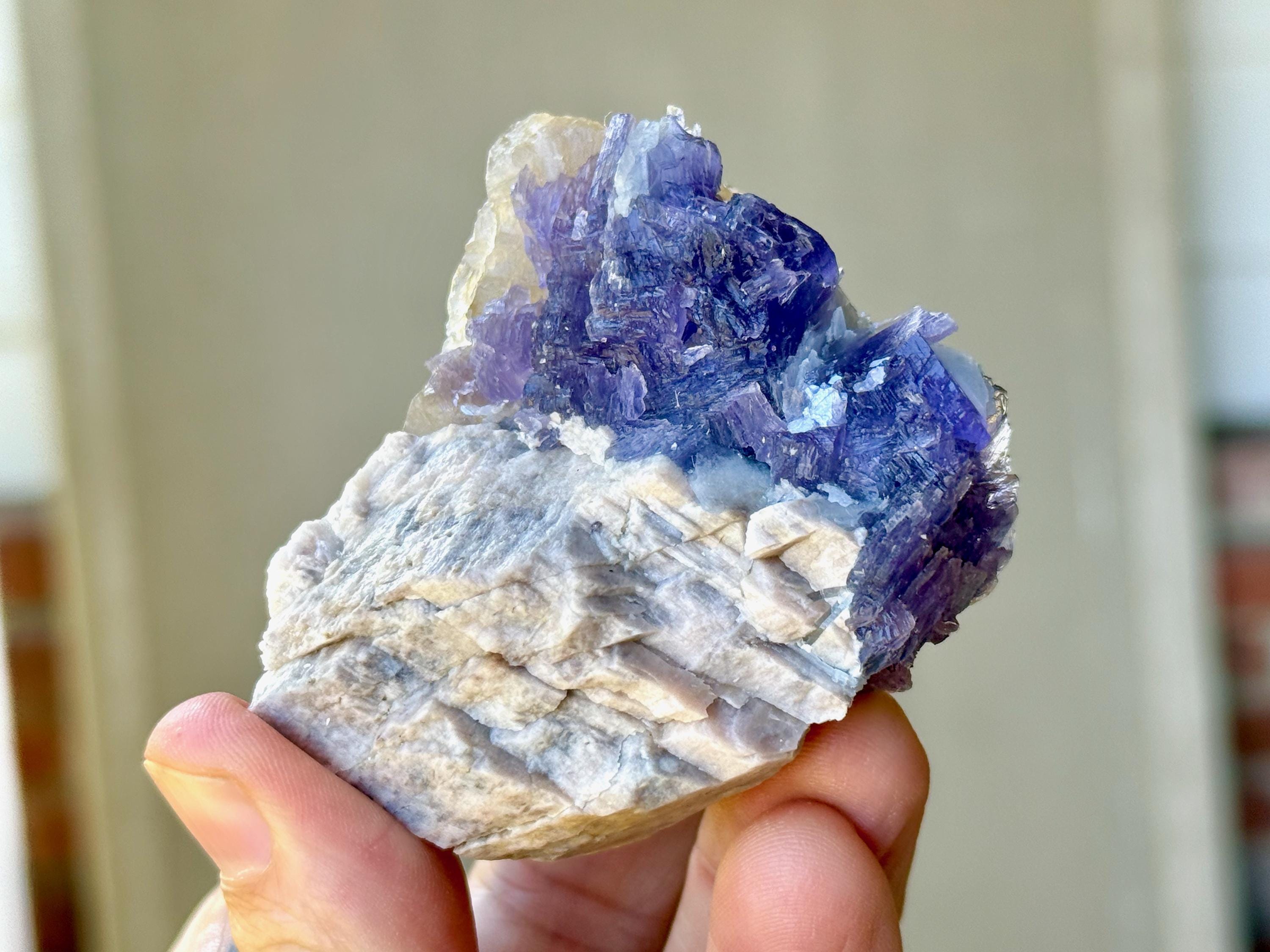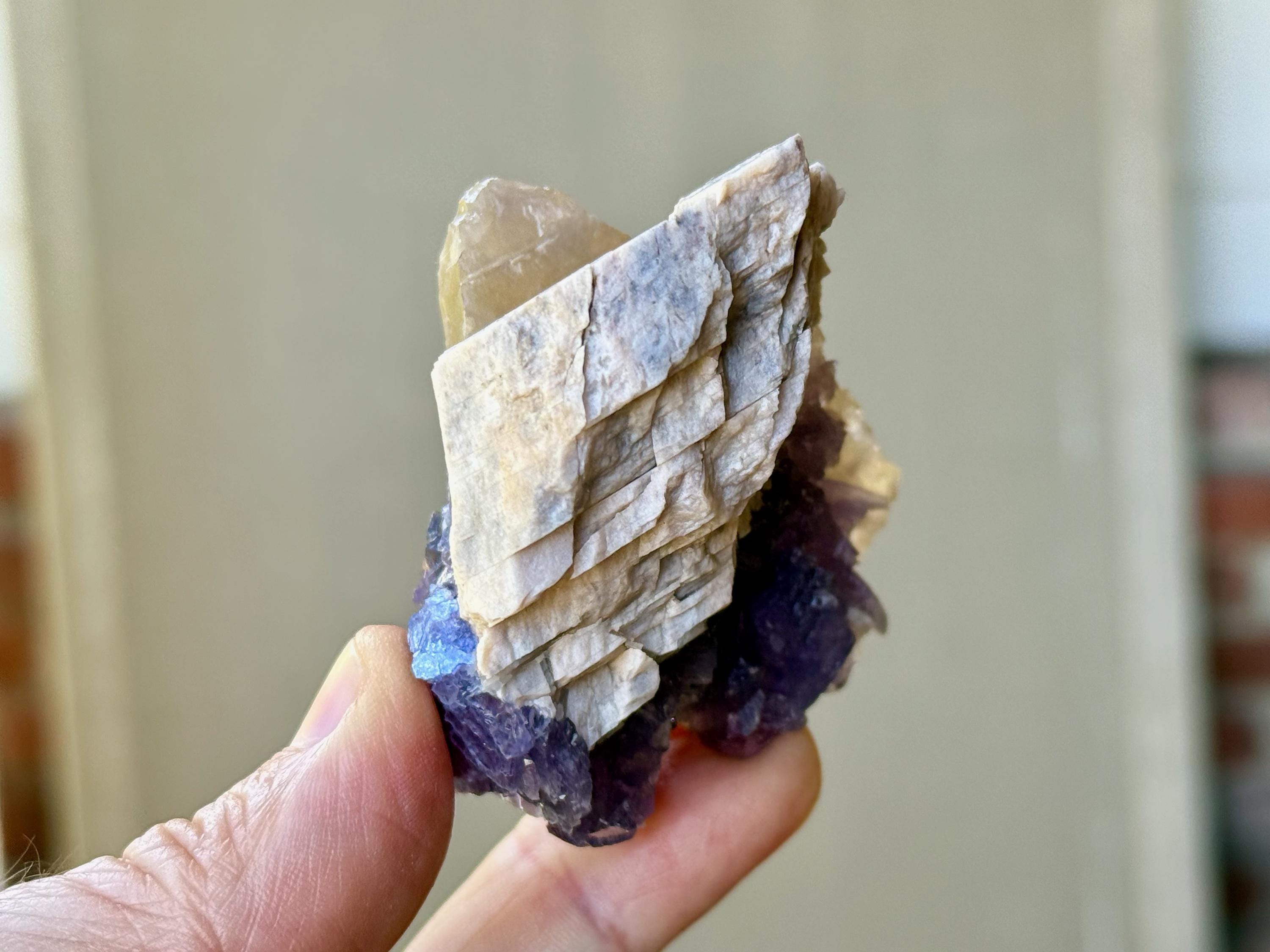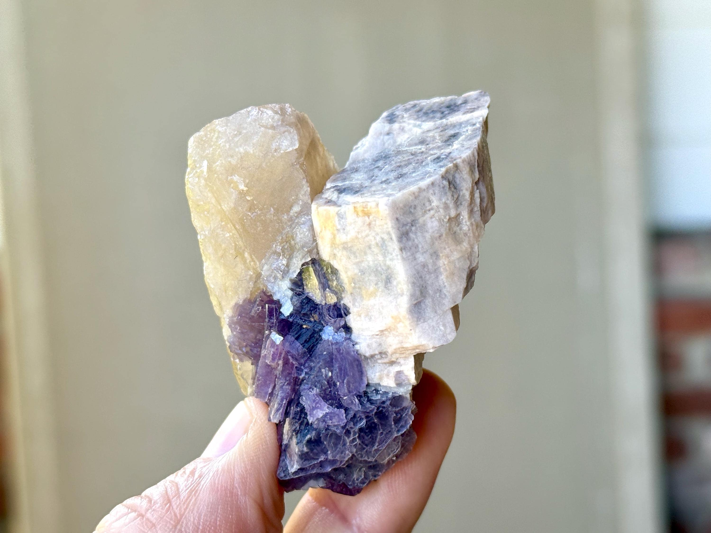 This vibrant Unicorn Stone Quartz crystal features a unique combination of golden Citrine, Purple Lepidolite and Feldspar. When backlit, the Citrine and Lepidolite light up brilliantly! (Photos 2-3, 6-7).